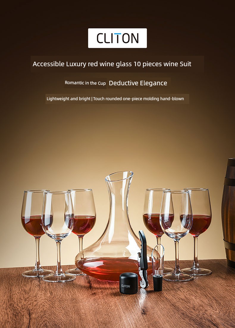 Imagine hosting your friends and family, the laughter ringing through the air as you pour velvety red wine from an exquisite decanter into beautifully crafted goblets. This picturesque scene isn’t just a dream; it can be your reality with the Cliton European-Style Red Wine Glass Goblet and Decanters Kit. This 10-piece set is designed to elevate any gathering into an unforgettable experience, combining elegance with functionality. Crafted with care, this set is more than just a collection of wine glasses; it's a celebration of the finer things in life. The elegance of the European-style goblets complements any decor, while the sophisticated design of the decanter allows for a perfect aeration of your wine, unlocking flavors that transport you to the vineyards of Tuscany. Each glass is shaped to enhance aromas, ensuring that every sip is a delight to the senses. Featuring ten meticulously crafted pieces, this set includes not only the stunning goblets but also an intricately designed hippocampus knife, perfect for slicing through cheese or fruit, making your wine-pairing effortless. Each element has been thoughtfully included to provide you with a complete wine experience that delights your guests and brings joy to your gatherings, standing out on your dining table. Picture yourself holding one of these elegant glasses filled with your favorite vintage, the light dancing through the crystal-clear glass as you toast to good health with loved ones. The smooth curvature fits perfectly in your hand, and the delicate rim promises a refined delivery that enhances every aspect of drinking. Whether it’s a romantic dinner or a lively celebration, these glasses add a touch of class that speaks volumes about your taste. But don't just take our word for it. Customers are raving about their experiences with the Cliton Wine Glass Set. \