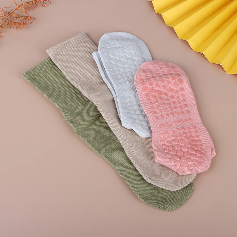 2pcs Cotton Breathable Mid-calf Yoga Socks Solid Color Striped Anti-slip Sports Socks Pilates Socks Dance Fitness Training Socks