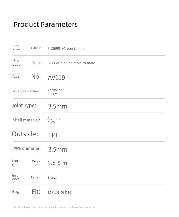 Experience crystal-clear sound with our Premium 3.5mm Aux Audio Connection Cable designed for a variety of devices. Why you'll love it: - High-quality Male-to-Male connection for enhanced audio. - Versatile compatibility with TVs, mobile phones, and desktops. - Durable construction for long-lasting performance. - Perfect for car audio systems or home entertainment setups. - Best seller among audio accessories for a reason! This cable features a double-headed plug that ensures a secure connection while delivering outstanding audio clarity. Its premium design guarantees durability for all your audio needs, whether at home or on the go. To use, simply plug one end into your audio source and the other into your speaker or headphones. Enjoy your favorite music or movies with superior sound quality today!