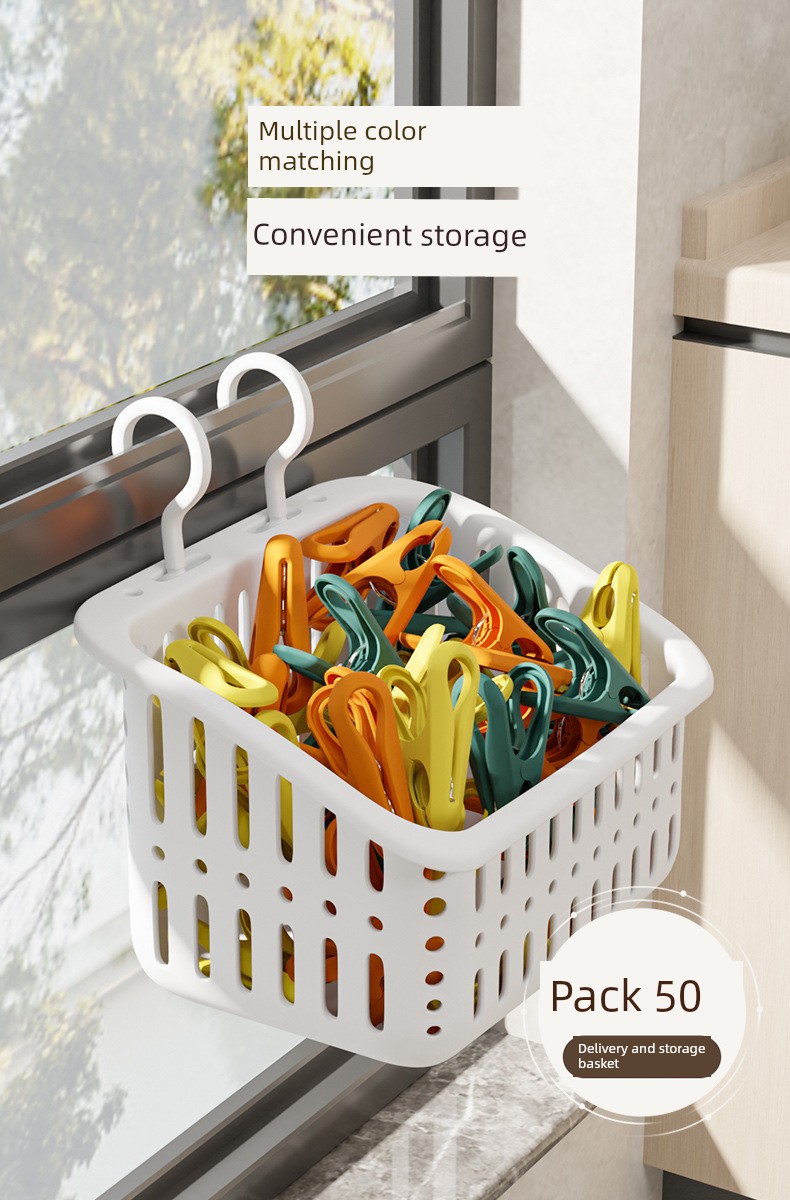 Keep your laundry secure with these premium windproof clothes pins! This 50-pack of multifunctional plastic clips comes with a convenient storage basket, making it easier than ever to hang your intimates, socks, and more without worries of them blowing away. Why you'll love it: -50 Durable Plastic Clips for Versatile Use. -Windproof Design Keeps Clothes Secure. -Includes Handy Storage Basket for Organization. -Perfect for Intimates, Socks, and Lightweight Fabrics. -A Must-Have for Every Household! Made from high-quality, durable plastic, each clip is designed to withstand the elements while keeping your clothes in place. The included storage basket ensures that your clips are always organized and within reach, making laundry day a breeze. To use, simply pinch the clothes pins to securely attach your garments to a line or drying rack. Ideal for indoor or outdoor drying, these clips are a perfect fit for anyone looking to simplify laundry tasks. Get your 50-pack windproof clip clothes pins today and experience convenience like never before!