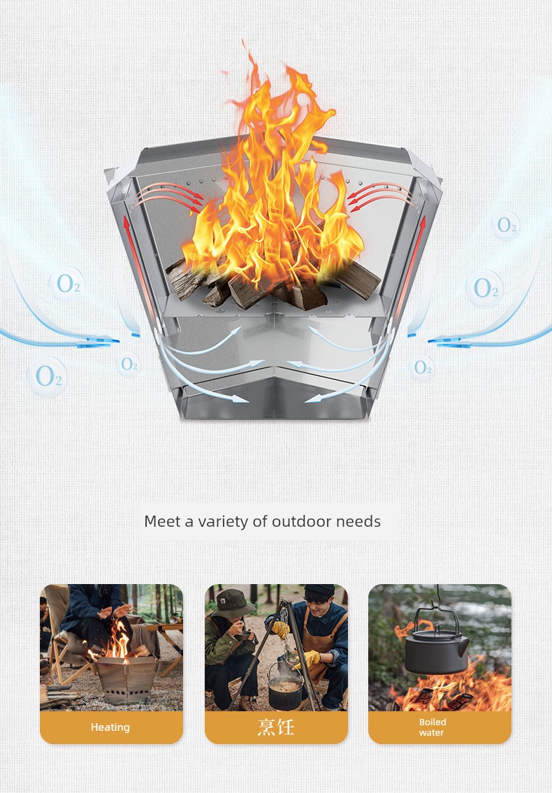 Elevate your outdoor cooking experience with the exclusive 6-Piece Foldable Stainless Steel Burning Rack, designed for camping enthusiasts and picnics alike.Why you'll love it:- Premium stainless steel construction for durability and longevity.- Space-saving foldable design, perfect for on-the-go adventures.- Versatile rack suitable for firewood, coal, or charcoals.- Easy to set up and disassemble for hassle-free cooking.- Ideal for camping, picnics, and outdoor gatherings.This burning rack is crafted from high-quality stainless steel, making it resistant to rust and wear, ensuring it withstands various outdoor conditions. When folded, it becomes compact, fitting easily in your backpack while providing a sturdy cooking surface when deployed.To use, simply unfold the rack, set it on a stable surface, and arrange your preferred fuel source underneath. Place your cooking pots or grill on top and enjoy a delightful outdoor meal. Don't miss out on this best-seller, get yours today and take your camping culinary adventures to the next level!
