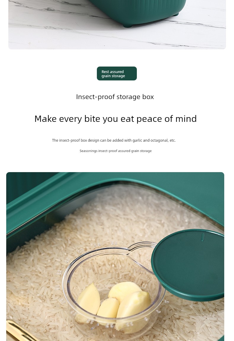 Imagine stepping into a kitchen where the aroma of freshly cooked meals fills the air, and your essential ingredients are always safe and sound. The key to this culinary paradise lies in our Airtight Rice and Flour Storage Box, a simple yet transformational addition that not only preserves the freshness of your grains and flours but also protects them from pesky insects and detrimental moisture. Born out of a common struggle faced in homes everywhere, this storage box addresses the challenge of keeping staple foods quality and safe. You no longer need to worry about pests invading your supplies or moisture ruining your culinary ventures. With an elegant design that complements any kitchen décor, say goodbye to awkwardly stored half-open bags and embrace an elegant solution that blends seamlessly into your daily routine. Featuring a secure, tight-sealing lid that creates an airtight seal, our storage box stands vigilant against environmental threats. Unlike typical containers that leave gaps, this stylish solution promises to keep your rice or flour pristine, safeguarding every grain for your cooking delights. With the ability to hold up to 10kg of rice or flour, it ensures that you’re always ready for those hearty recipes or impromptu baking sessions. Picture this: as you prepare your favorite dishes, you effortlessly scoop out just the right amount of perfectly preserved rice or flour. Feel the reassuring sturdiness of the container in your hands, its transparent design allowing for easy visibility of your stock. Imagine the confidence and tranquility in knowing that you have the freshest ingredients at your fingertips, whether on display in your kitchen or tucked away neatly in your pantry. Our satisfied customers can't stop raving about their experience with this storage box. ‘This has completely transformed my kitchen organization! No more bugs or stale flour – I feel like a pro every time I cook!’ - Emily R. ‘I love how easy it is to see how much I have left, and it looks great on my countertop!’ - Ben T. Are you ready to elevate your kitchen experience with our Airtight Rice and Flour Storage Box? Don’t let moisture and pests compromise your cooking anymore. Make this essential kitchen companion yours today and rediscover joy in every meal preparation!
