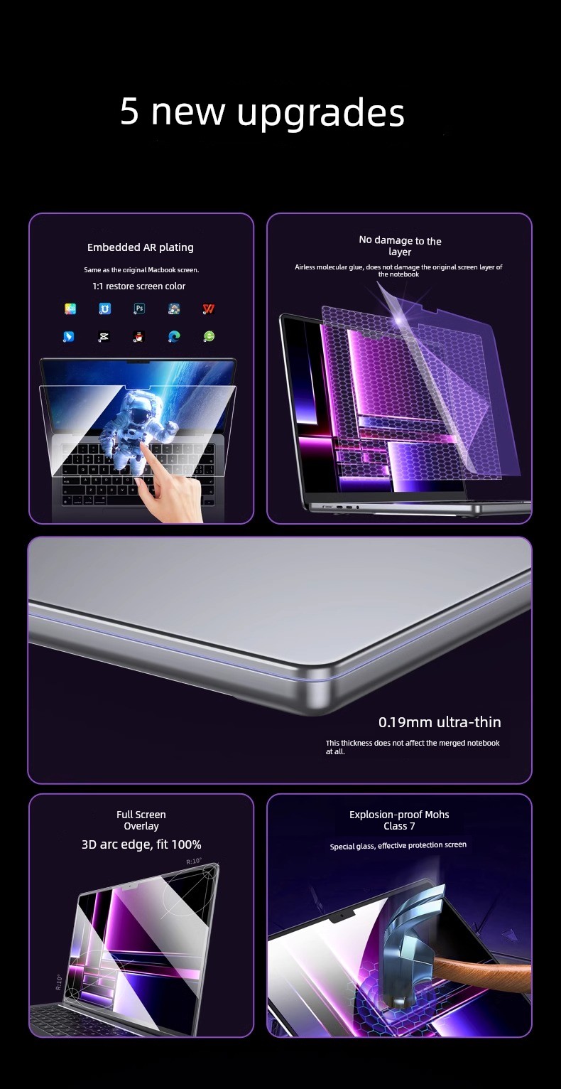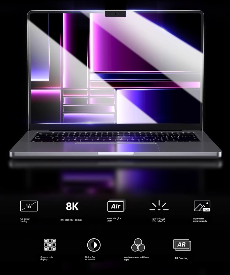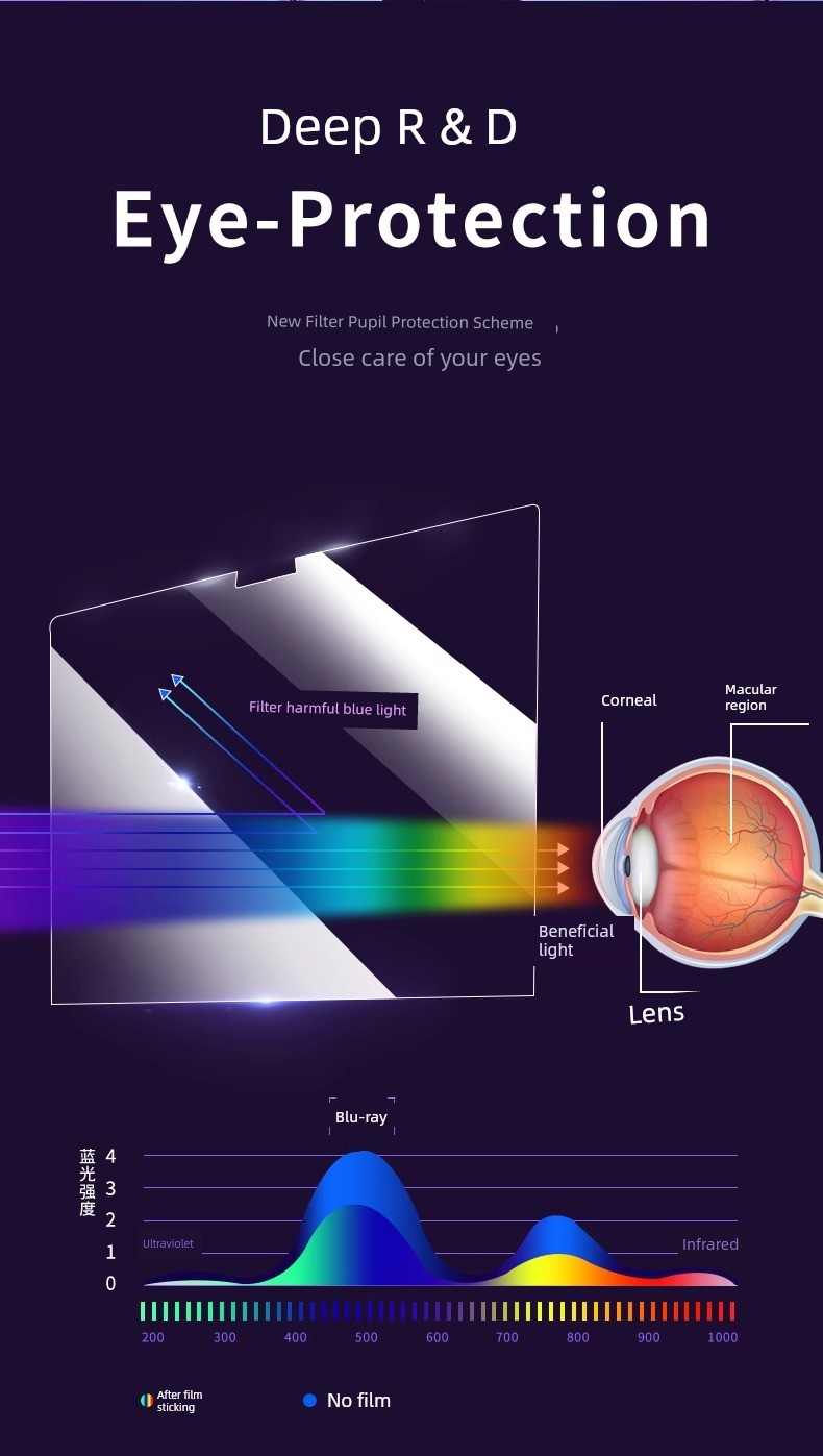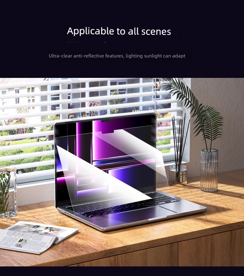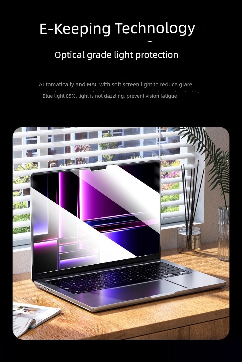 Protect your eyes with our premium Anti-Blue Light Screen Protector designed specifically for Apple notebooks. Why you'll love it: - Reduces harmful blue light for eye comfort. - Crystal clear display retention with anti-glare coating. - Easy to install and remove without residue. - Perfect fit for Apple laptops, enhancing your viewing experience. - Durable and scratch-resistant for long-lasting protection. Crafted with high-quality materials, this screen protector not only safeguards your eyes but also maintains the vibrant colors and clarity of your Apple laptop’s display. Simply align it with your screen's edges, press down to remove air bubbles, and enjoy a comfortable viewing experience for work or play without the worry of eye strain. Upgrade your laptop protection and take care of your vision today!