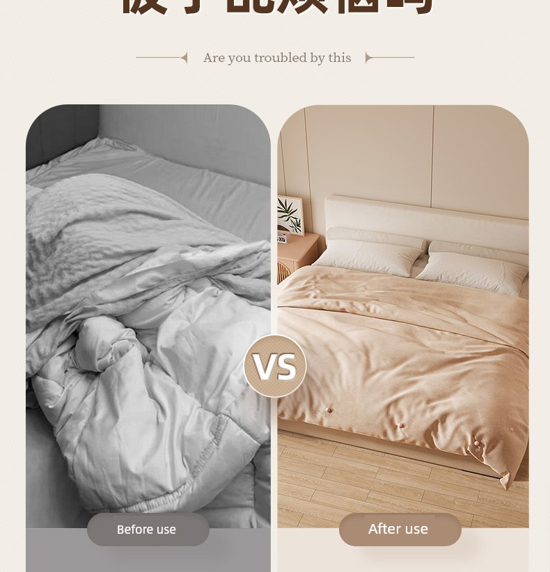 Never worry about disheveled bedding again with our Anti-Slip Quilt Corner Fixing Buckle Set, specially designed to keep your duvet and bed sheets perfectly in place! Why you'll love it: - Needle-free design ensures easy installation. - Durable cotton material with anti-slip technology. - Maintains a neat and tidy bed appearance. - Perfect fit for various quilt sizes and styles. - Ideal for a restful night's sleep without disruptions. Made from high-quality, non-ice cotton, these fixing buckles provide a reliable and comfortable solution to keep your quilt cover securely in place. The unique needle-free design allows for quick application without damaging your bedding. To use, simply place the buckles on each corner of your duvet cover, securing it tightly to your bed sheets. Easy to adjust, use them regularly to maintain a polished and cozy look in your bedroom. Don’t miss our limited time offer—experience the ultimate bedding solution today!