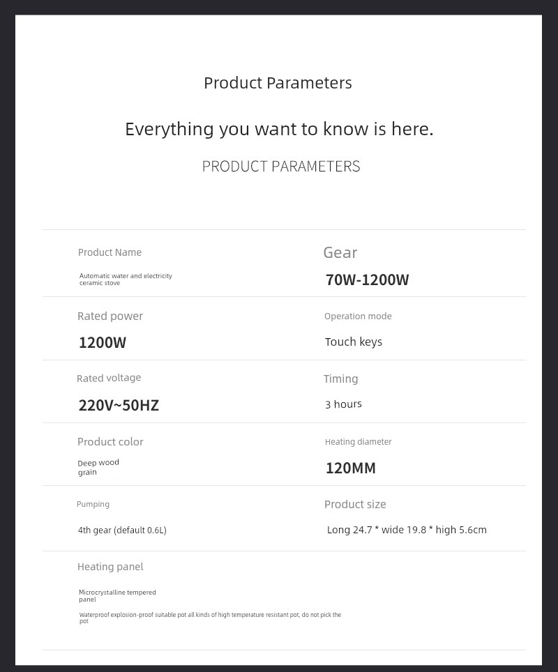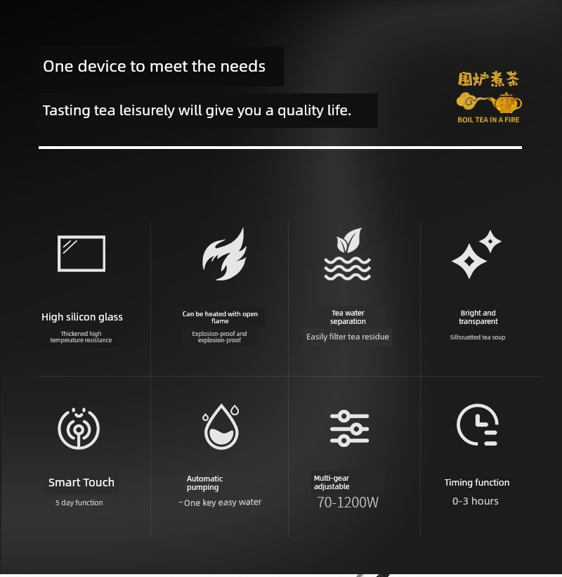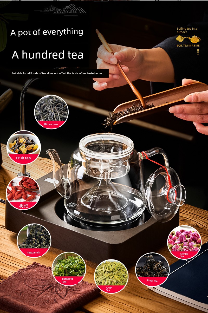 Imagine a world where every tea moment is a celebration. Picture yourself nestled in a cozy corner of your home, waiting for your favorite brew to come to life. Introducing the Automatic Tea Cooker – your all-in-one solution for perfectly boiled water and exquisite tea experiences. With one simple touch, you can transform an ordinary moment into a ritual of relaxation and indulgence. This remarkable device is not just a tea cooker; it's a thoughtfully designed masterpiece that combines functionality with elegance. Designed for every tea lover, the Automatic Tea Cooker brings convenience and sophistication into your home with its sleek electric ceramic stove. The specially crafted glass teapot nests beautifully on the heating element, adding a touch of artistry to your kitchen counter. Equipped with advanced technology, this auto-boiling stove ensures that your water reaches the ideal temperature every time, whether you’re steeping delicate green tea or robust black tea. Imagine the joy of serving perfectly brewed tea to your friends and family, knowing that each sip delivers rich flavors and aromas, all thanks to the precision of your new kitchen companion. Using this automatic tea cooker is an experience in itself. Picture the gentle bubbling of water, the inviting scent of tea leaves unfurling, and the anticipation of a steaming cup just moments away. With its intuitive controls and efficient heating, you can savor the moment without the hassle of monitoring temperatures or timings. Can't you just hear the delightful feedback from your friends and family? They’ll marvel at how you’ve mastered the art of tea-making. “This is the best tea I’ve ever had!” will be a common refrain. Customers are raving about their newfound tea experiences:\ \