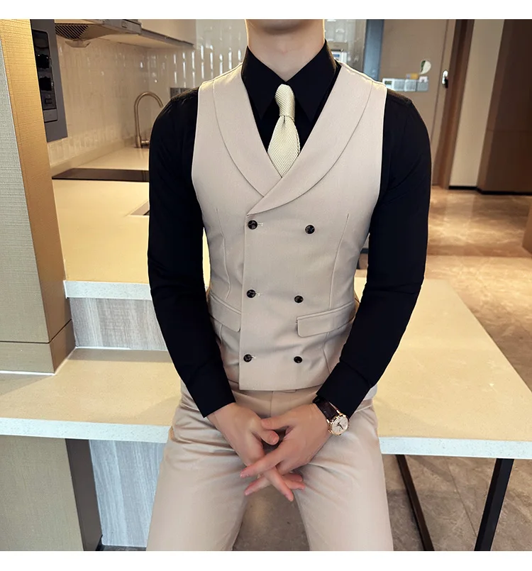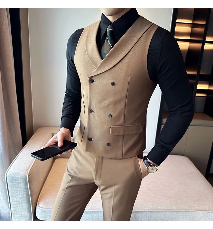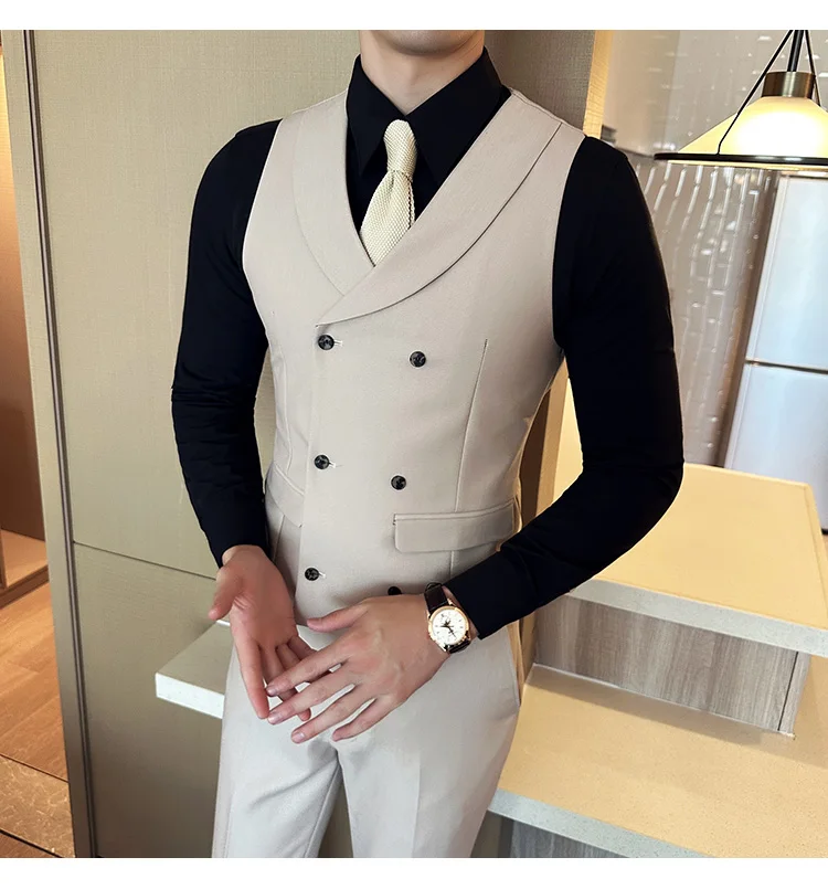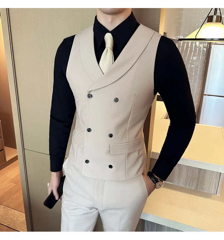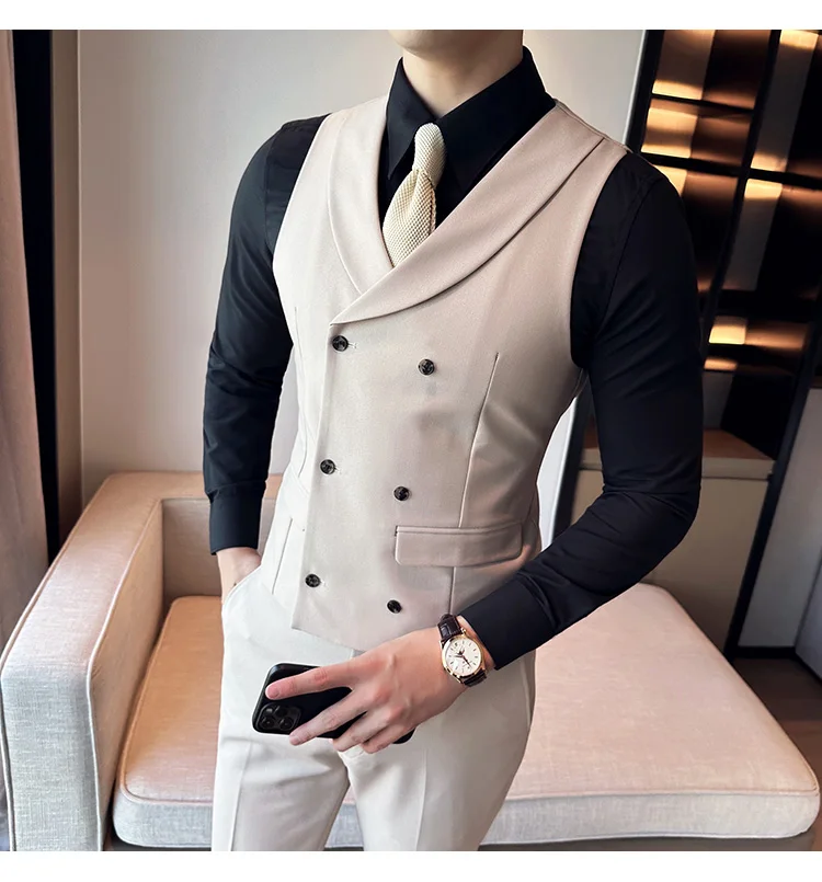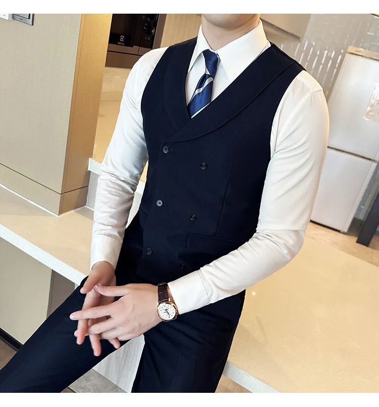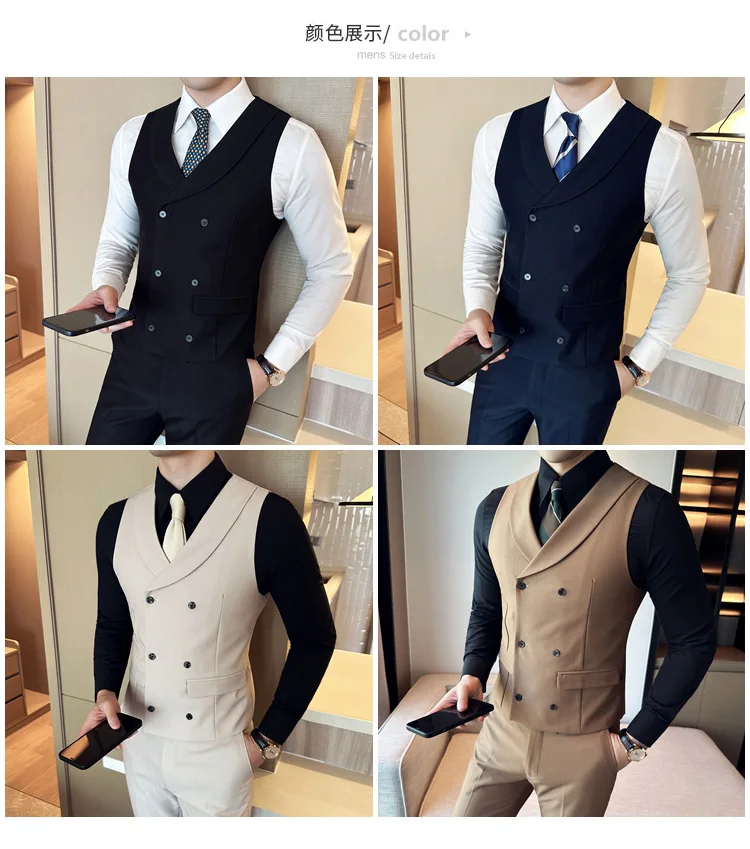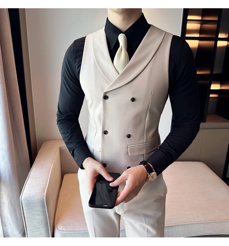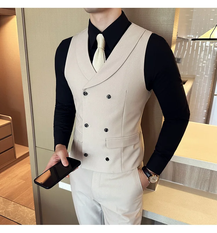 Autumn Double Breasted Suit Vest Men's High Quality Slim Casual Business Formal Sleeveless Vest Wedding Groom Banquet Waistcoat