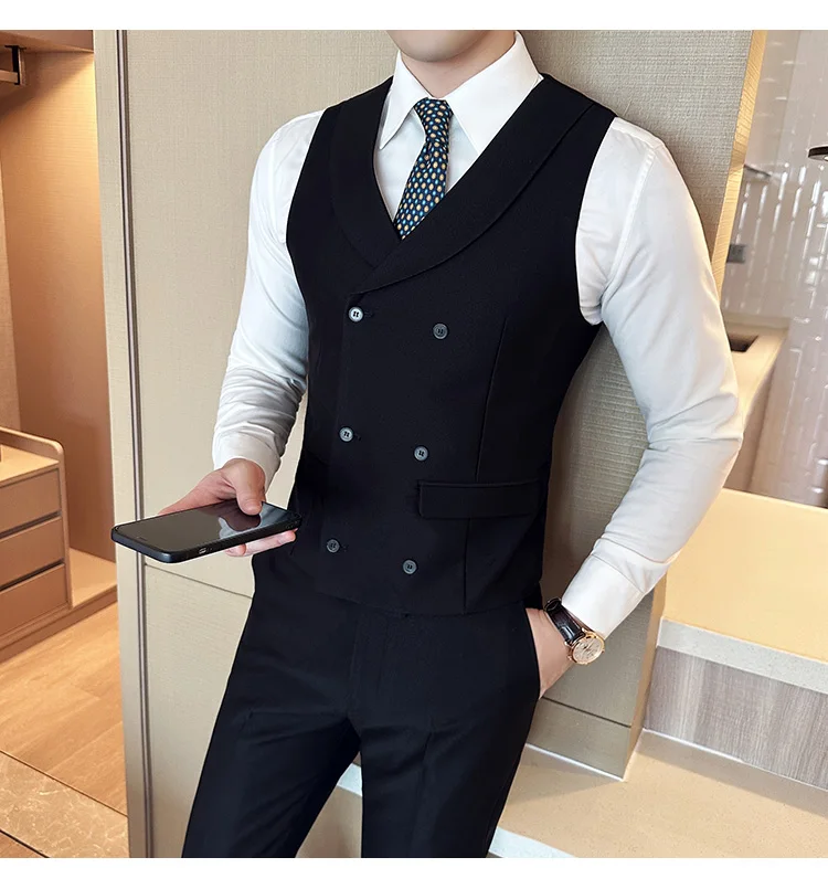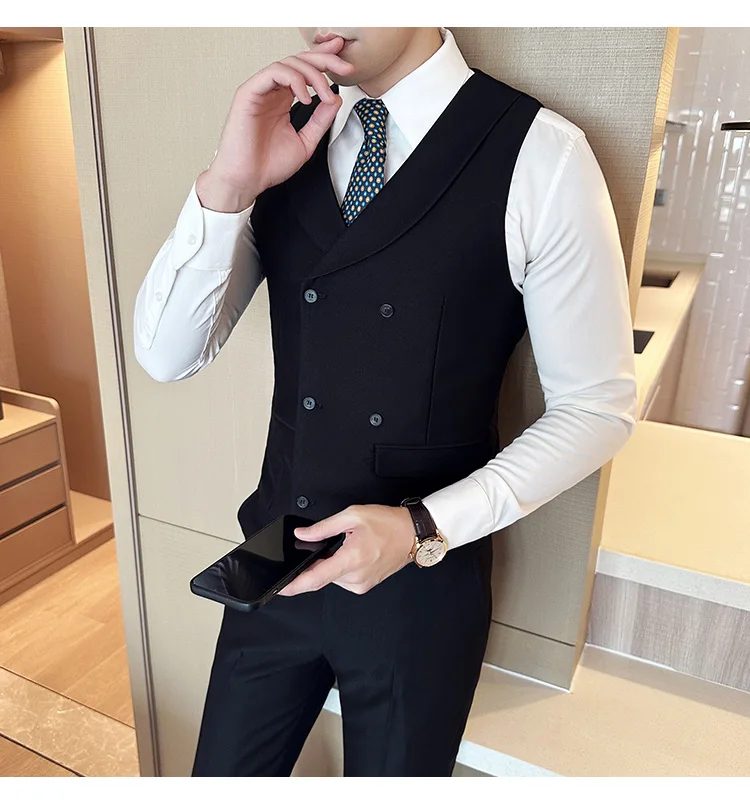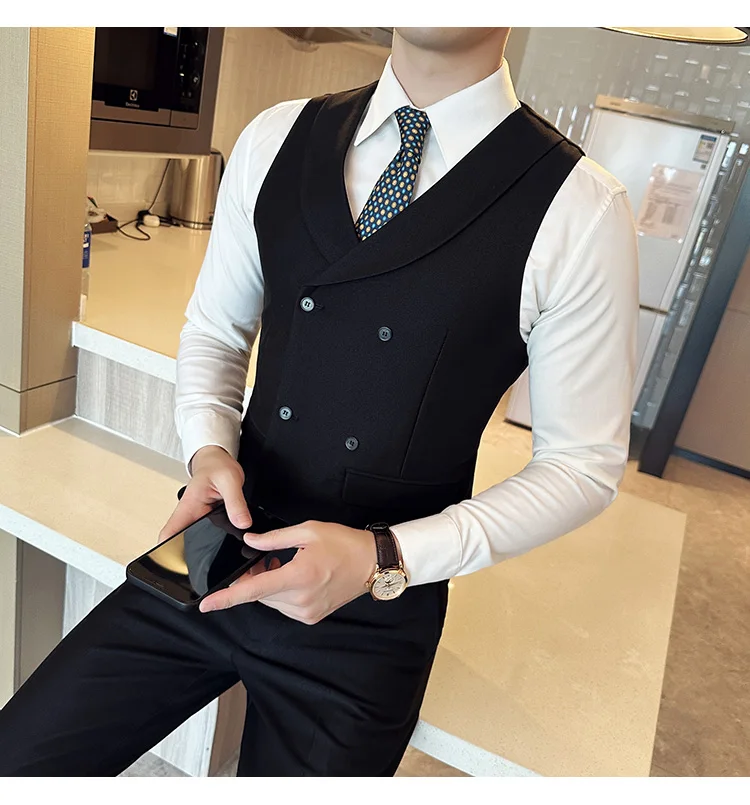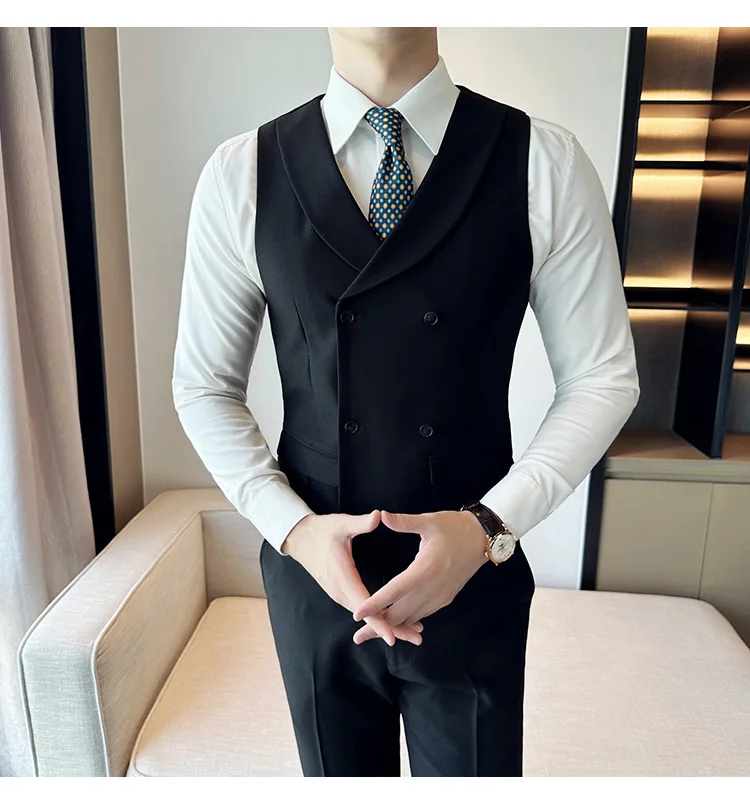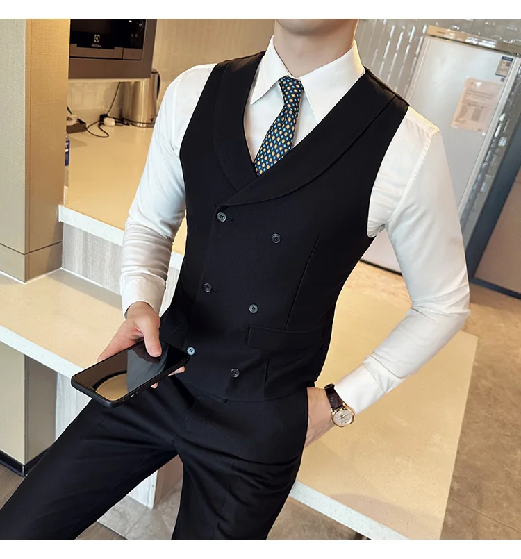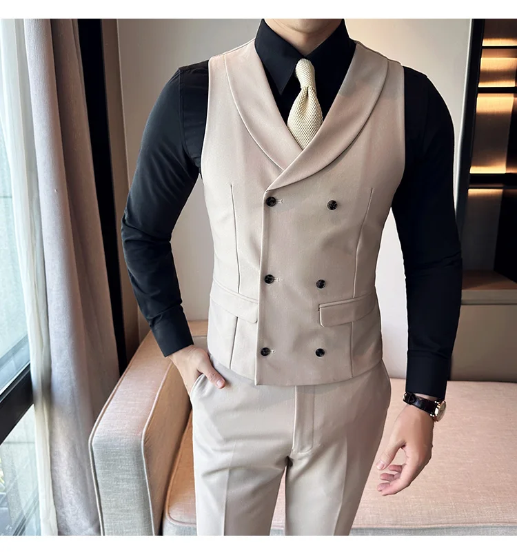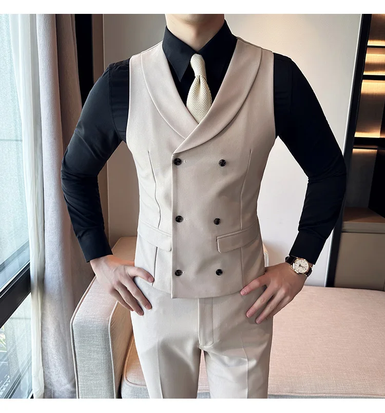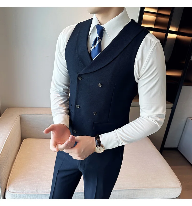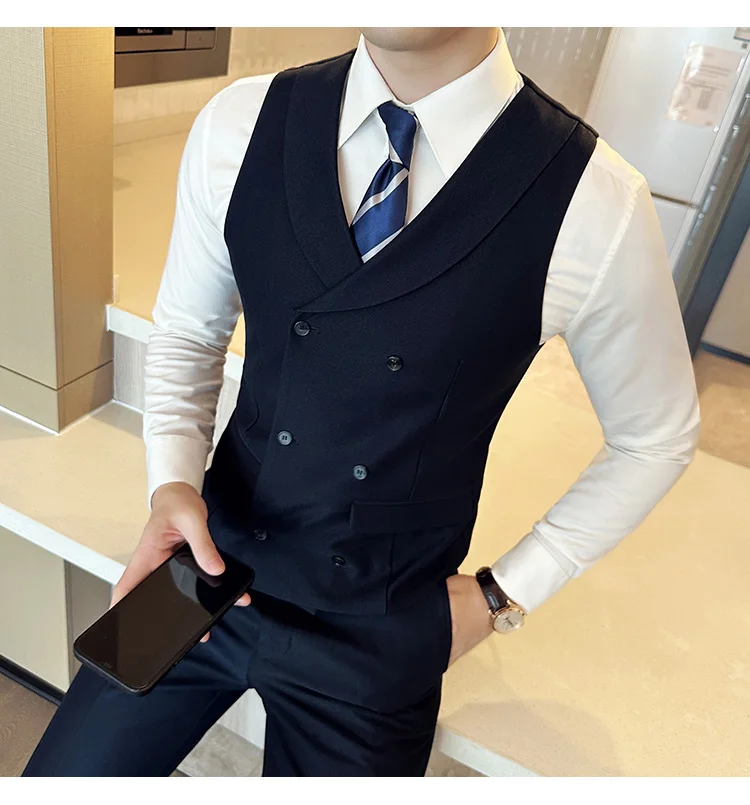 Autumn Double Breasted Suit Vest Men's High Quality Slim Casual Business Formal Sleeveless Vest Wedding Groom Banquet Waistcoat