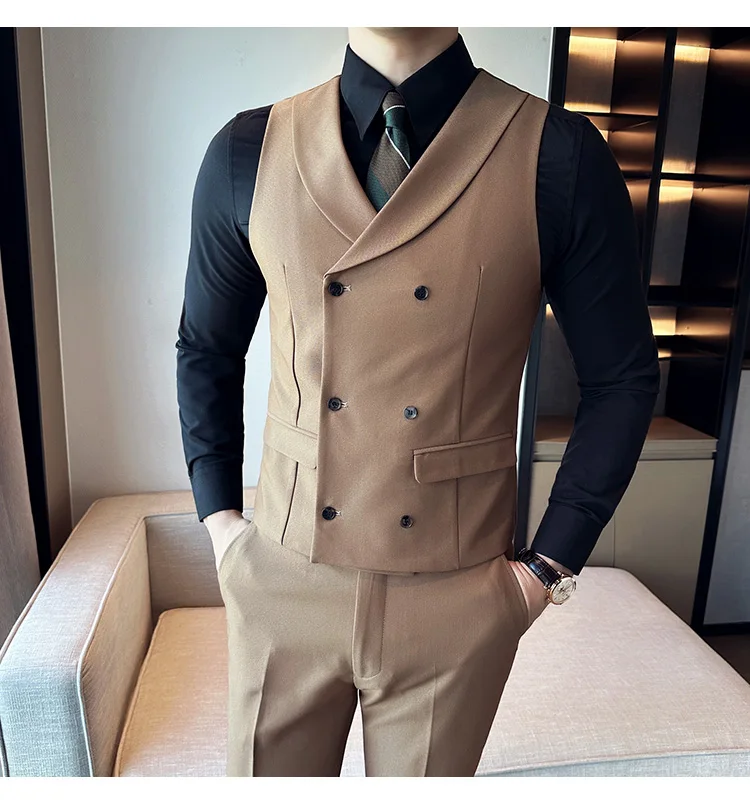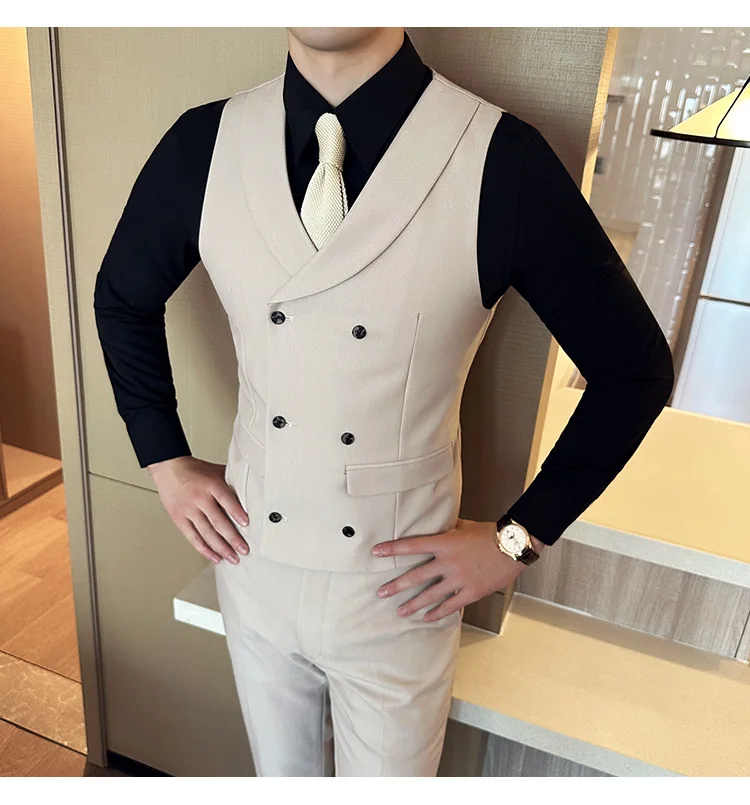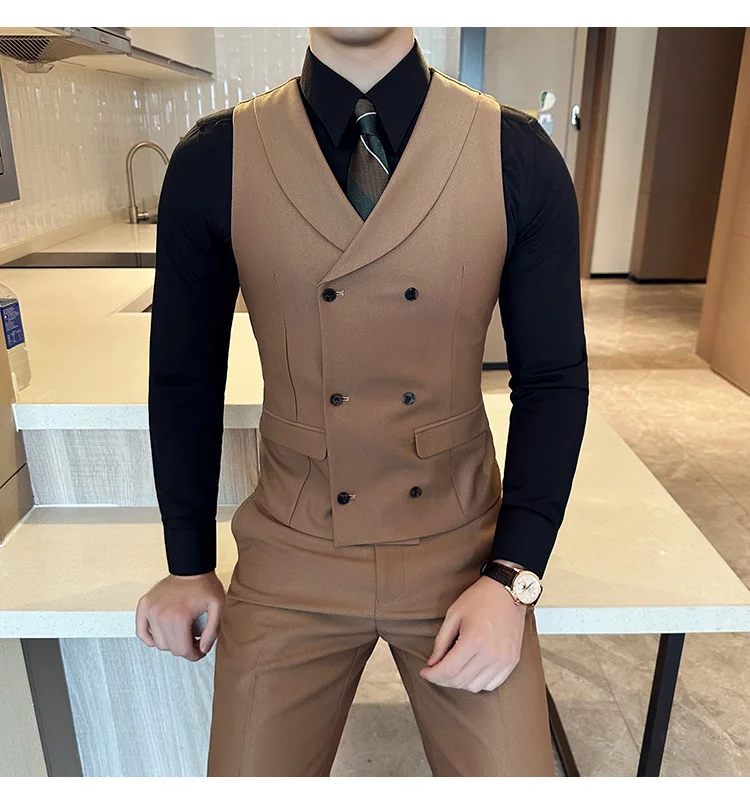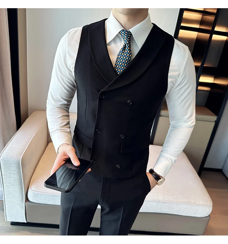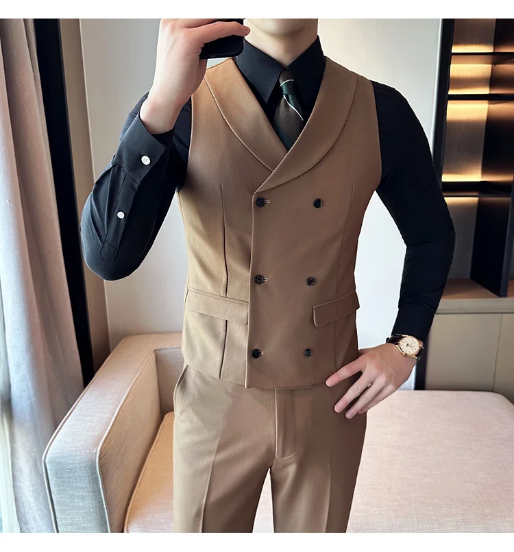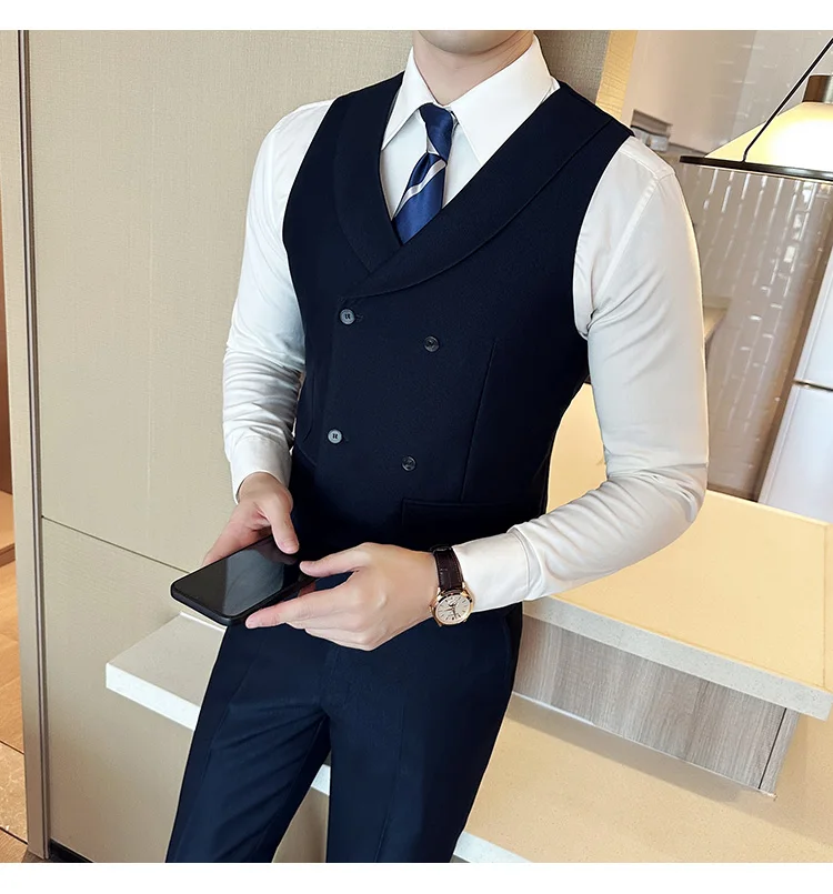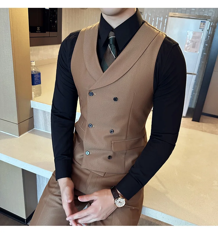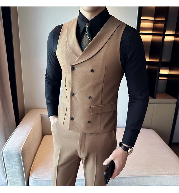 Autumn Double Breasted Suit Vest Men's High Quality Slim Casual Business Formal Sleeveless Vest Wedding Groom Banquet Waistcoat