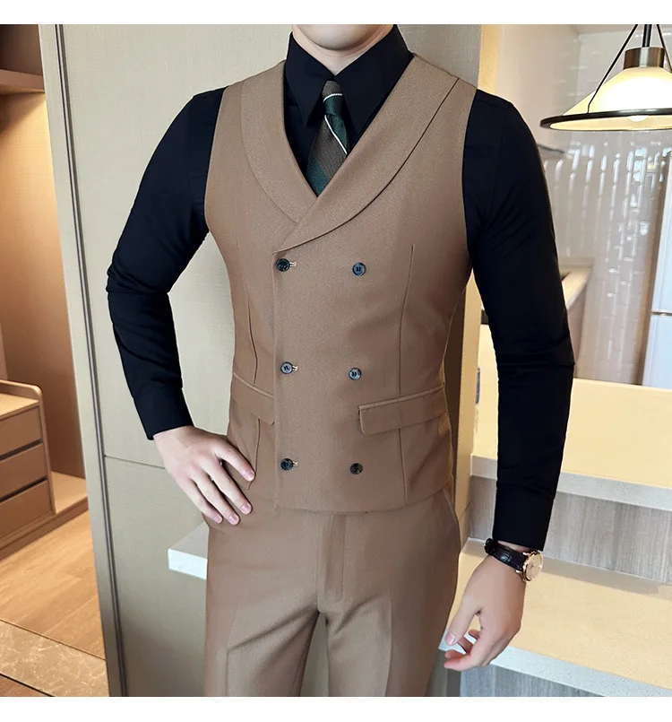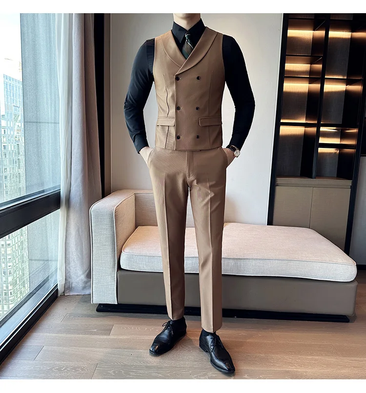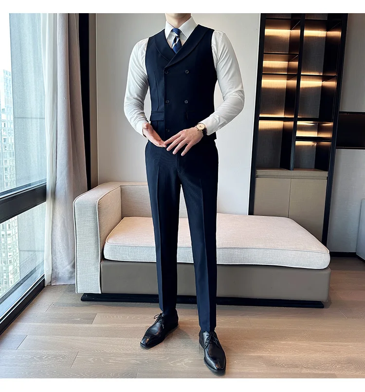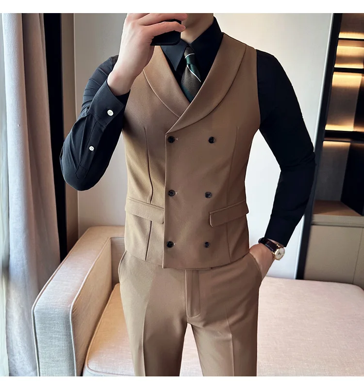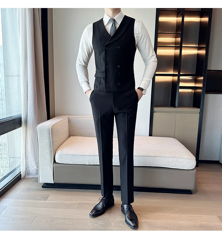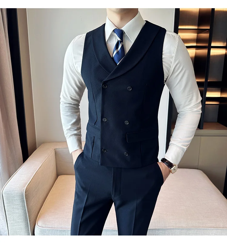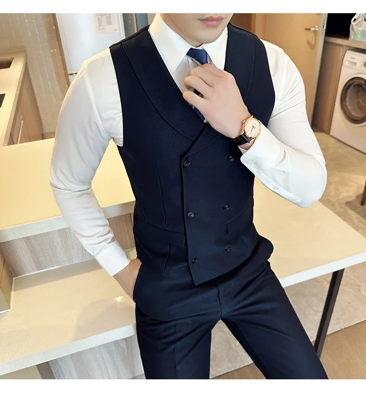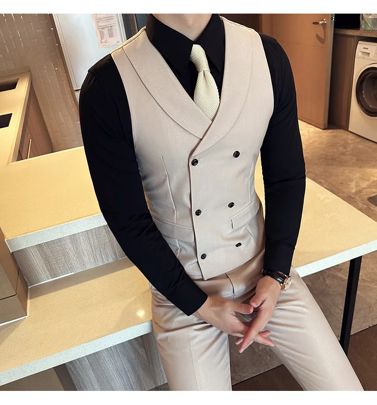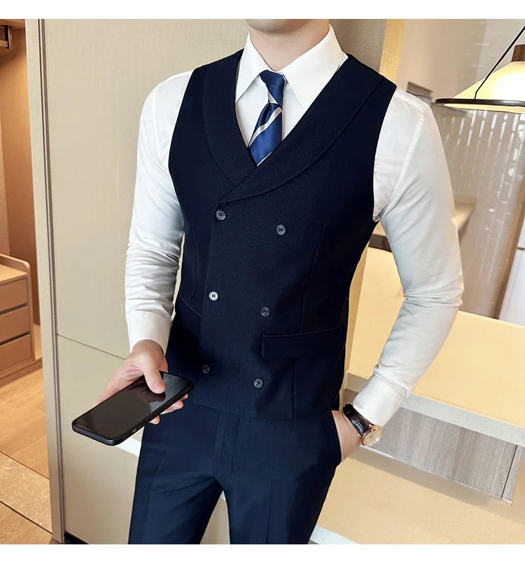 Autumn Double Breasted Suit Vest Men's High Quality Slim Casual Business Formal Sleeveless Vest Wedding Groom Banquet Waistcoat