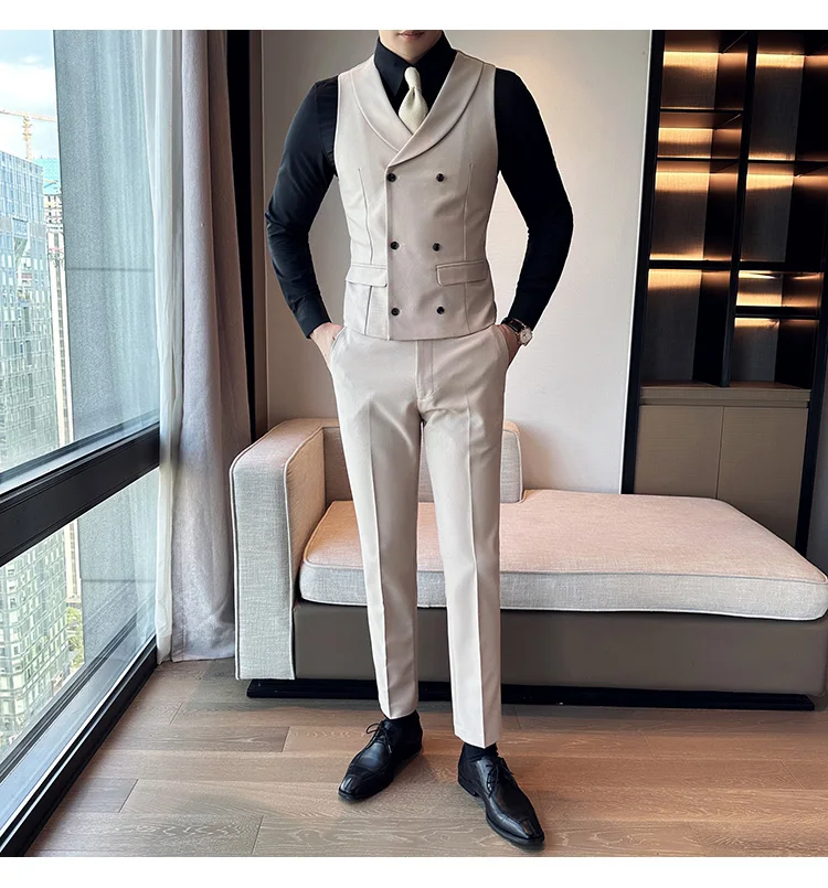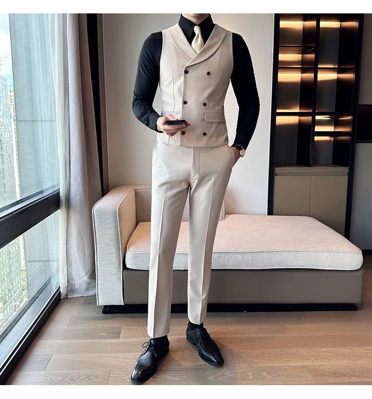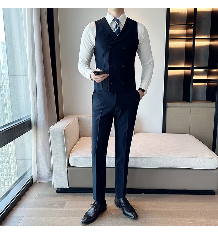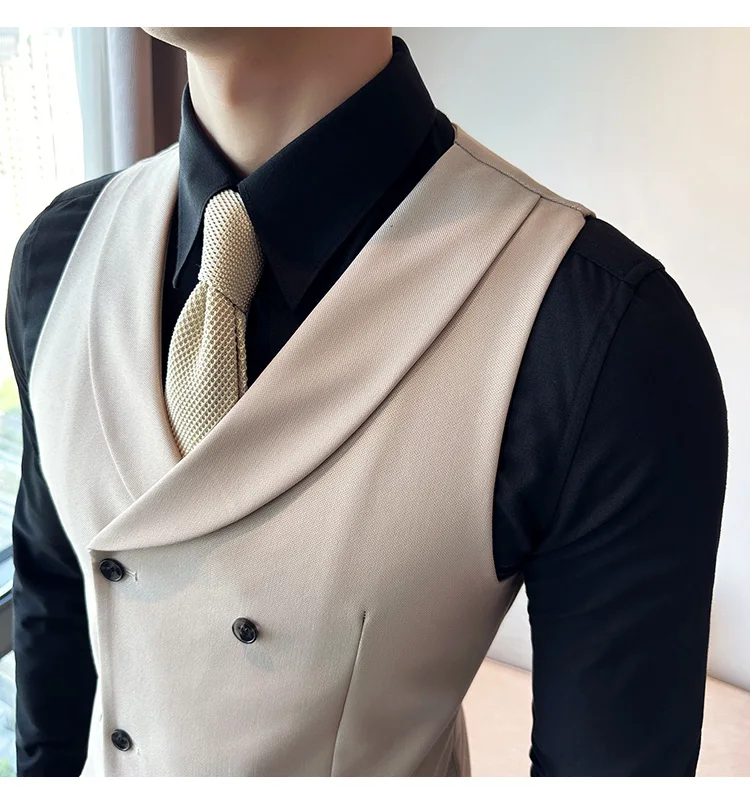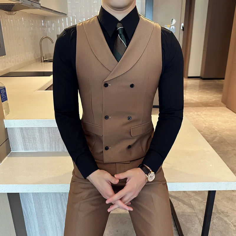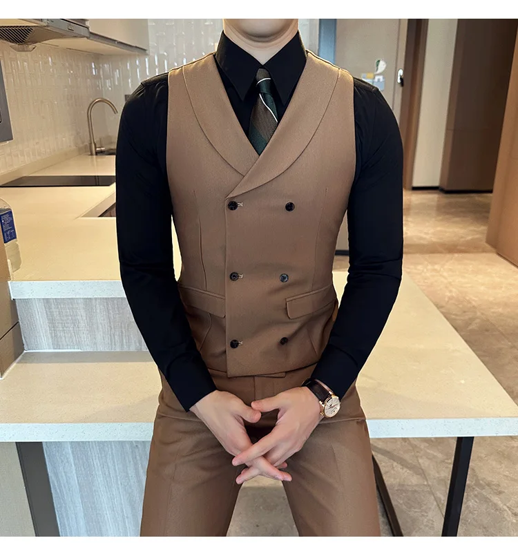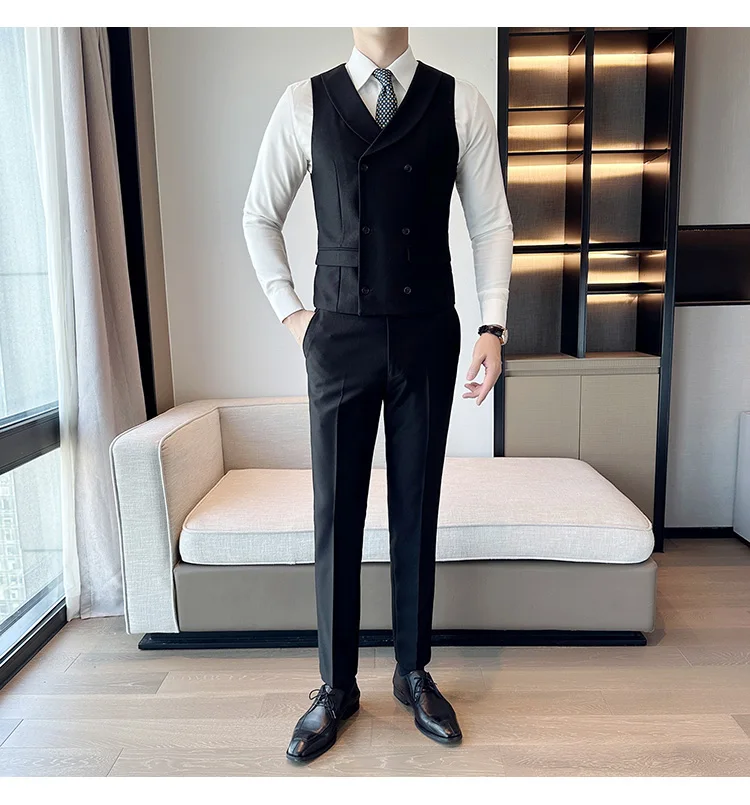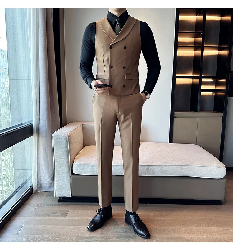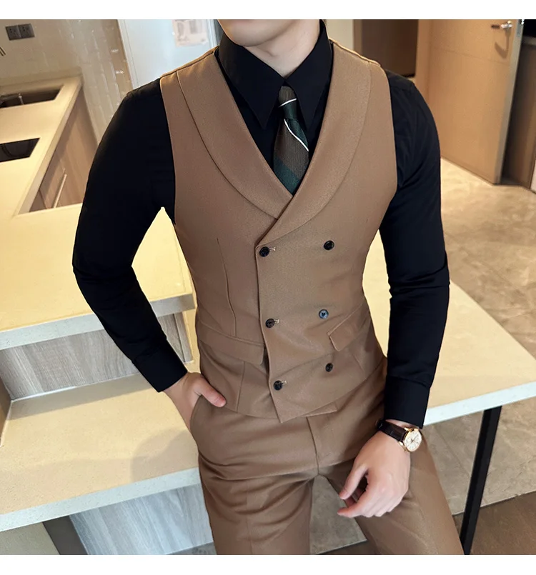 Autumn Double Breasted Suit Vest Men's High Quality Slim Casual Business Formal Sleeveless Vest Wedding Groom Banquet Waistcoat
