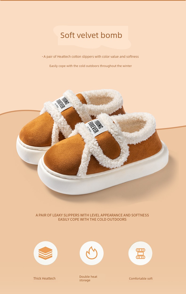Bag Heel Home Heattech Furry Fleece-Lined Outer Wear Cotton Slippers