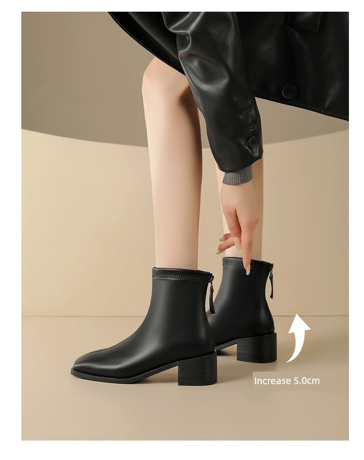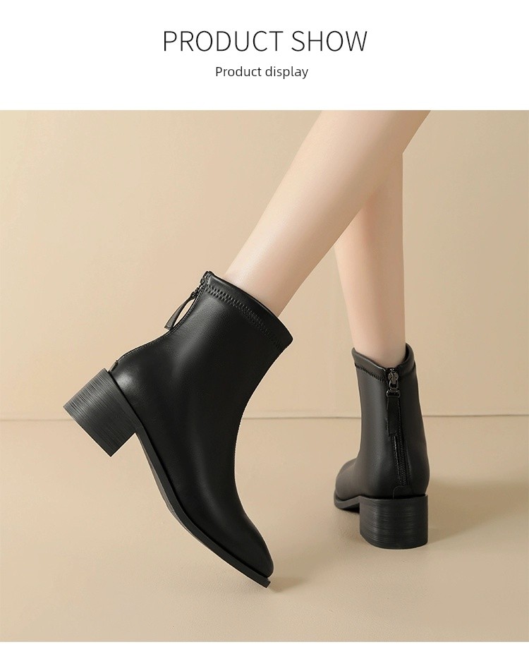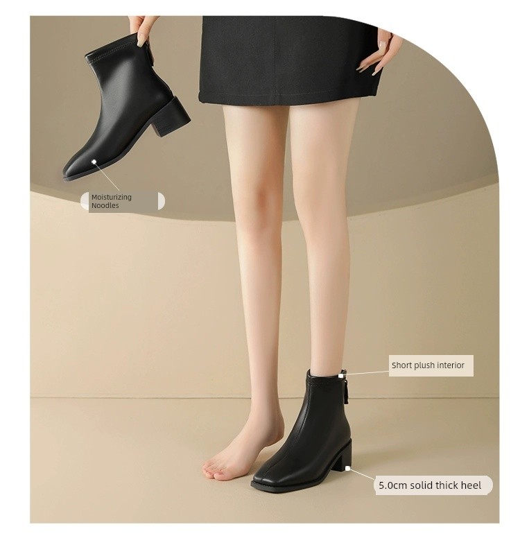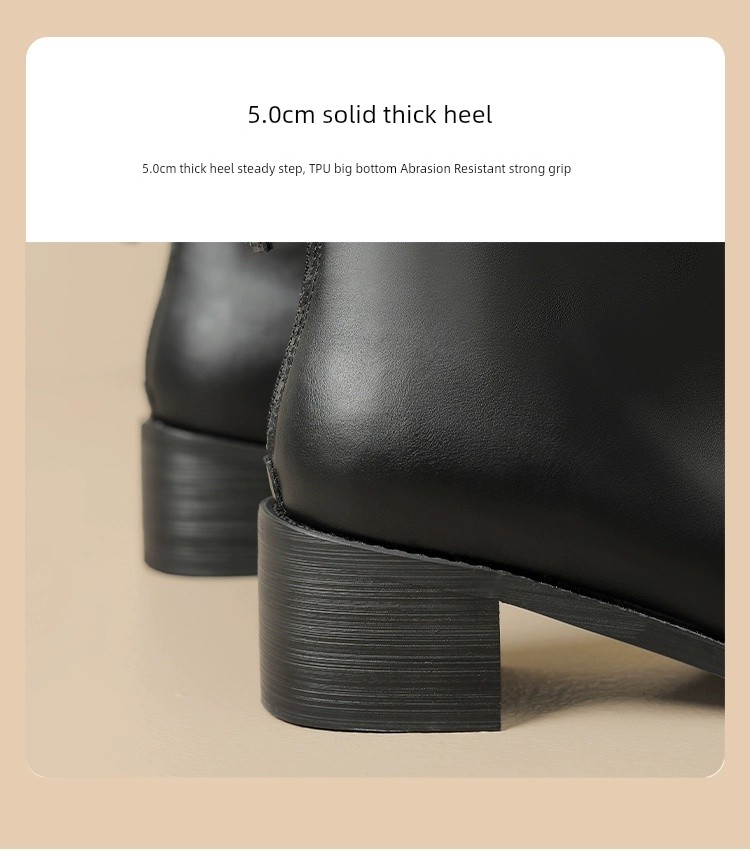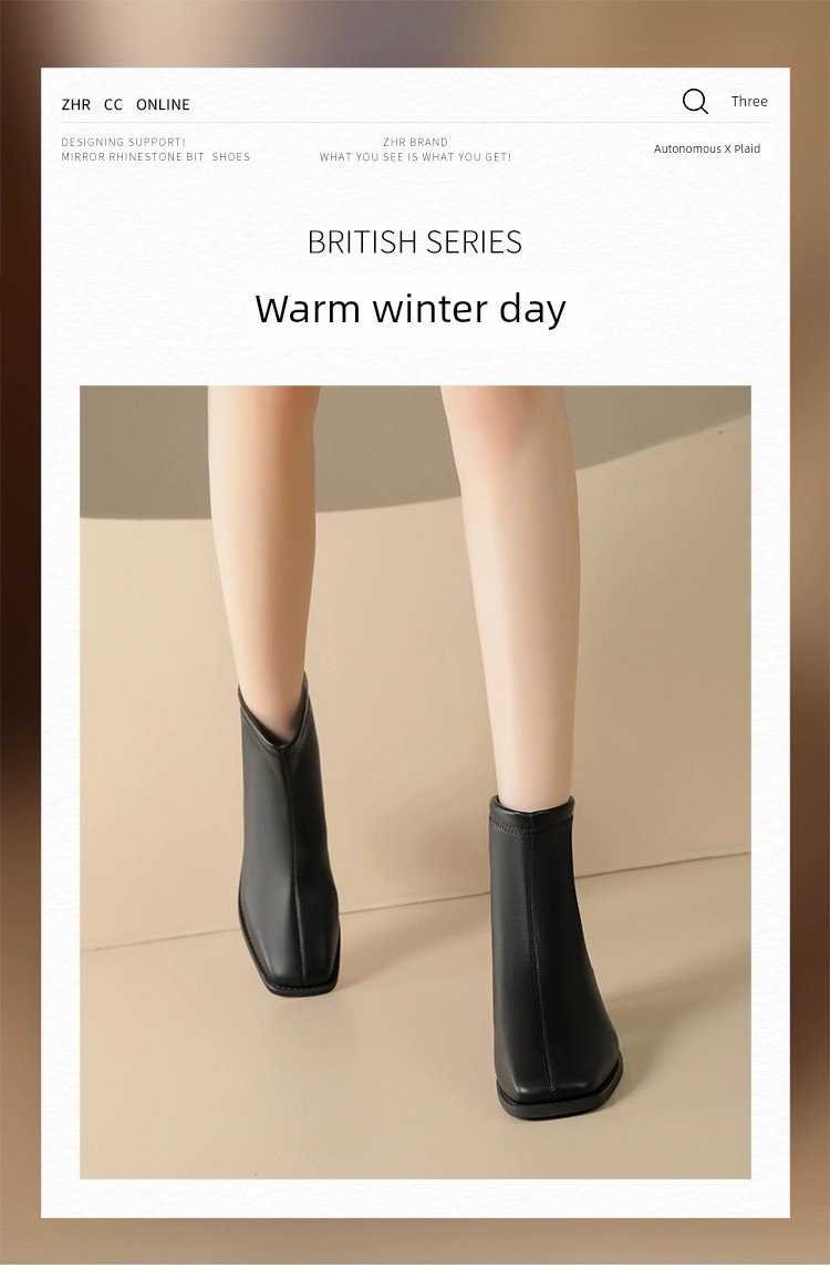 Black Short Boots Women's 2024 New British Style Fall and Winter Fleece-lined Boots Thick Sole Retro Small Middle Boots