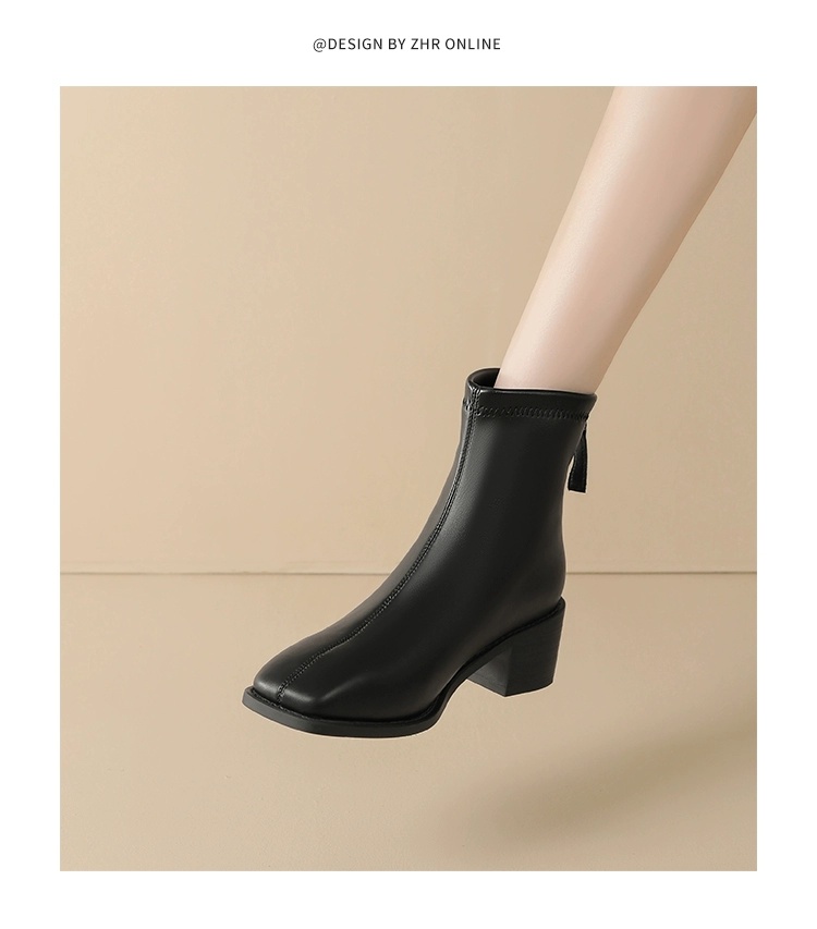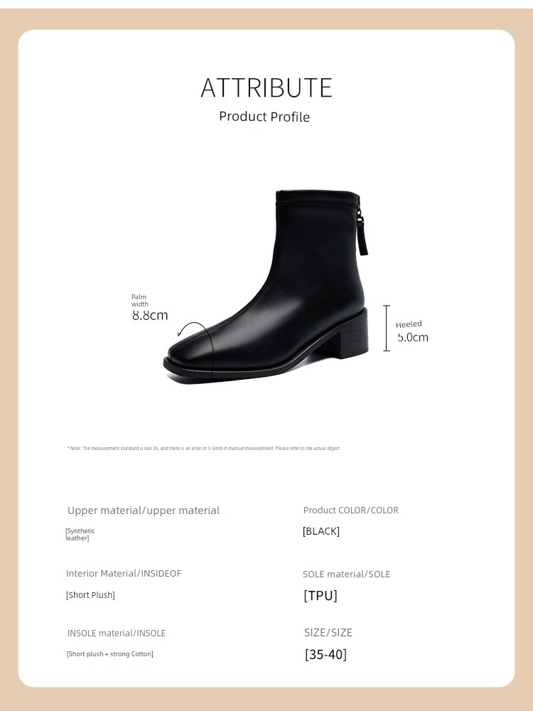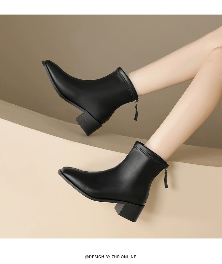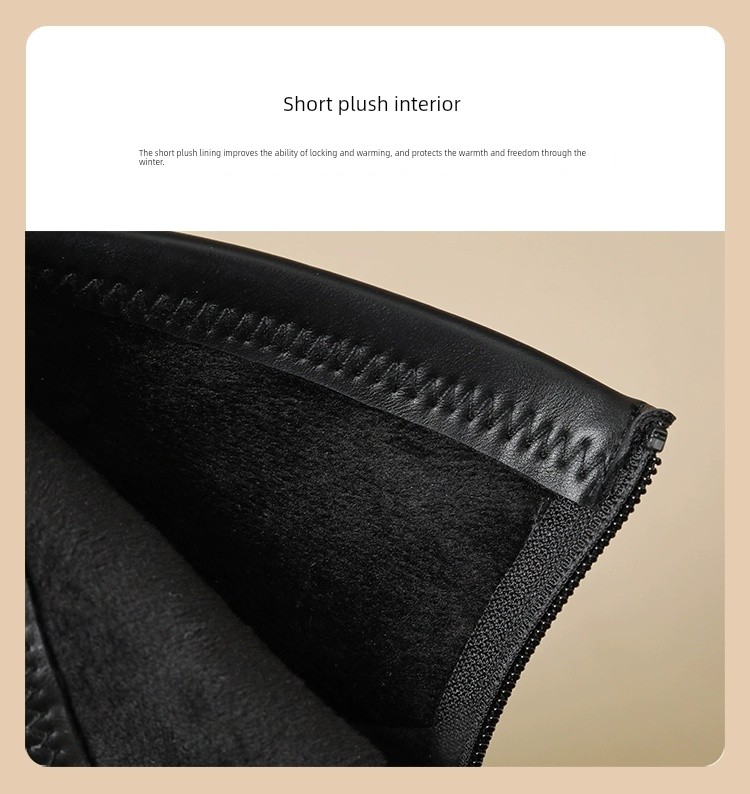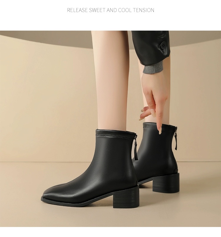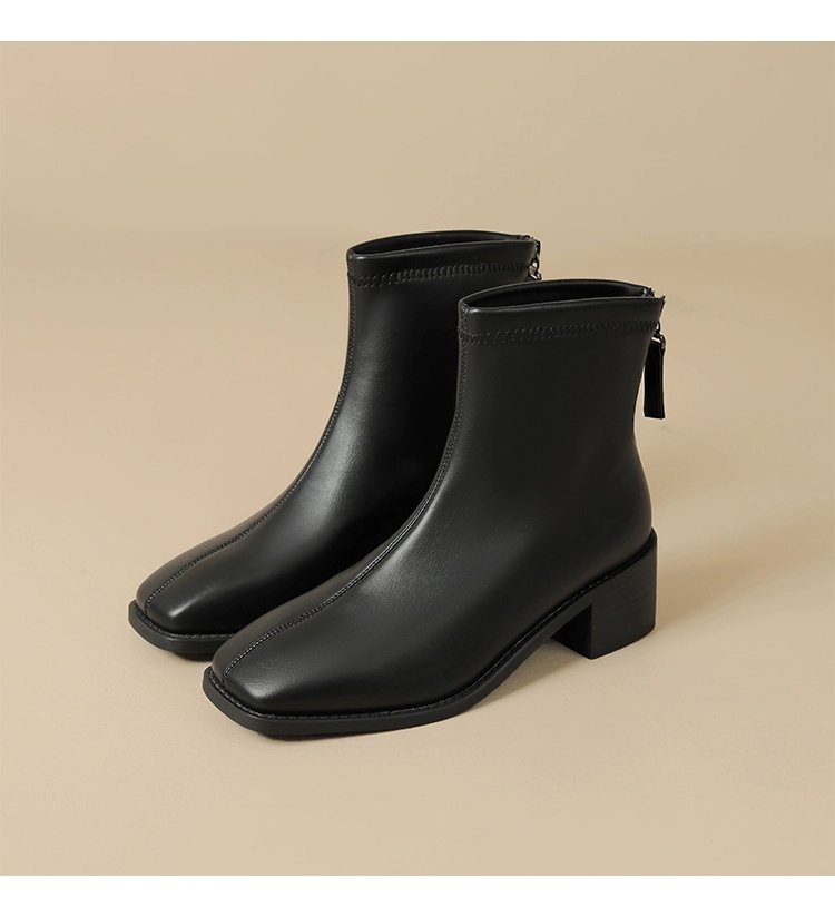 Black Short Boots Women's 2024 New British Style Fall and Winter Fleece-lined Boots Thick Sole Retro Small Middle Boots