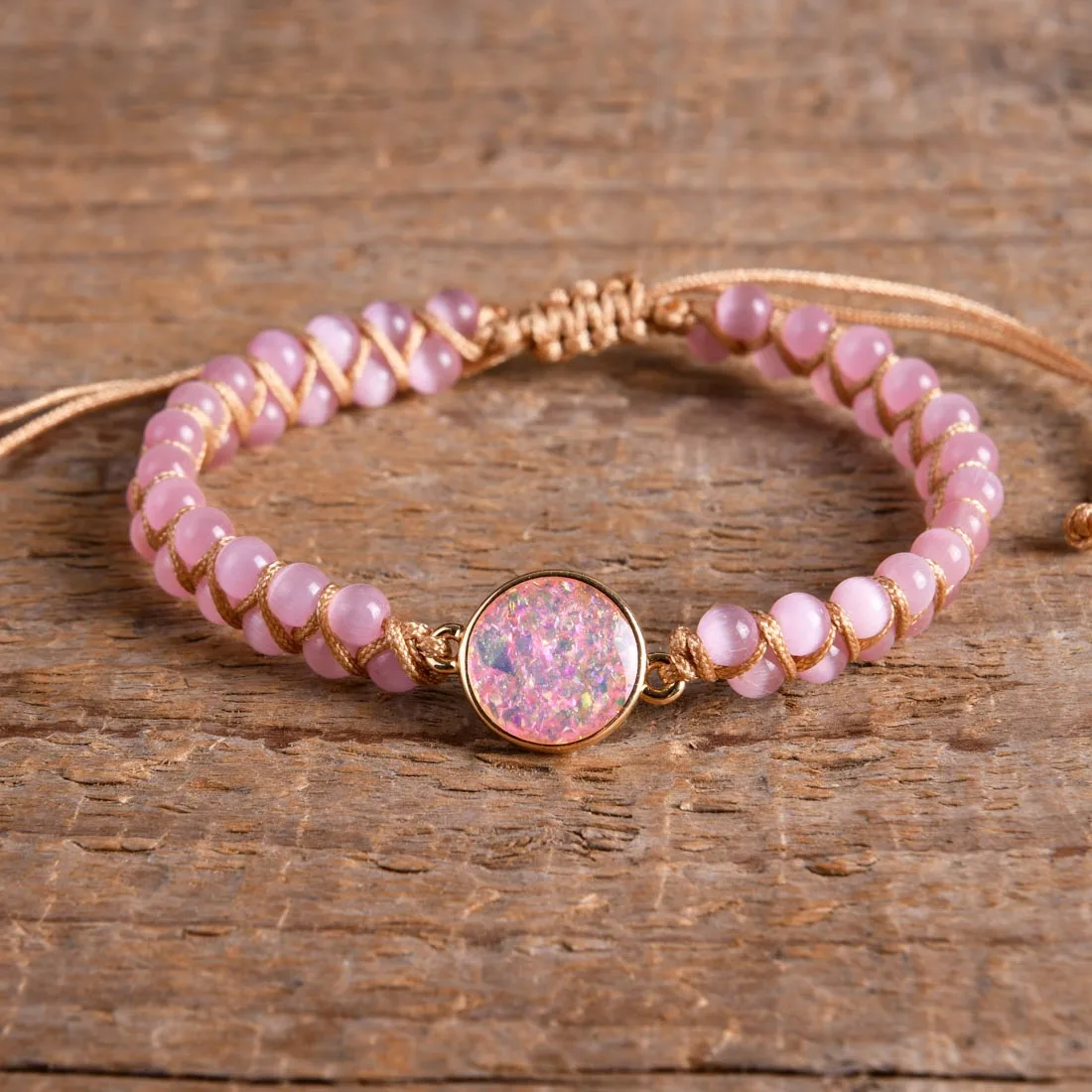Elevate your style with our Bohemian Rose Quartz & Opal Wrap Bracelet, designed for yoga lovers and friendship gifting! Why you'll love it: - Unique Braided Design for a Trendy Bohemian Vibe. - Crafted with Premium Rose Quartz and Opal Stones. - Perfect Gift for Yoga Enthusiasts and Friends. - Adjustable Fit to Suit Every Wrist Size. - Handcrafted for an Exclusive Quality Look. This exquisite bracelet features an eye-catching combination of rose quartz and opal stones meticulously braided to create a stunning accessory that complements any outfit. With its adjustable fit, it provides a perfect fit for everyone, making it a thoughtful gift for friends or a well-deserved treat for yourself. Wear it solo or stack it with your favorite arm candy for a fashionable layered look. Ideal for daily wear, yoga sessions, or special occasions. Don't miss out on this exclusive piece—grab yours today and express your unique style!