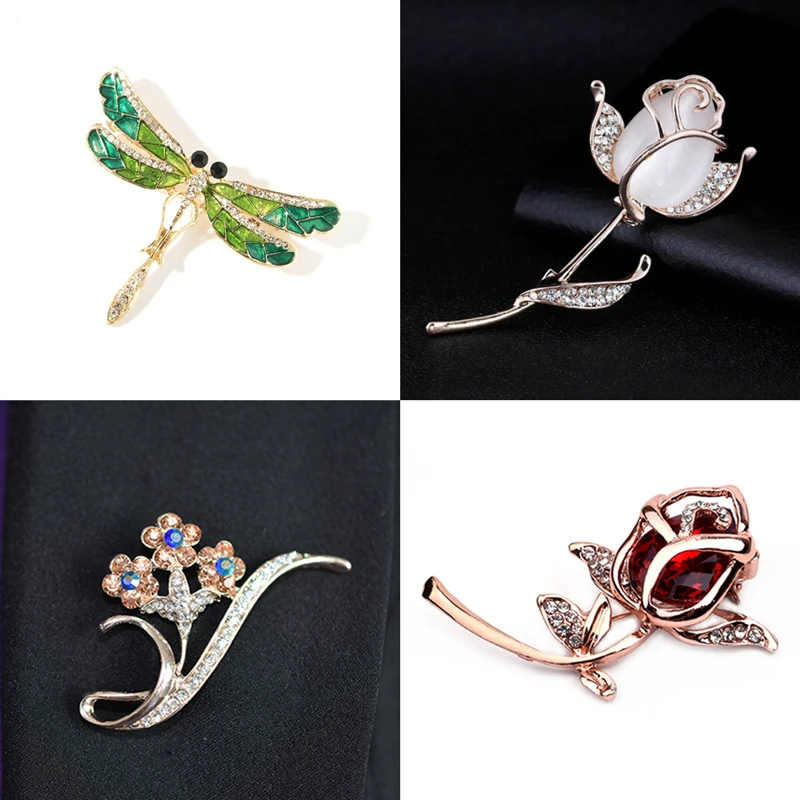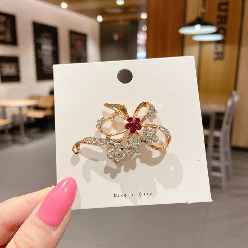 Bow Brooch Rhinestone Flower Brooches For Women Large Bowknot Brooch Pin Simple Fashion Jewelry Wedding Pin Corsage Accessories