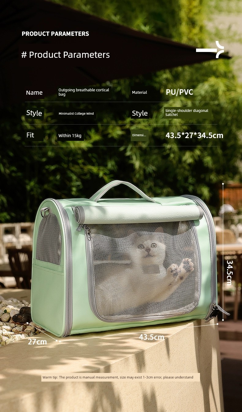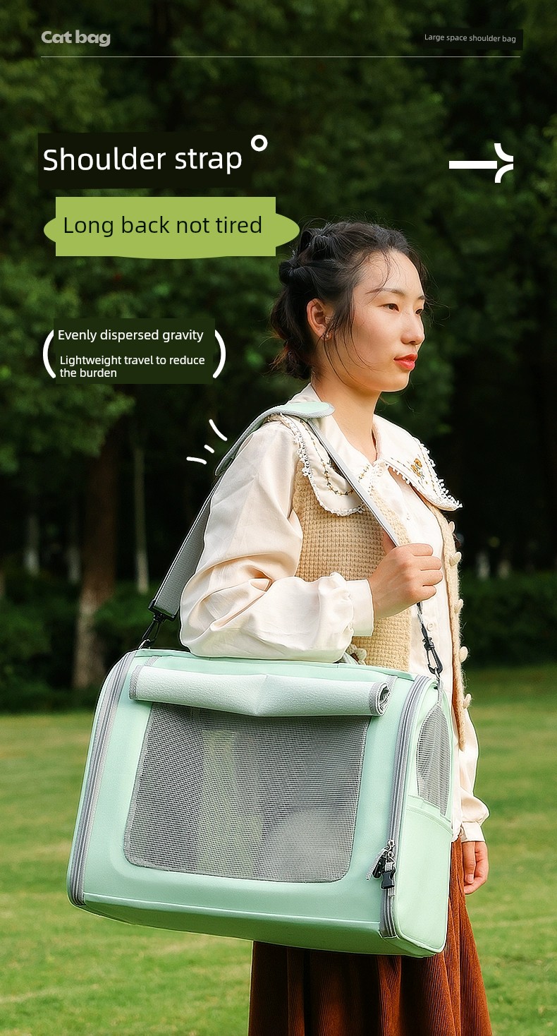Travel in style with our Breathable Portable Cat & Dog Travel Bag! This spacious satchel is designed for your pet's comfort and your convenience, making it perfect for any outing. Why you'll love it: - Large Capacity for Ultimate Storage. - Breathable Material for Optimal Comfort. - Portable Design for On-the-Go Adventures. - Versatile: Ideal for Cats and Small Dogs. - Ergonomic Shoulder Strap for Easy Carrying. Crafted with premium, breathable fabric, this pet bag ensures your furry friend stays comfortable and secure during travel. The spacious interior accommodates all the essentials, while the sleek design makes it easy to carry around. To use, simply place your pet inside, secure the zipper, and use the adjustable shoulder strap to carry it comfortably. Perfect for trips to the vet, park, or while traveling, this bag is a must-have for pet owners. Don’t miss out on this exclusive pet accessory – grab yours today!