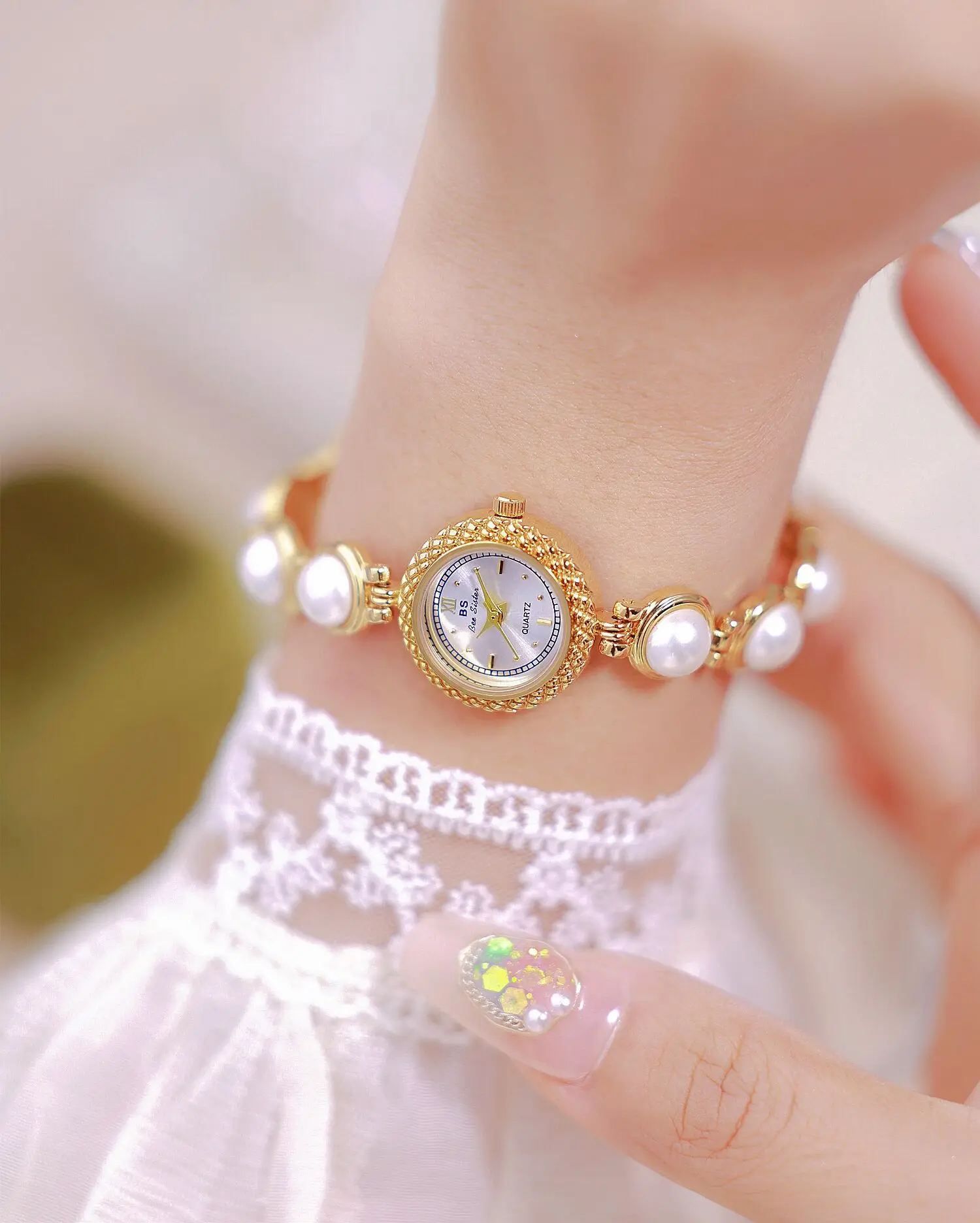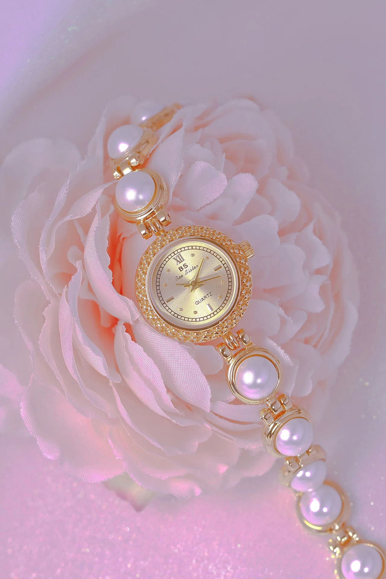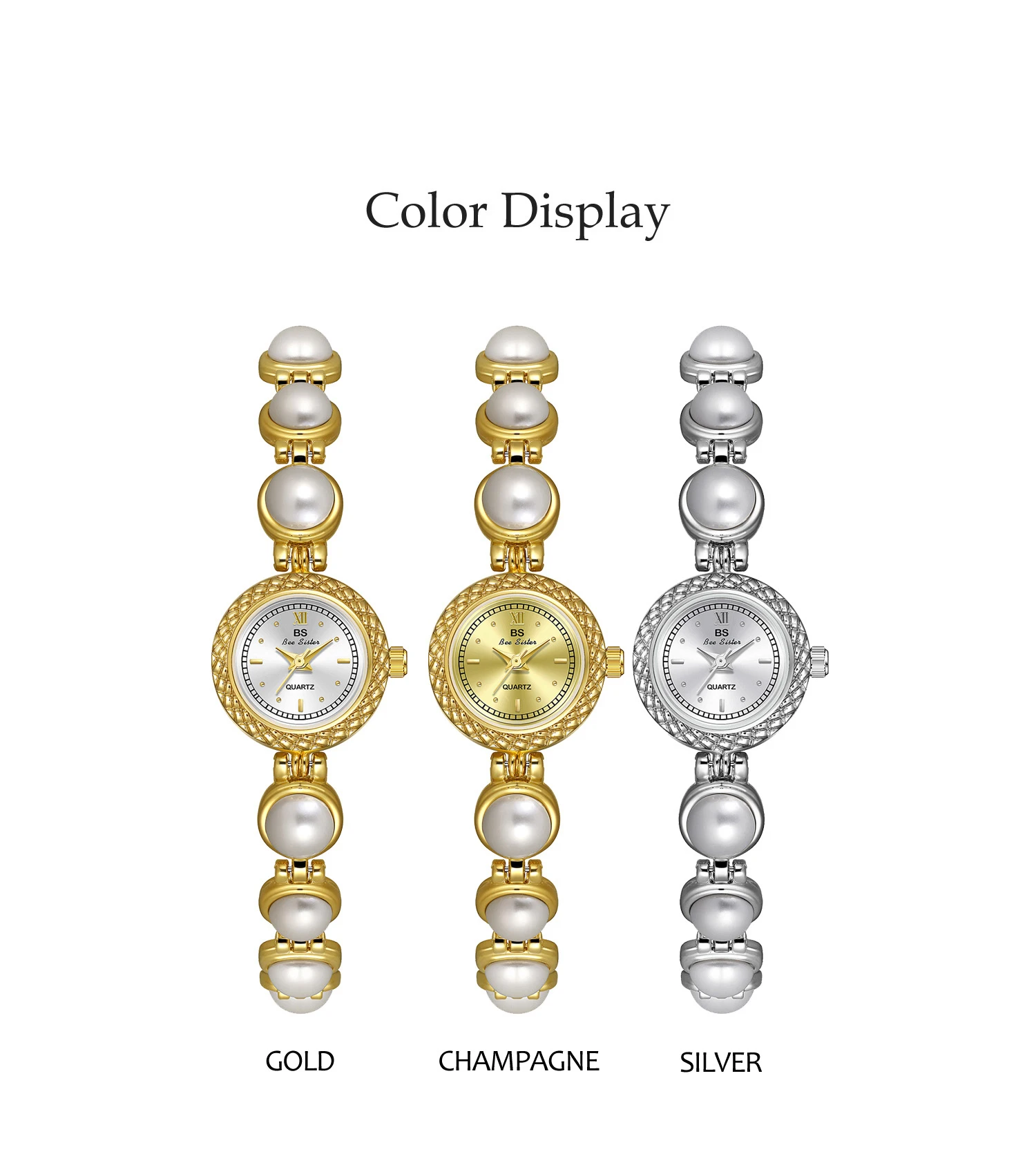 BS Women Watch Luxury Elegant Pearl Bracelet Watches For Women 2024 Waterproof Quartz Wristwatch Ladies Dress Watch Fashion