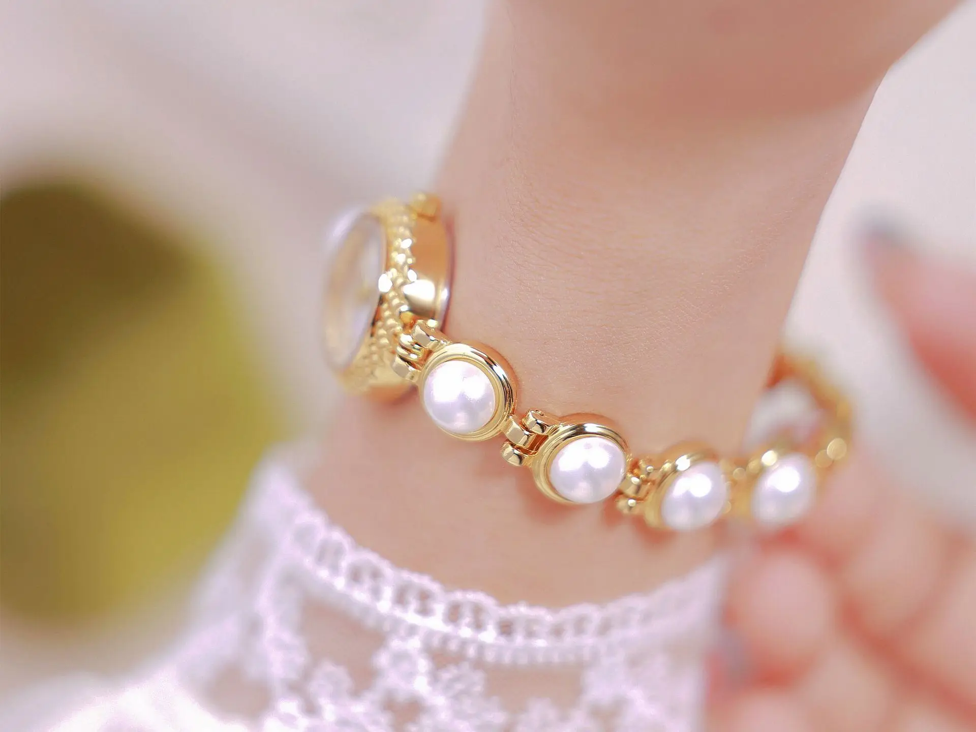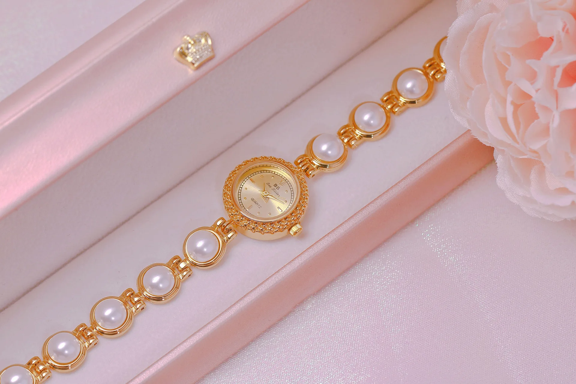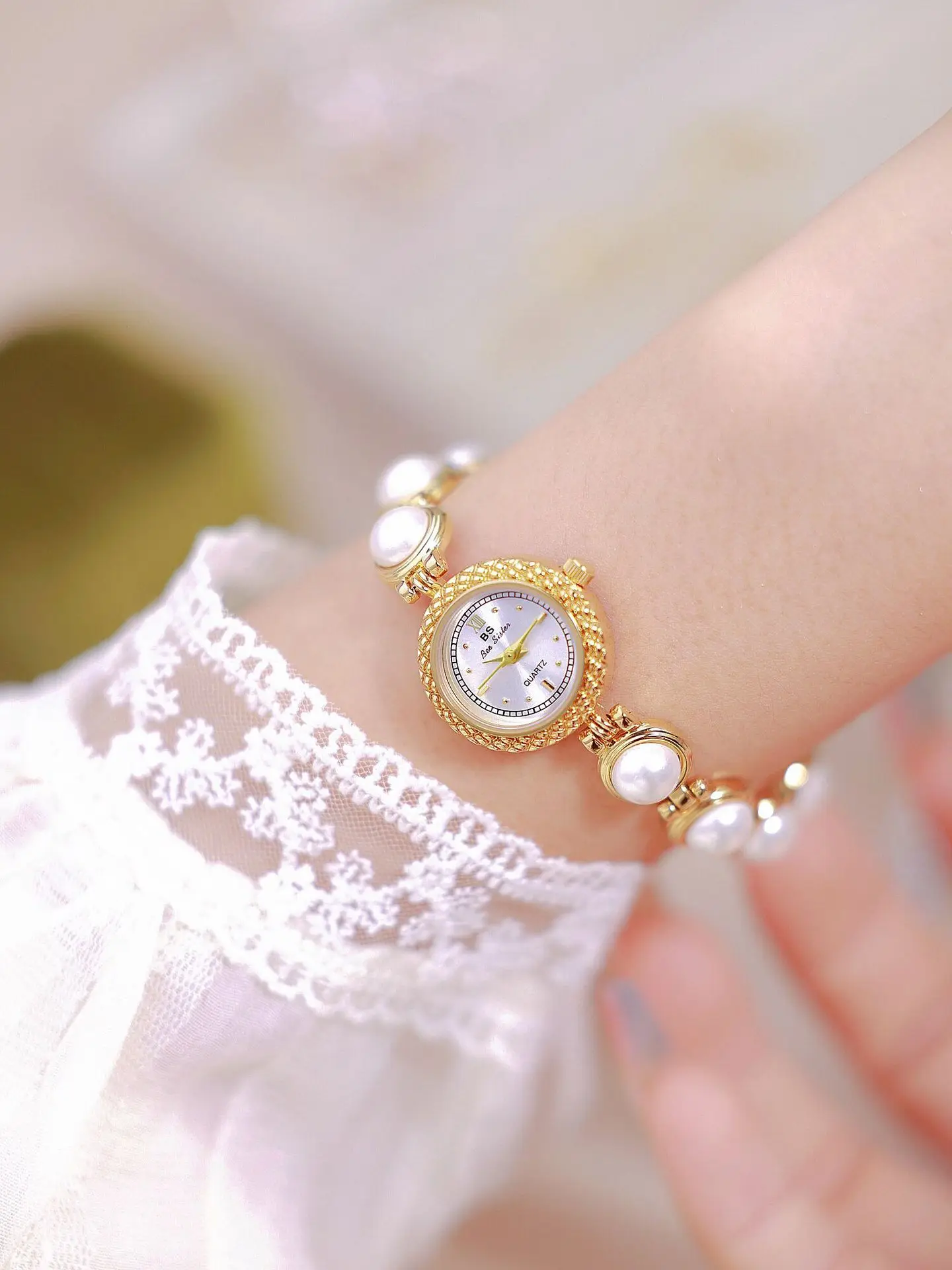 BS Women Watch Luxury Elegant Pearl Bracelet Watches For Women 2024 Waterproof Quartz Wristwatch Ladies Dress Watch Fashion