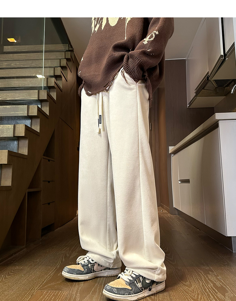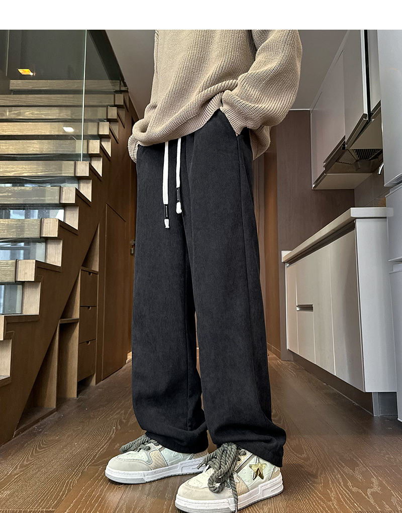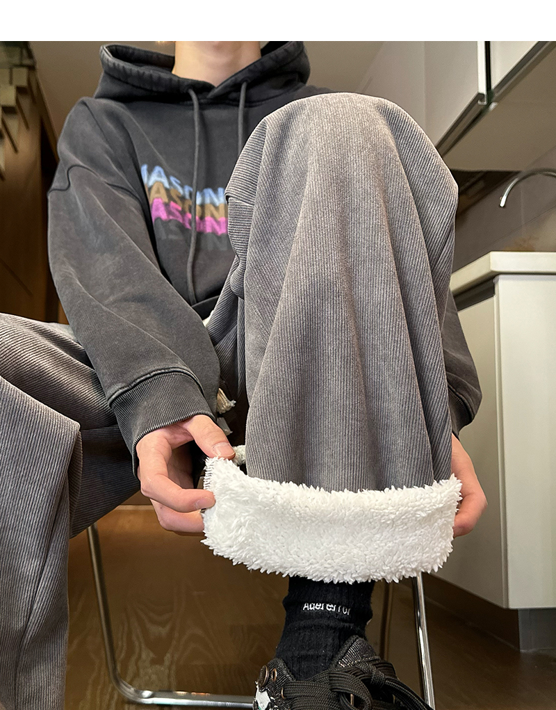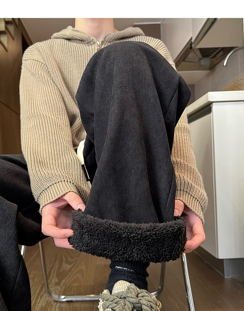 Cashmere Thickened Heattech Black Casual Pants Women's Loose Street BF Straight-leg Loose Pants Winter Corduroy Pants