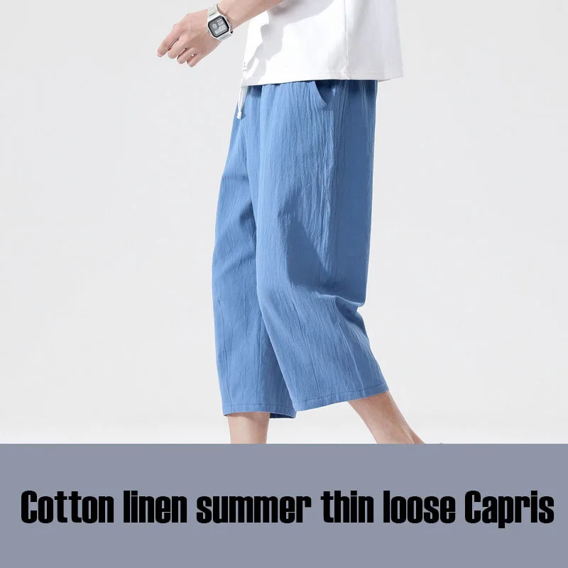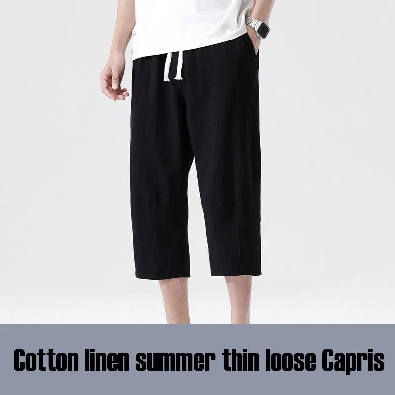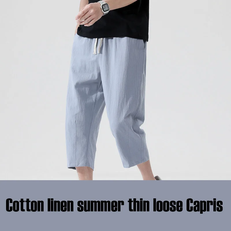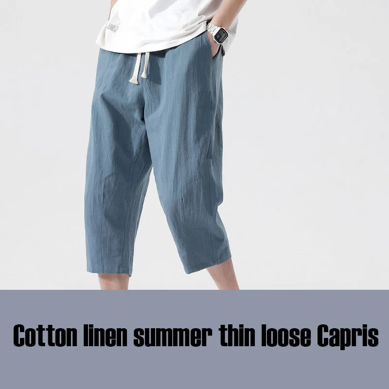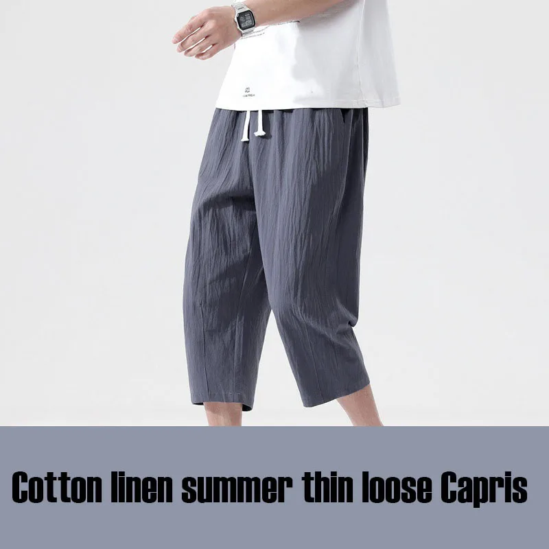 Casual Linen Capri Long Shorts Loose Fit Men's Cotton Linen Harem Shorts Below Knee Baggy Capri Yoga Fitness 3/4 Pants
