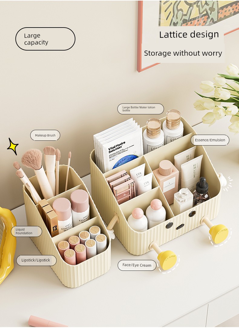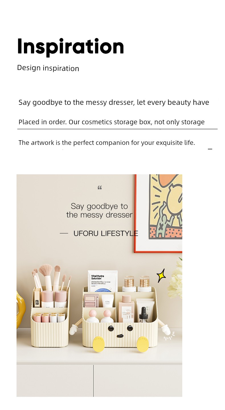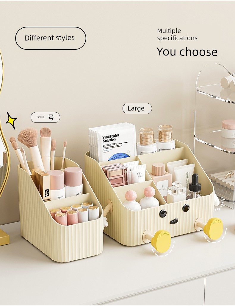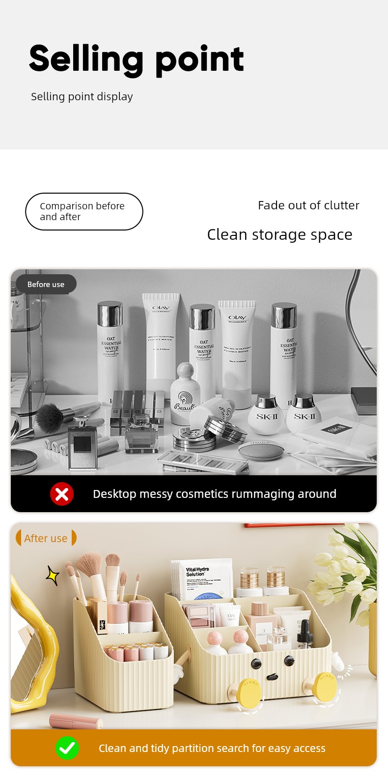 Imagine stepping into a world where your beauty products are not just stored but celebrated. Every morning, as the sunlight dances across a beautifully organized dresser, you find your cosmetics neatly arranged in the *Chic Cosmetics Storage Box*. This isn’t simply a storage solution; it’s a revolution that transforms the mundane into the magical, empowering you to start each day with clarity and confidence.    Born from the desire to harmonize aesthetics with functionality, this storage box is crafted for beauty enthusiasts who value order and elegance. Each compartment is meticulously designed to cradle your beloved lipsticks, creams, and beauty tools, turning chaos into a stunning display. With its innovative grid layout, your daily essentials are merely a glance away, allowing you to effortlessly pick your favorite look and step into your day radiant and prepared.    As you glide your fingers over the sleek surface of the *Chic Cosmetics Storage Box*, a wave of calm washes over you. Every interaction is a gentle reminder that you’re treating yourself to a moment of self-care, transforming your dressing table into a sanctuary of beauty. It's not just about storing your beauty products; it’s about transforming your daily routine into a joyful ritual, inspiring creativity and enhancing your personal style.    Customers are loving it! Take Jenna M's word for it: “This storage box changed my mornings! I can finally see all my products at a glance; it feels so good to start my day organized.” Or listen to Leo K, who shares, “I love how it fits perfectly on my dresser. It's stylish, and I get so many compliments on it.” These glowing reviews reflect a collective sigh of relief from beauty lovers who finally have a space where elegance meets practicality.    Are you ready to elevate your beauty experience? Don’t let disorganization steal your joy. Transform your space and routines with the *Chic Cosmetics Storage Box*. A more organized you awaits—let your dresser bask in its newfound elegance, and watch how it positively impacts your daily life. Order yours today, and embrace the beauty of organization you deserve!
