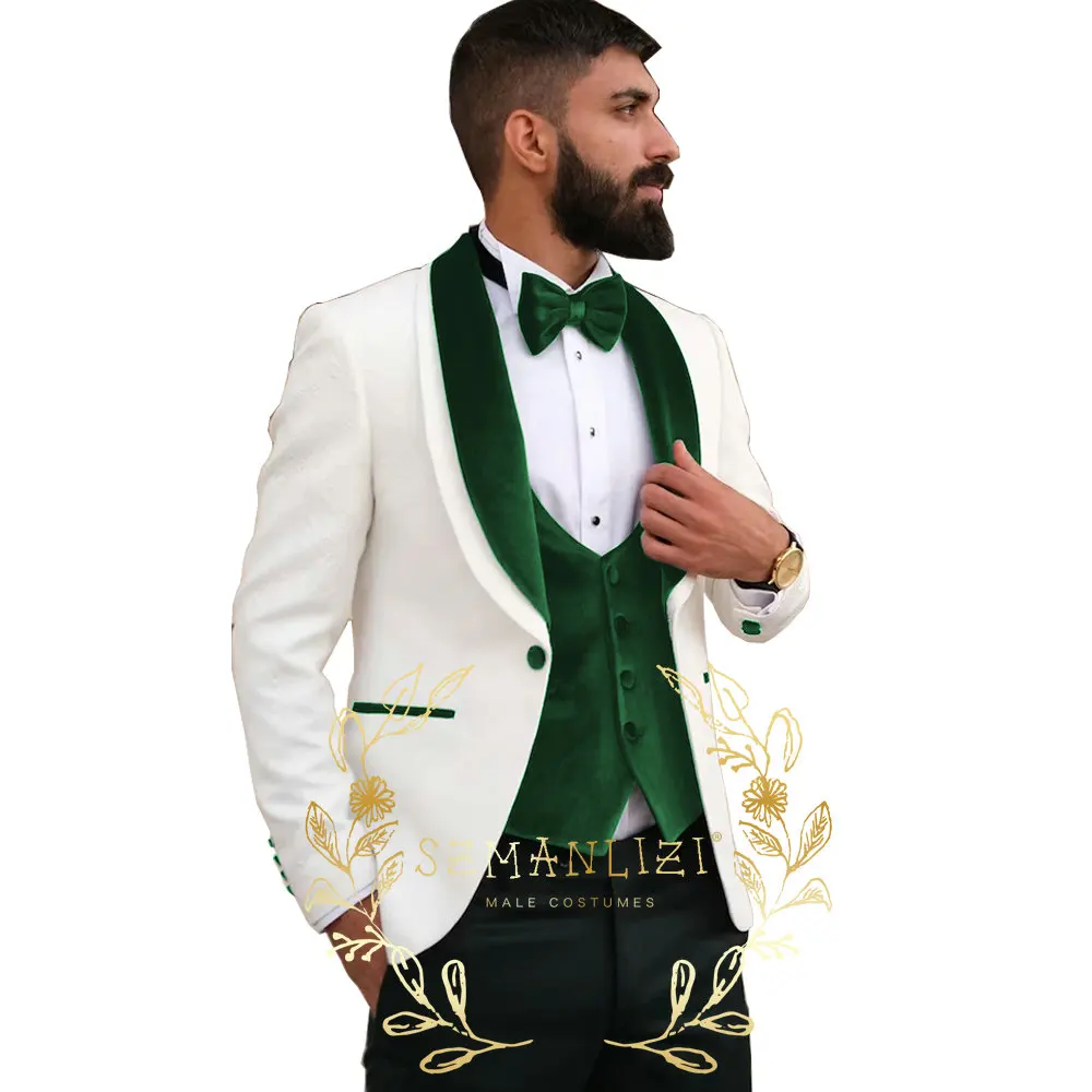 Classic White Jacquard 3 Pieces Men's Suits Tailor Made Business Formal Man Wear Wedding Suit Grooms Blazer Vest Pants Set