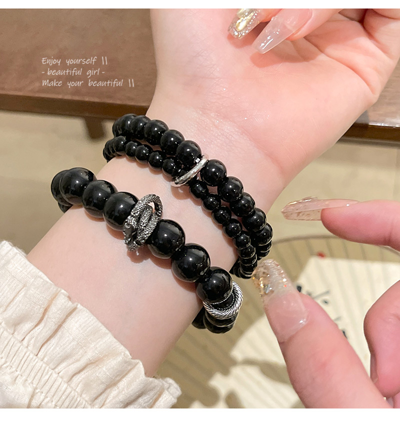 Classy Black Beaded Dragon Bracelet - 2024 Trend