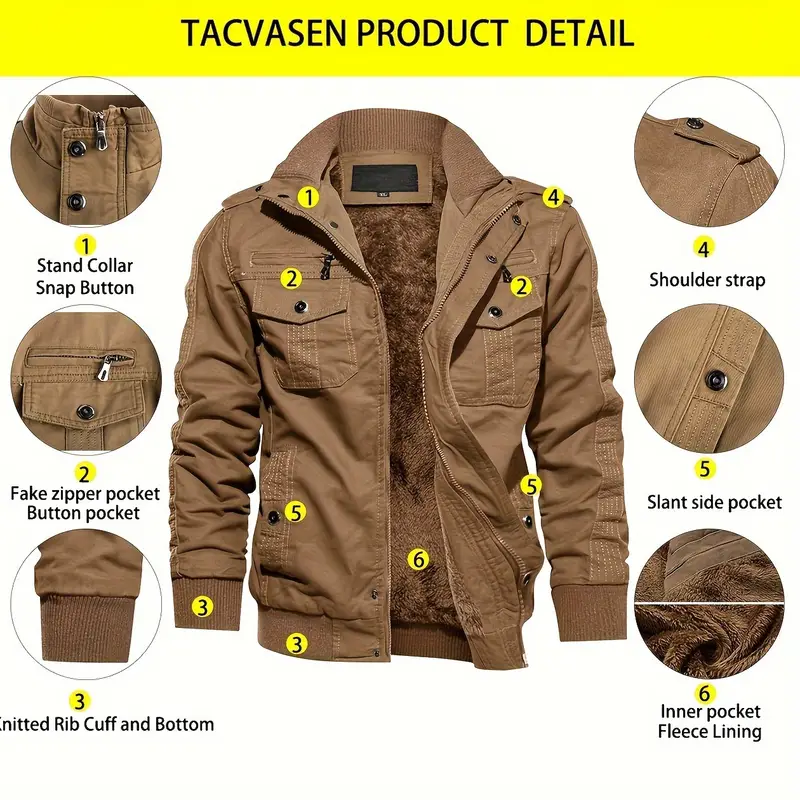 Cozy Material: This military jacket for winter is made of cotton on the outside and has a soft fleece lining inside, ensuring warmth and coziness.