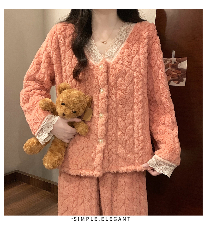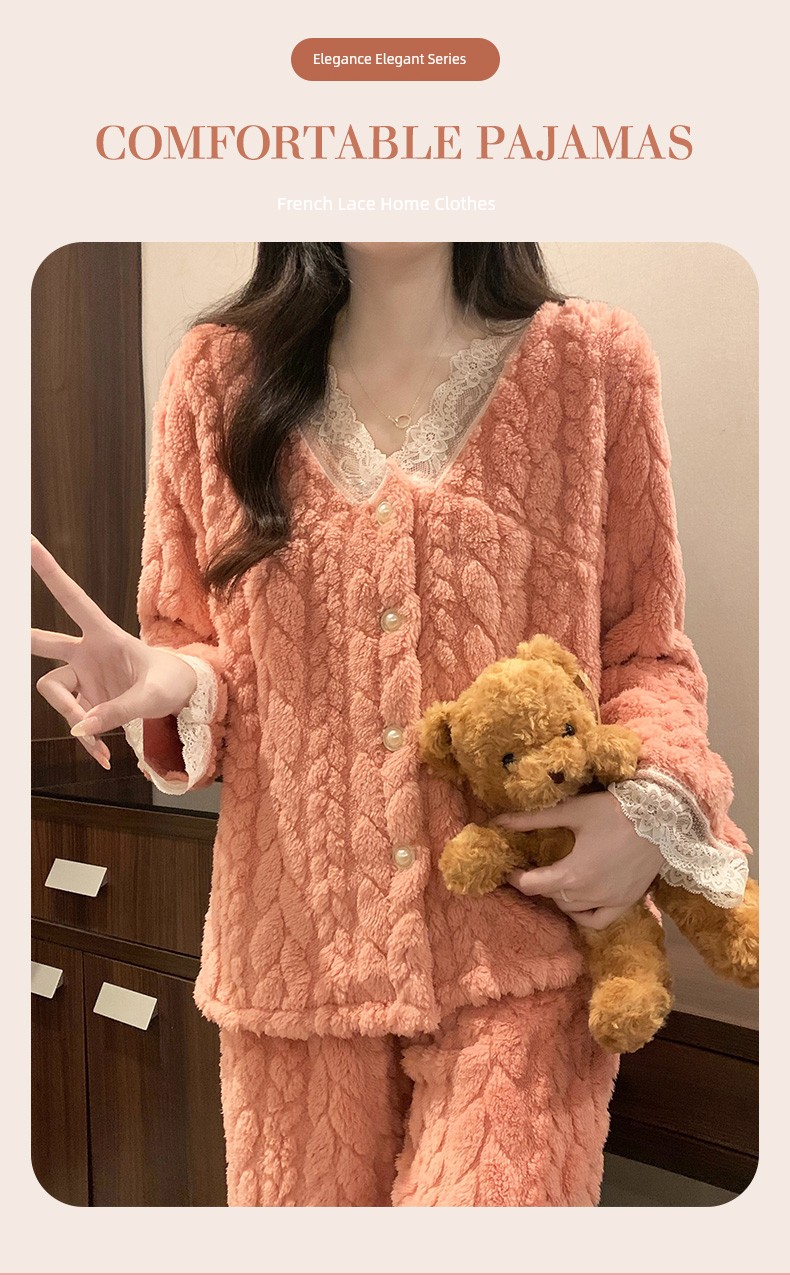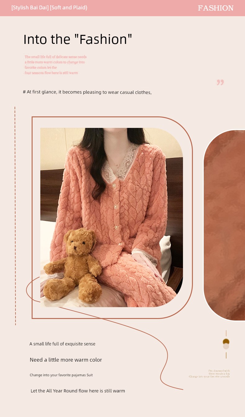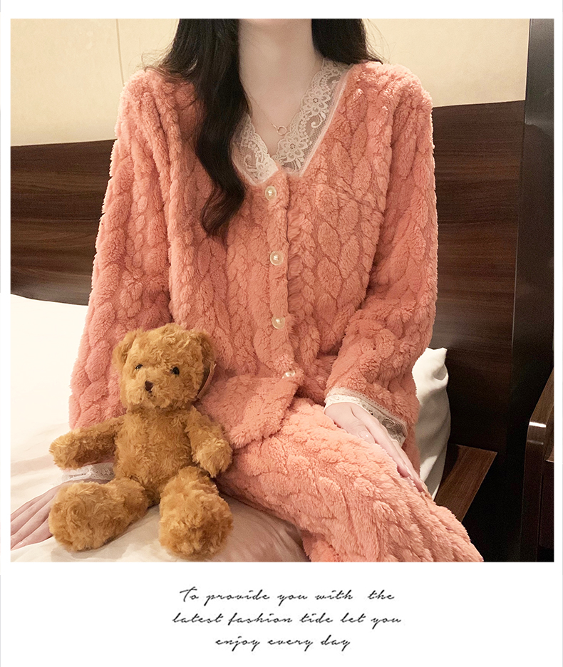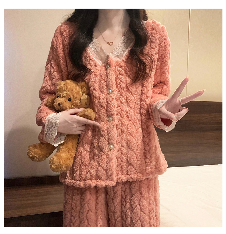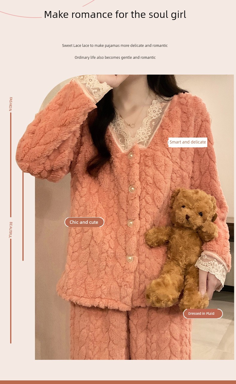 Coral Velvet Pajamas Women's Cute Suit 2024 Autumn and Winter New Arrival Flannel Girls Sweet Home Wear Winter