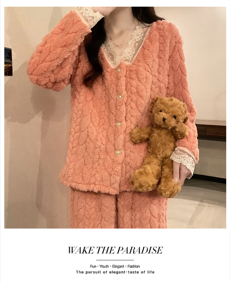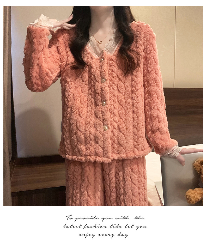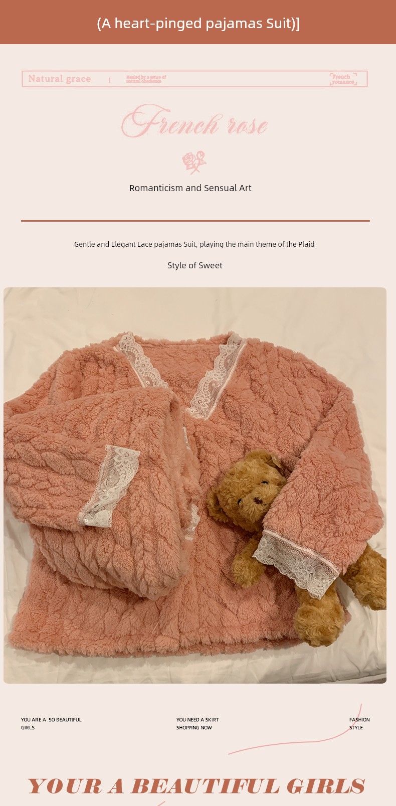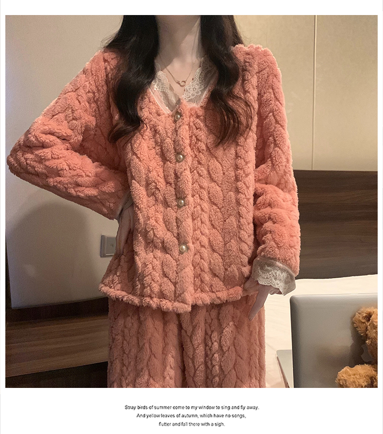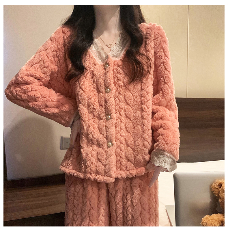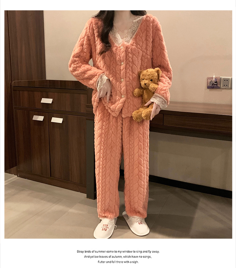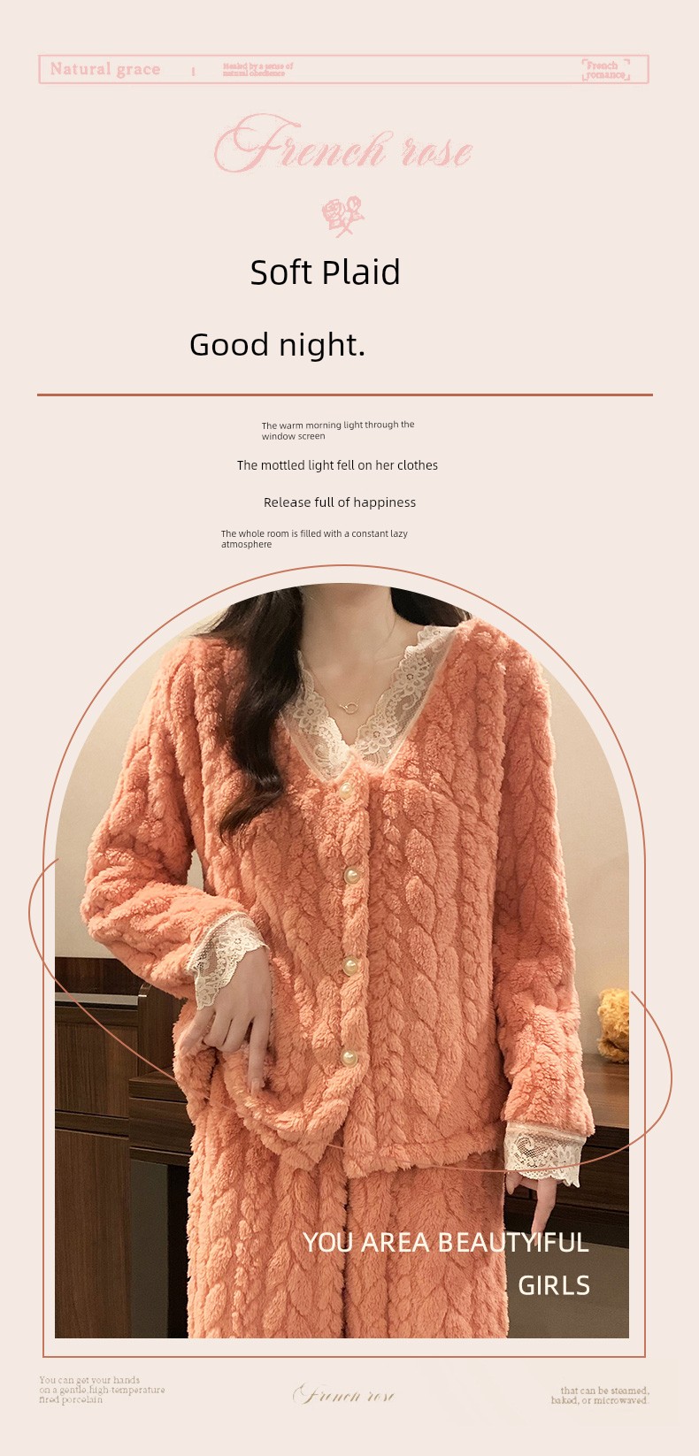 Coral Velvet Pajamas Women's Cute Suit 2024 Autumn and Winter New Arrival Flannel Girls Sweet Home Wear Winter