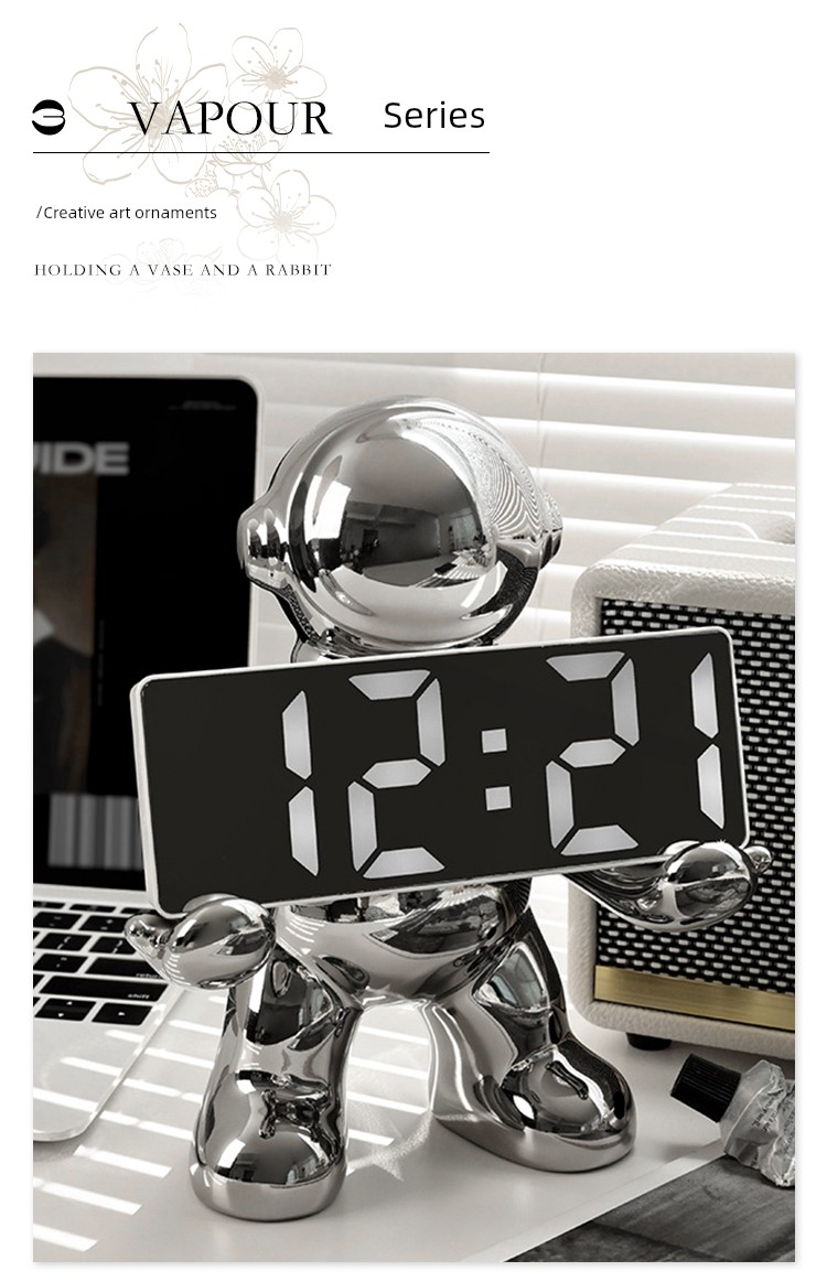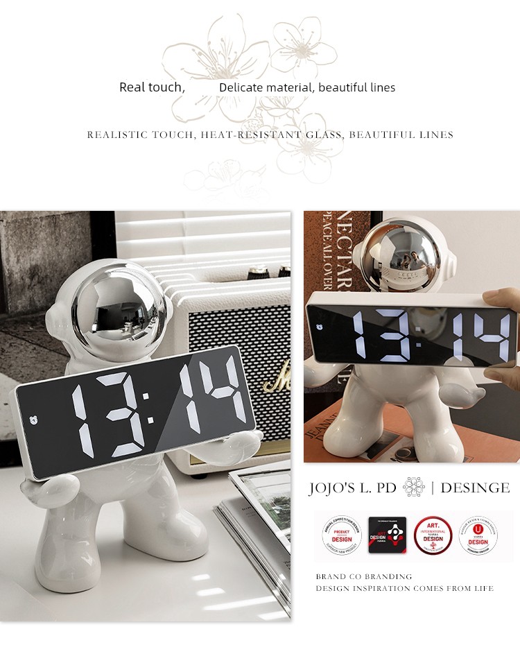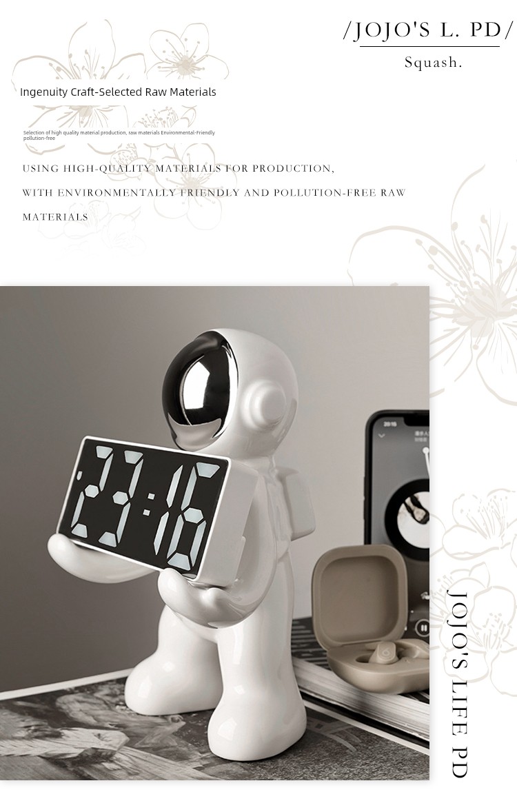 Imagine a cozy bedroom illuminated by the soft glow of a unique clock that not only tells time but also inspires dreams. Meet the Creative Spaceman Clock, a delightful addition to any child's bedside table, designed to spark curiosity and adventurous thoughts before drifting off to sleep.    This charming clock was born from a desire to make bedtime more exciting for kids. Picture your little ones, captivated by the figure of a spaceman, gazing up at the stars as they count down to bedtime. It transforms a simple timekeeping device into a motivational piece, encouraging them to explore the wonders of the universe, right from their own room.    With its imaginative design, this clock isn't just functional; it's a statement piece. The colorful spaceman figure captures attention, making it not only a tool for learning to tell time but a whimsical decoration that enhances their room's atmosphere. It also features a clear, easy-to-read face and quiet non-ticking mechanism, providing peace during those precious nighttime hours.    Envision your child reaching over to turn off the alarm in the morning, excitement lighting up their face as they also see the charming spaceman waiting for another day of exploration. The gentle illumination of this clock creates a soothing environment, helping them feel secure as they drift off to dreamland.    Here’s what parents are saying: “My son adores his spaceman clock! It’s not just a clock; it ignites his imagination!” - Lily N. “Finally, a clock that makes learning time fun. It’s bright, cheerful, and has totally transformed our bedtime routine!” - John D.    Now, it’s time to make bedtime an adventure! Don’t miss out on the chance to inspire your child’s imagination with the Creative Spaceman Clock. Order yours today and ignite a passion for exploration while adding a vibrant touch to their bedside decor!