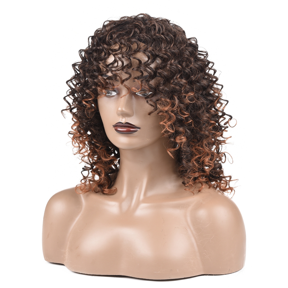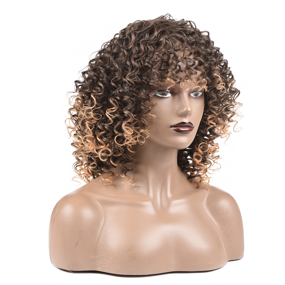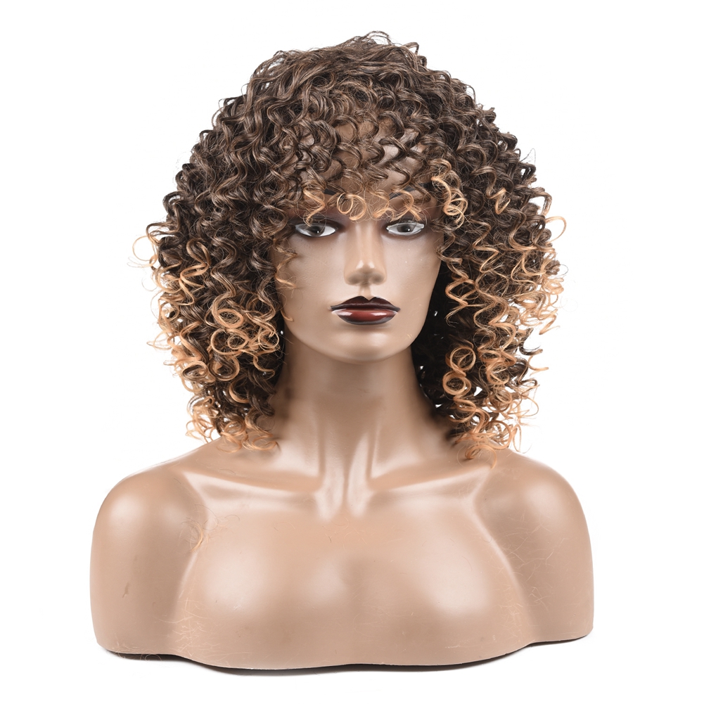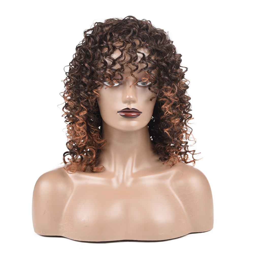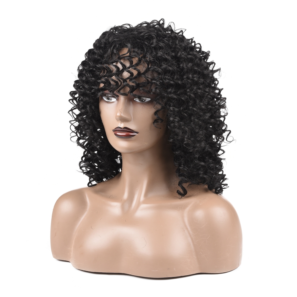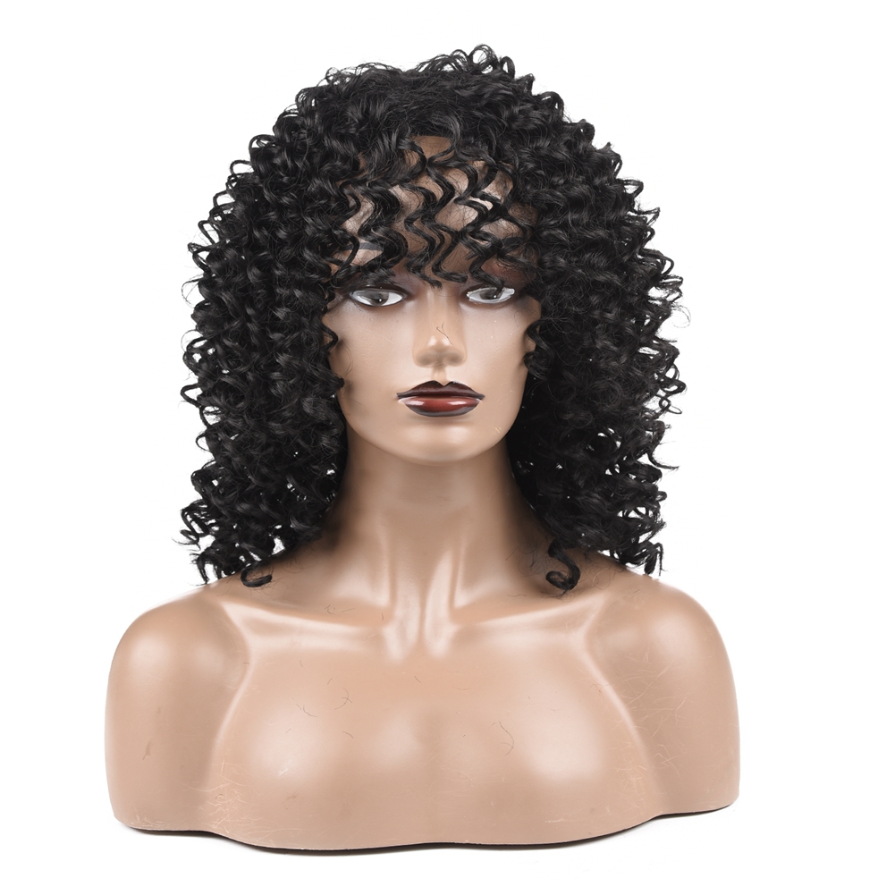 Curly Wigs for Black Women Short Curly Wig with Bangs Soft Big Bouncy Fluffy Small Curls Wig Heat Resistant Synthetic Wig for Daily Party Use (Natural Black,12Inch)