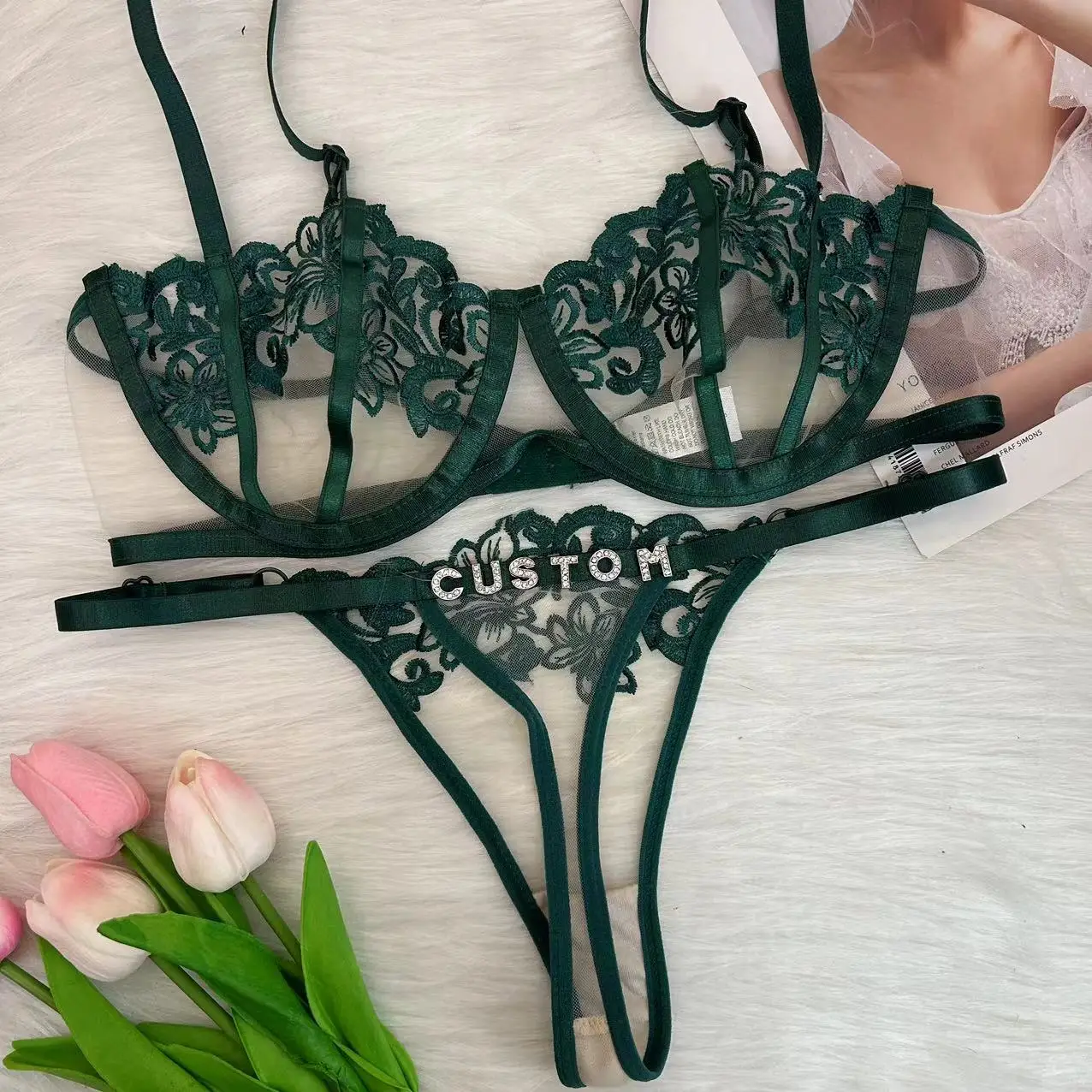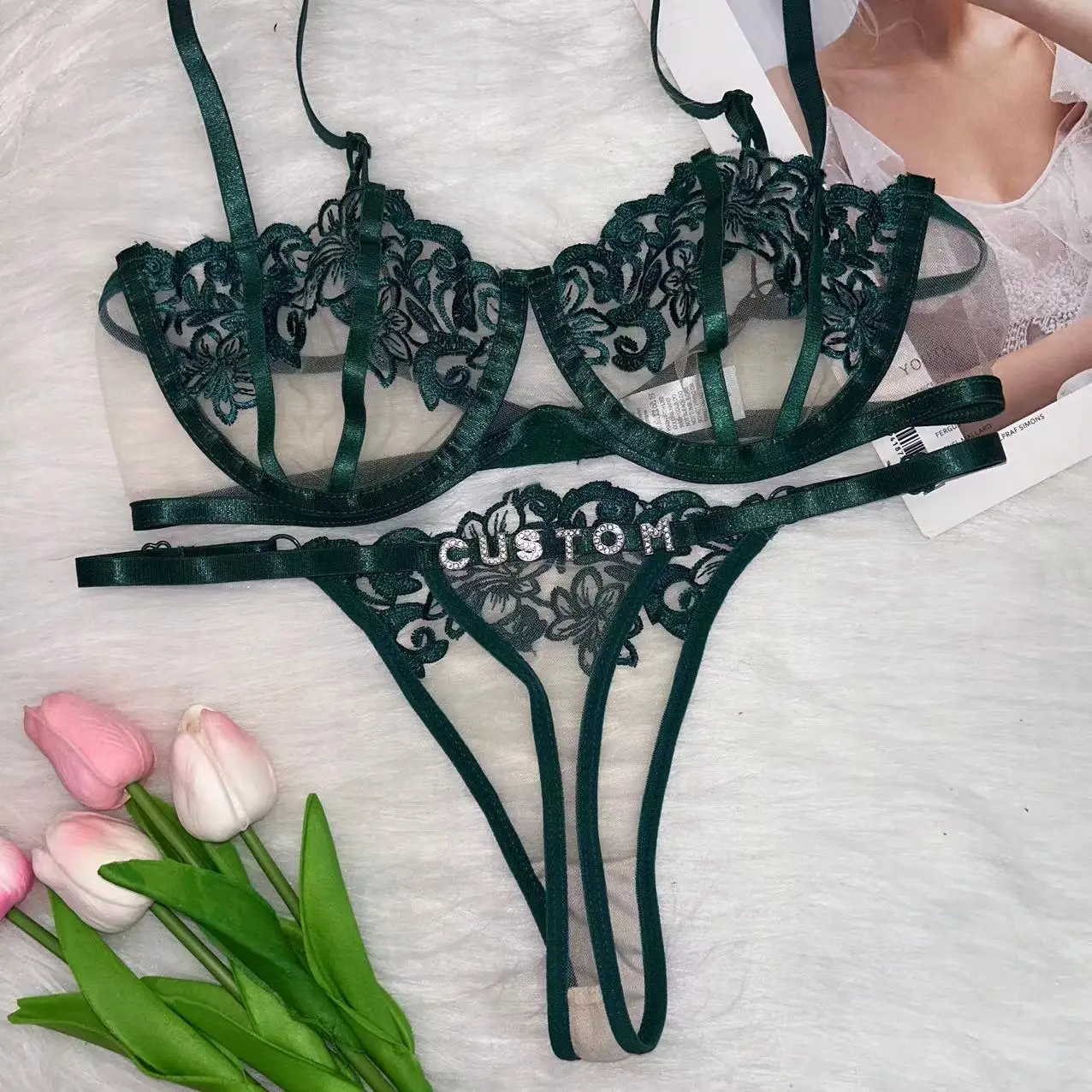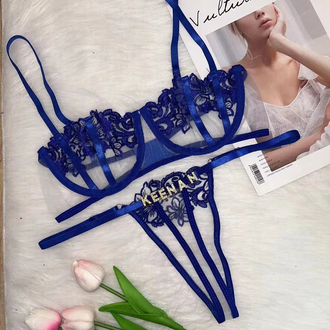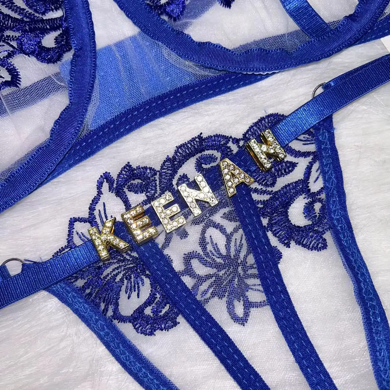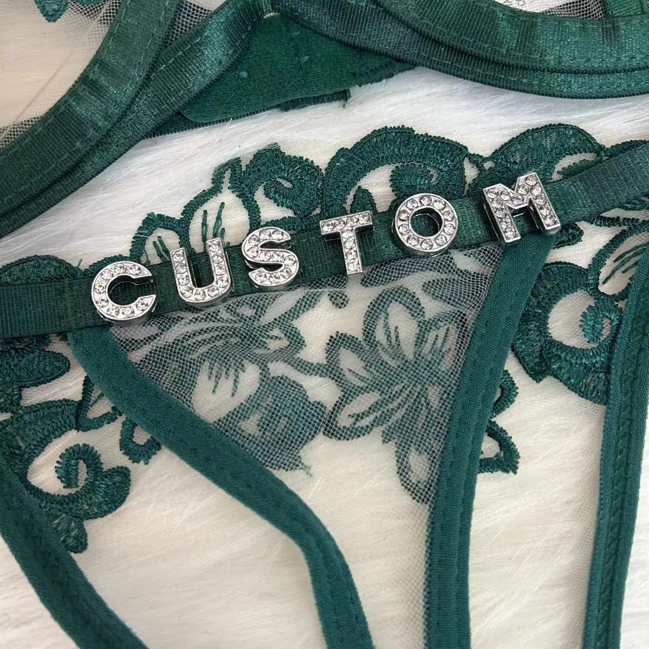 Elevate your intimate wardrobe with our Exclusive Custom Sheer Thong & Bra Set tailored just for you! Why you'll love it: - Hypoallergenic and sweat-resistant for maximum comfort. - Dazzling crystal letters that add a personal touch. - Versatile design easily pairs with any outfit. - Perfect fit for special occasions like dates or parties. - Made from high-quality materials for luxury feel. This sexy underwear set features a custom thong and triangle cup bra adorned with sparkling zirconia letters. The hypoallergenic material ensures it stays comfortable during wear, making it a great choice for any woman looking to spice things up. To use, simply adjust the straps for your perfect fit and enjoy this stunning lingerie set for yourself or as a fabulous gift. Don't miss out on owning this beautifully designed piece – it's a limited time offer!