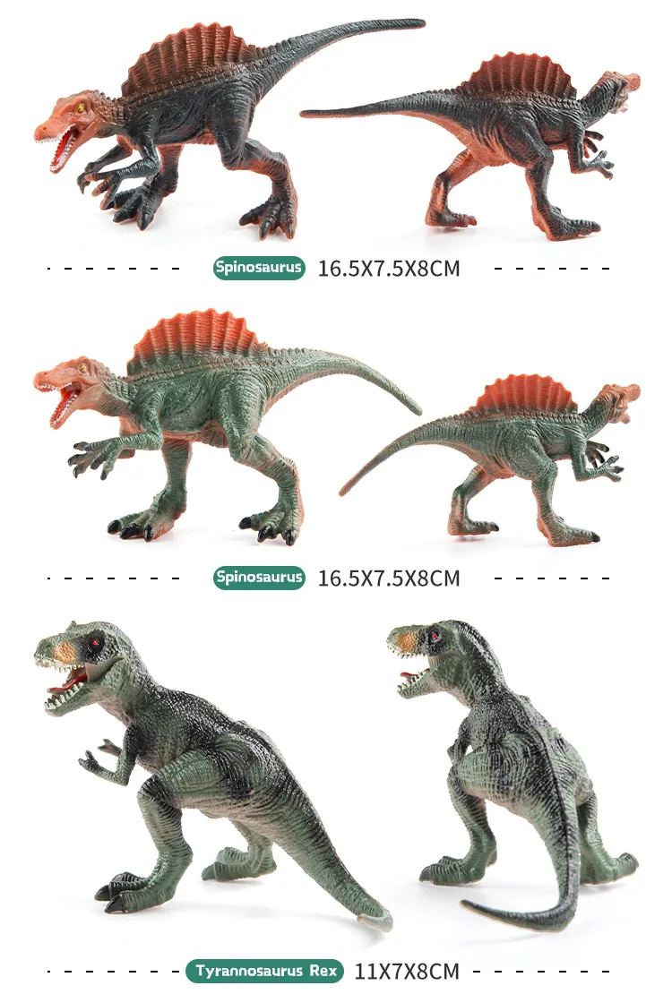 🦖 Unleash the roar of adventure! Our Dinosaur Action Figures Set features intricately designed models of T-Rex, Spinosaurus, and Triceratops, making it the ultimate toy for young dinosaur enthusiasts. These solid models are perfect for imaginative play and educational purposes, fostering learning about these magnificent creatures of the past.     🌟 Why you need it:    - Encourages creativity and imaginative storytelling.    - Provides an educational experience about dinosaurs and history.    - Durable and safe materials ensure longevity, even with rough play.    - Perfect gift for birthdays, holidays, or special occasions.    ❤️ Why kids love it:    - Realistic designs spark excitement and engagement.    - Great for both solo and group play, enhancing social skills.    - Easy-to-handle sizes for little hands.    - A perfect addition to any toy collection that can be used in a variety of play scenarios.    🏰 How to use it: Use these action figures for playtime adventures, educational demonstrations, or as collectible display items. Mix and match with other toys to create a thrilling prehistoric world!    🎁 Limited time offer! Purchase now and give the gift of imagination. Guaranteed fun or your money back!