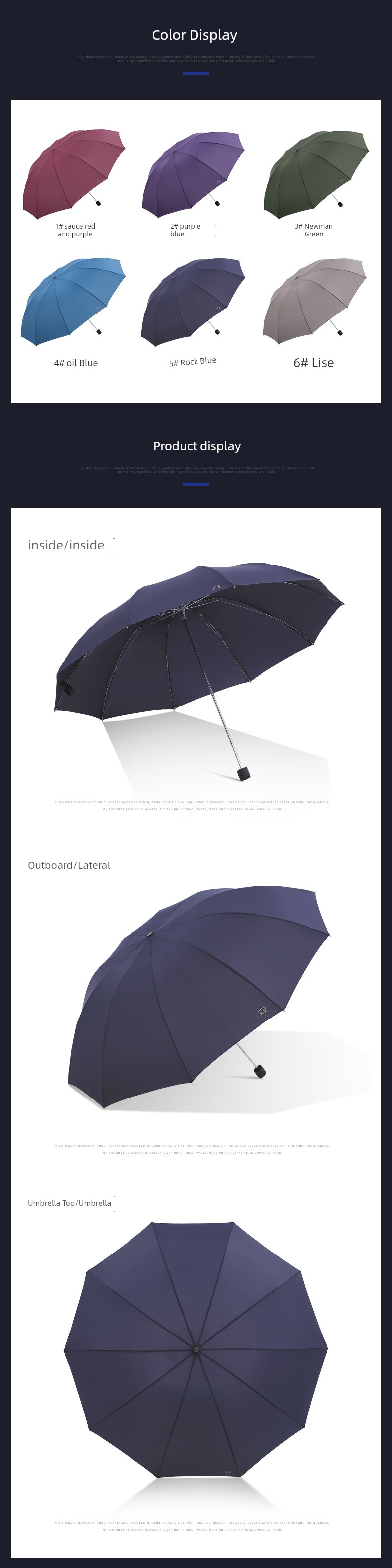 Stay stylish and prepared for any weather with the Dual-Use Paradise Umbrella! This trendy three-fold umbrella combines function and fashion perfectly. Why you'll love it: - Elegant and Pure Color Design for a Sophisticated Look. - Durable Ten-Bone Construction for Wind Resistance. - Compact and Lightweight for Easy Portability. - Perfect for Business and Casual Use. - Ideal Gift for Busy Professionals and Travel Enthusiasts. Crafted with a premium ten-bone structure, this umbrella offers both durability and elegance, ensuring you stay dry while making a style statement. Its compact size makes it easy to carry in your bag, making it the perfect on-the-go solution for unexpected rain showers or sunny days. To use, simply unfold and press the button to open; it conveniently collapses back with a press of the button for quick storage. Don't miss out on this exclusive umbrella that combines fashion with utility! Order yours now and elevate your accessory game!
