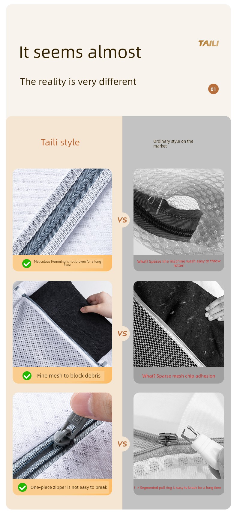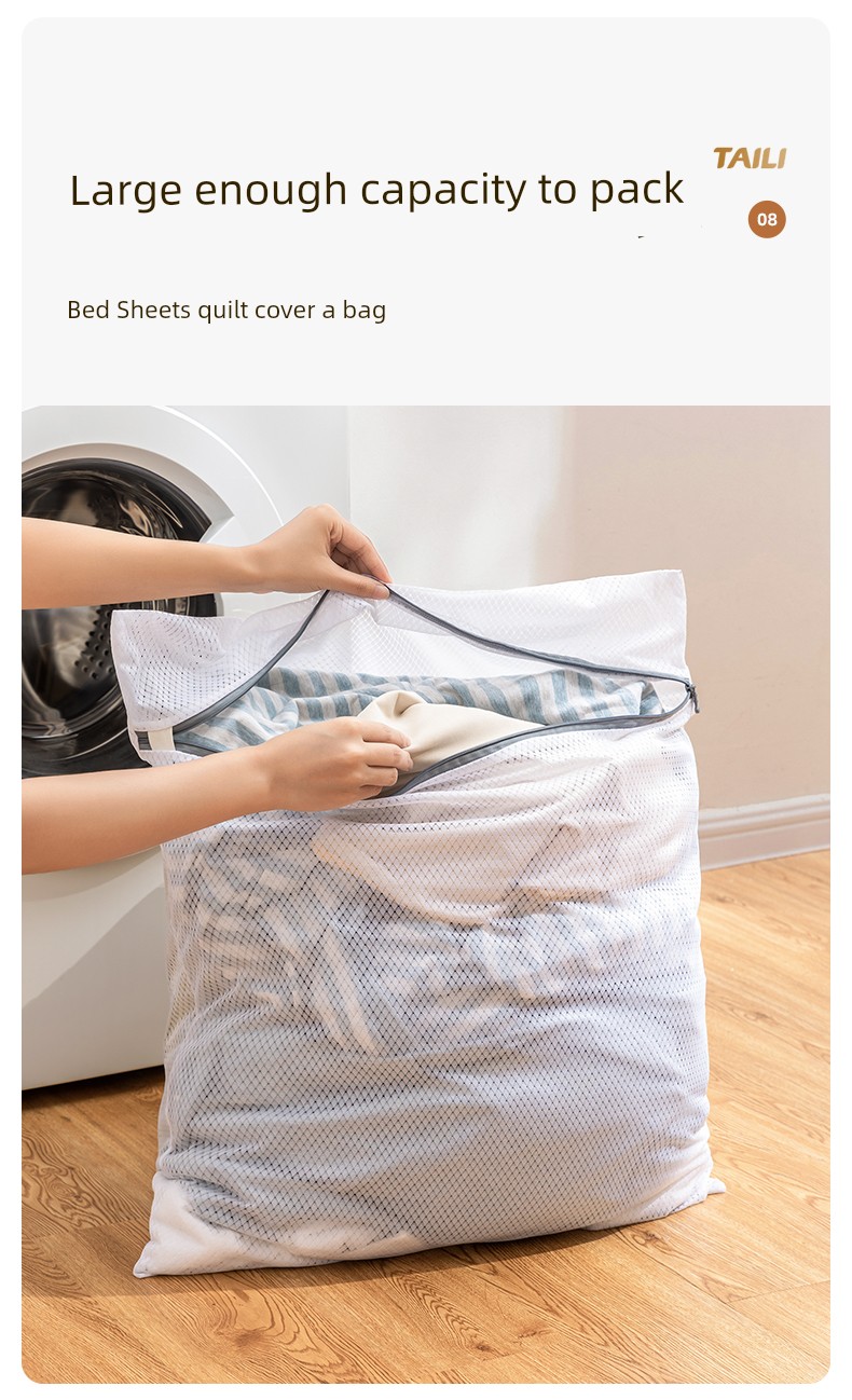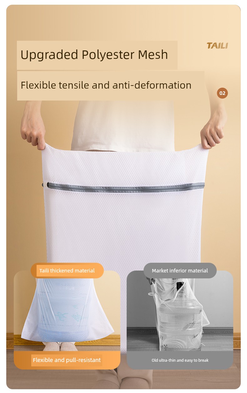Imagine opening your laundry room to find an orderly oasis where clothes are neatly contained, and chaos is kept at bay. Meet the Taili Thickened Net Pocket Large Anti-Deformation Laundry Bag, your ultimate ally in maintaining a tidy home and an efficient laundry routine. This isn't just a bag; it's your secret weapon against clutter, designed to enhance every wash day. Born from the desire for practicality and durability, the Taili laundry bag was created to tackle the most common frustrations of household chores. Whether you're battling flimsy bags that tear easily or struggling to fit your bulky items, this bag offers a solution that combines strength with ease of use. The thickened net design provides breathability while making sure your clothes stay snug and secure. But let's delve deeper into its features. The Taili laundry bag boasts a generous size, accommodating everything from delicate garments to those larger items that usually end up on the floor. Its anti-deformation technology ensures that even after countless washes, your bag retains its shape, standing tall against the rigors of laundry day. Plus, the mesh construction allows for proper washing circulation, which helps preserve the quality of your clothes. Picture yourself effortlessly tossing your laundry into the Taili laundry bag, feeling the fabric's sturdy grip as you pull the drawstring closed. Imagine the peace of mind that comes with knowing your clothes are not only safe but efficiently washed, thanks to the bag's thoughtful design. With its handsome appearance, it seamlessly integrates into your home decor, making laundry day feel less like a chore and more like a breeze. Listen to what others are saying about their Taili experience: 'This laundry bag changed my routine. It holds so much without losing its shape, even after several washes!' - Emily T. and 'No more laundry mess! This bag is both stylish and practical. I can't imagine going back to flimsy bags!' - Jason R. Are you ready to revolutionize your laundry experience? Don’t let another wash day be a hassle. Grab your Taili Thickened Net Pocket Large Anti-Deformation Laundry Bag now and embrace an easier, more organized way to tackle your laundry!