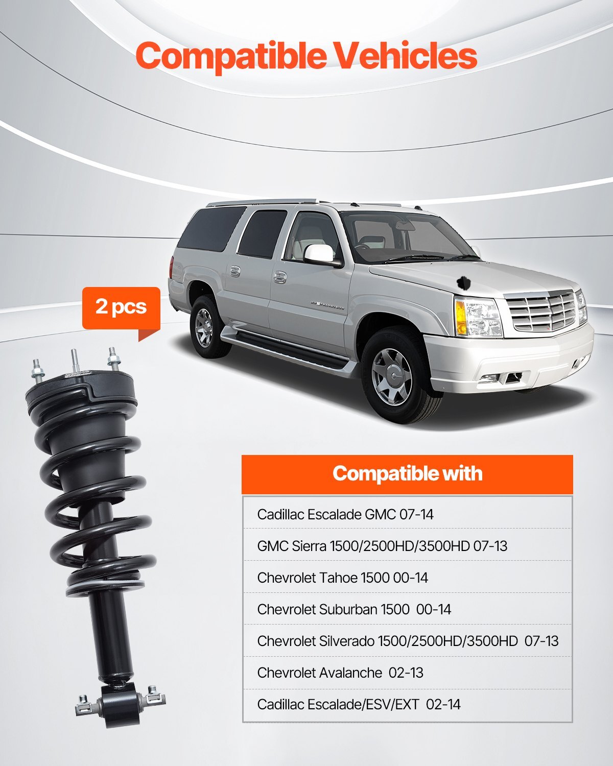 Front Air Shock Absorber Strut, 2 PCS, Compatible with Cadillac Escalade/ESV/EXT, GMC Sierra, Chevrolet Avalanche/Silverado/Suburban/Tahoe, Replacement for 19300066 22853793 19368455 19368456