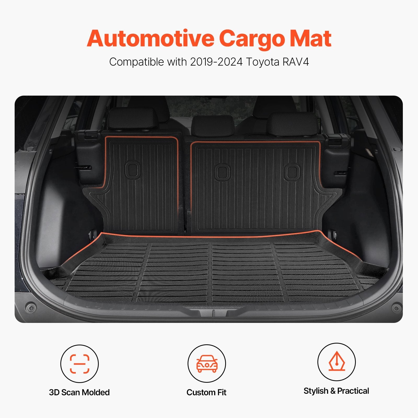 Cargo Mats Compatible with Toyota RAV4 2019-2024, Custom Fit TPE Cargo Liner Set for SUVs, Trunk and Rear Back Seat Protector Replacement, Black, Trunk Mat and Backrest Mats