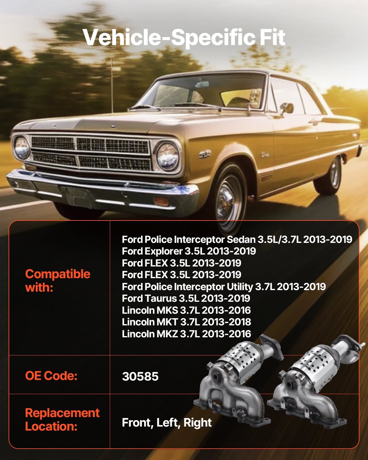 Catalytic Converter, 2 Pack, Compatible with Ford Police Interceptor Sedan Explorer FLEX Police Interceptor Utility Taurus/Lincoln MKS MKT MKZ, 3.5L V6, Front, Left, Right, Replacement OE 30585