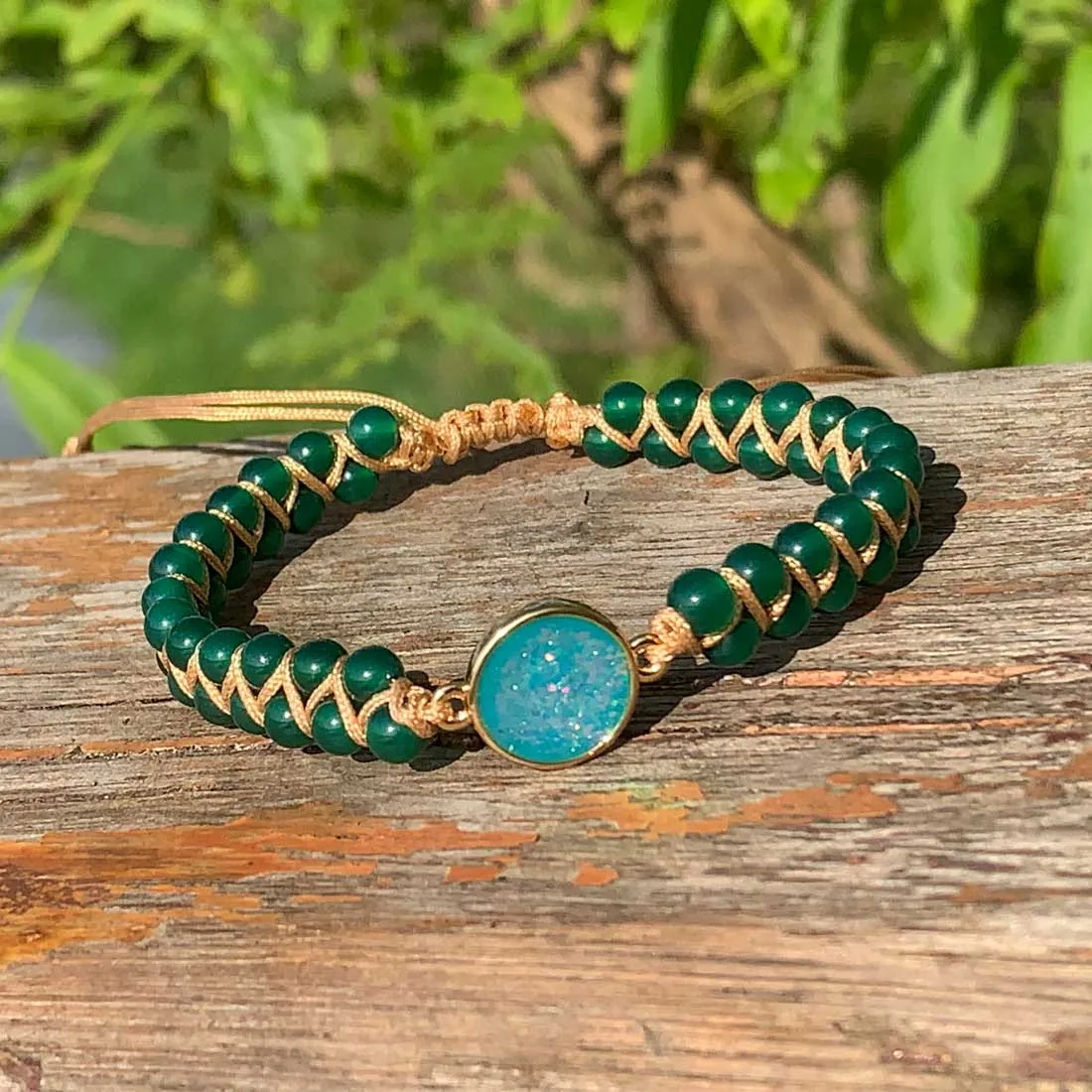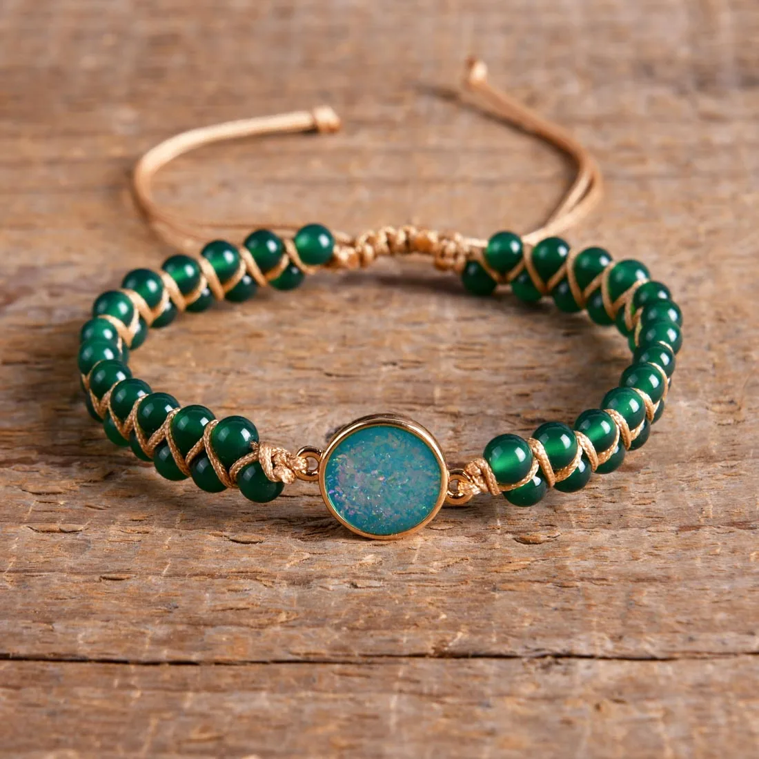 Elevate your style with our Elegant Green Aventurine Friendship Bracelet, blending beauty and positive energy for every occasion.Why you'll love it: - Exquisite Green Aventurine enhances emotional balance. - Unique braided design adds a fashionable twist. - Versatile style perfect for yoga, meditation, or everyday wear. - Thoughtful gift for friends that shows you care. - Crafted with premium materials for long-lasting durability.This stunning bracelet features a vibrant green aventurine stone, renowned for promoting emotional harmony, making it an ideal accessory for your yoga or meditation sessions. Handcrafted with a chic braided design, it guarantees a comfortable fit, whether worn solo or stacked with other jewelry pieces.To wear, simply slide the bracelet onto your wrist and adjust the strap for the perfect snug fit. Whether you're dressing up for a special occasion or keeping it casual, this bracelet introduces an irresistible boho flair to your look. Don't miss out on this exclusive offer—grab yours today and enhance your jewelry collection!