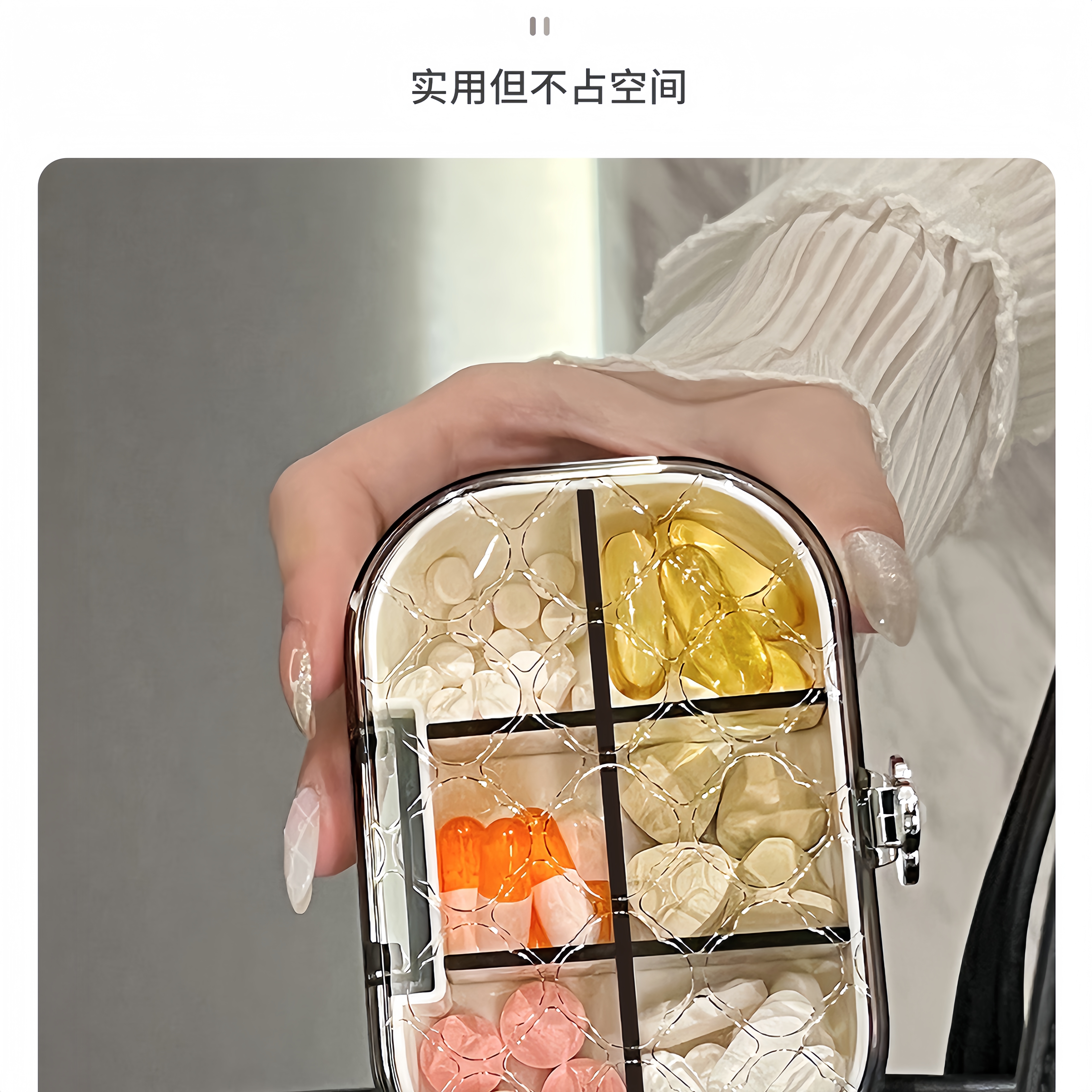 Imagine a morning where your daily essentials are at your fingertips, beautifully organized in a chic, transparent box. Introducing the Elegant Transparent Portable Pill & Jewelry Organizer, where sophistication meets functionality. Say goodbye to rummaging through drawers or handbags and hello to a life of effortless accessibility and style. This organizer is not just meticulously designed; it reflects a commitment to practicality and elegance. Whether you're storing vitamins, medications, or cherished jewelry, each compartment is a promise of curated luxury. This box transforms your daily routine into a seamless experience, making sure you never miss a dose or compromise on your fashion. Each segment of this portable box is crafted to keep your items secure and easily identifiable. The crystal-clear design allows you to see at a glance what you have — no more guessing games on whether you packed your essentials. Its thoughtful segmentation ensures that everything stays neatly arranged, saving you time in your busy life. Picture using this beautiful organizer at home, on the go, or while traveling. Its compact nature fits effortlessly into any handbag or suitcase, making it the ideal companion for trips or daily commutes. The moment you open this box, you're greeted by displaying your favorite jewels or neatly arranged pills, all while exuding an air of elegance. Don't just take our word for it; our customers rave about this organizer: \ 'This pill box is a game changer! I can easily see and access my vitamins without any hassle.' - Jessica T. \ 'I love how it doubles as a jewelry box! It’s stylish and super functional.' - Ryan M. Ready to elevate your lifestyle with the Elegant Transparent Portable Pill & Jewelry Organizer? Experience the fusion of luxury and practicality that it brings to your daily routine. Don't wait — transform how you organize today!