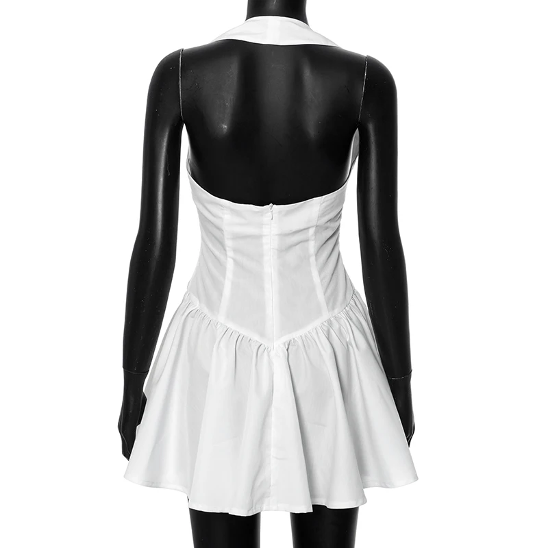 Elegant White Dress Woman Halter Backless A-Line Mini Dress Chic Short Birthday Party Dress Luxury 2024