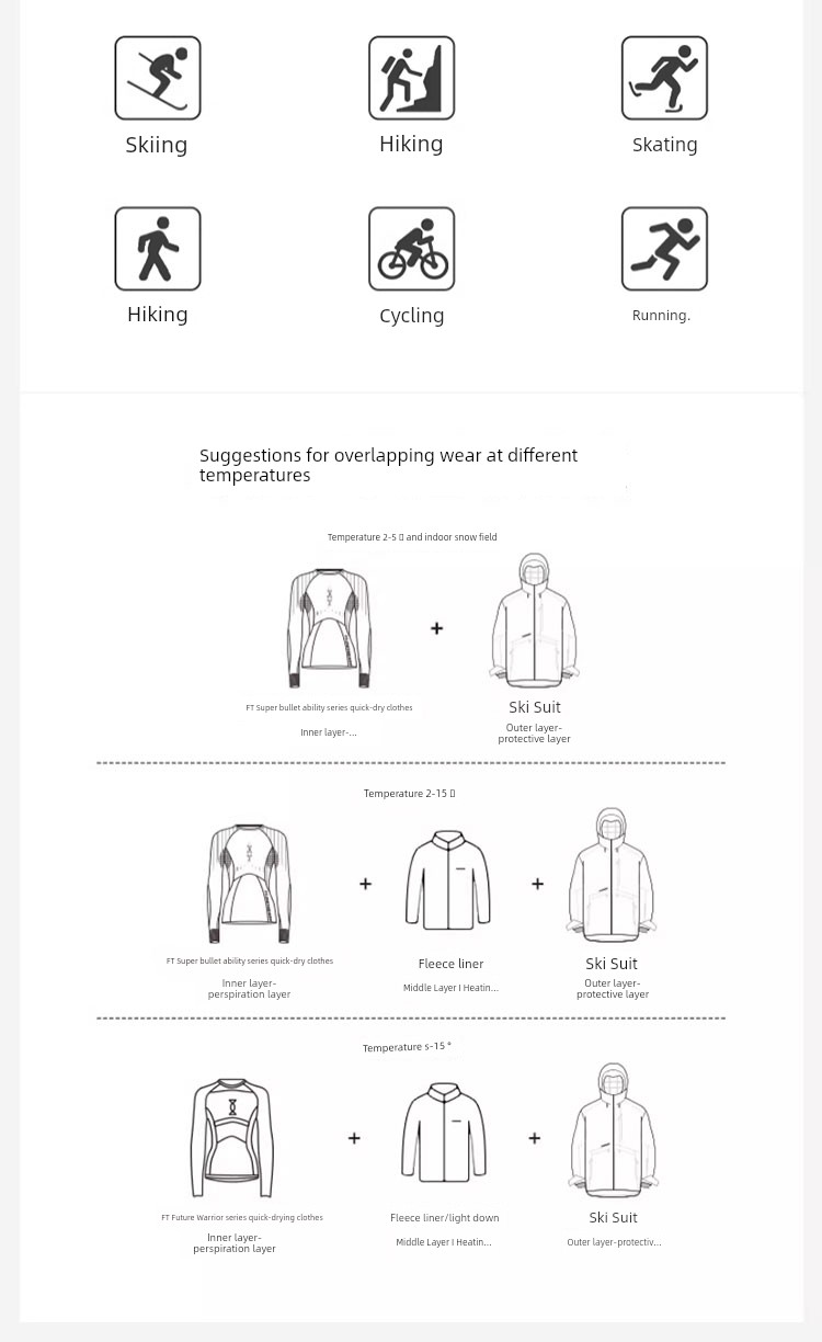 FT Skiing Quick Drying Clothes Men and Women Soft High Elastic Fit Heattech Sweatshirt Breathable Outdoor Sports Function Intimates