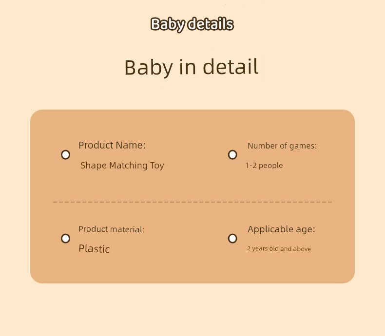 In a world full of vibrant colors and shapes, imagine your little one unlocking the mysteries of geometry while having a blast! Introducing the Geometric Shape Matching Puzzle Game, a delightful tool designed to foster early education, develop thinking skills, and ignite creativity in children aged 2 to 3 years old. This engaging game is not just a toy; it's a stepping stone into a loving world of learning where play and education seamlessly blend. Originating from a passion to infuse fun into learning, this puzzle focuses on developing cognitive skills that are essential in early childhood. Parents often worry about providing the right tools to nurture their child's intelligence and creativity. This game specifically addresses that concern by encouraging children to identify, match, and explore various geometric shapes, paving the way for critical thinking and problem-solving skills right from a tender age. Each colorful piece of this puzzle is crafted with care, perfectly sized for small hands to grasp and manipulate. The game comprises six vibrant geometric shapes, each one designed to spark curiosity and inspire exploration. As your child engages with the puzzle, they'll learn to recognize shapes, improve hand-eye coordination, and boost their spatial awareness—all while playing! Just imagine the joy on their face as they fit the pieces together and watch their confidence blossom. Picture your child seated on the floor, surrounded by these fascinating shapes. The room is filled with laughter and excitement as they excitedly discover how these pieces fit together. You can almost hear the ‘aha!’ moments as they match the shapes correctly; their eyes lighting up with each new realization. It’s more than just fun—it's a delightful educational journey that contributes to their growth. But don’t just take our word for it! Here's what some satisfied parents have shared:\ \