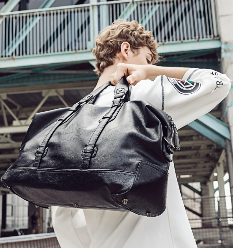 GUMST Men Handbag Leather Large Capacity Travel Bag Men Shoulder Bag Male Travel Duffle Tote Bag Casual Messenger Crossbody Bags