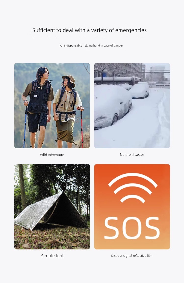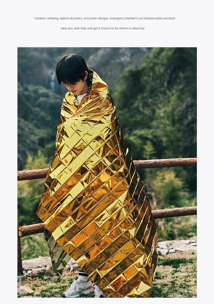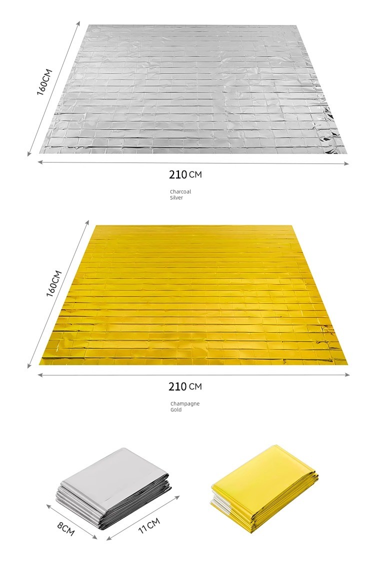 Stay cozy on your outdoor adventures with the Heattech Cold-Proof Aluminum Foil Blanket. This essential companion ensures optimal warmth and protection against the biting cold, making it perfect for campers, hikers, and survivalists. Why you'll love it: - Advanced aluminum foil lining reflects body heat. - Lightweight and easily packable for on-the-go convenience. - Full-body coverage for maximum warmth and comfort. - Perfect for emergencies or cozying up by the campfire. - A trusted choice for outdoor enthusiasts everywhere. Made from high-quality polyester, this blanket is designed to endure brutal weather while maintaining a snug embrace. Its advanced insulation properties keep you warm even in extreme conditions, helping you fully enjoy nature’s beauty. To use, simply unfold the blanket and wrap it around yourself during those chilly moments outdoors. Slip it into your backpack easily for emergency use or everyday adventures. Elevate your outdoor experiences today and ensure warmth is always at your side!