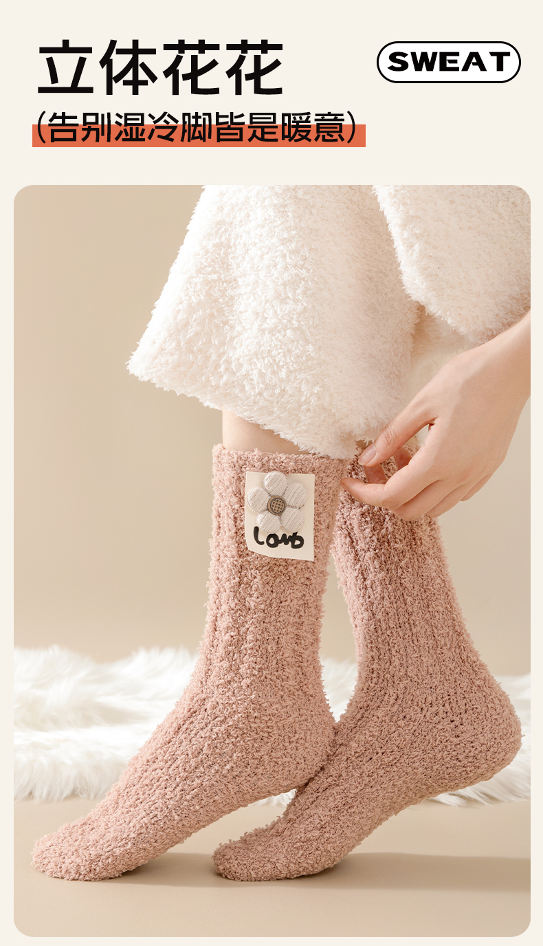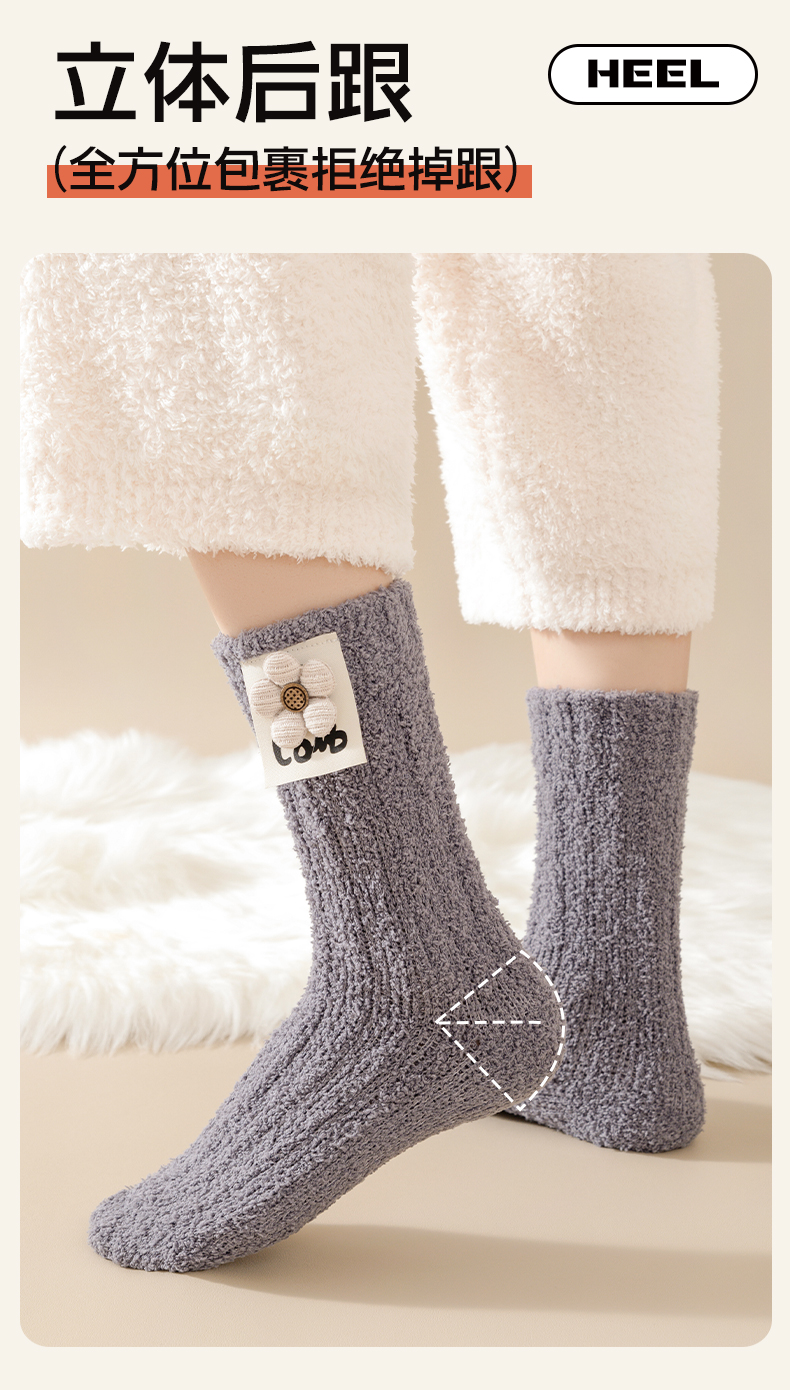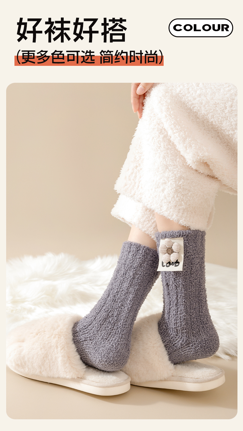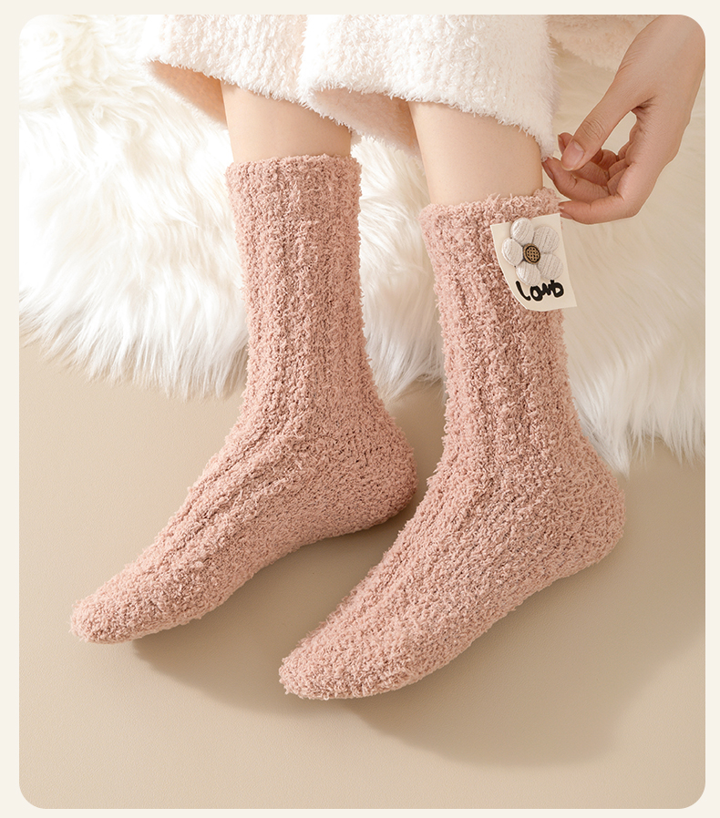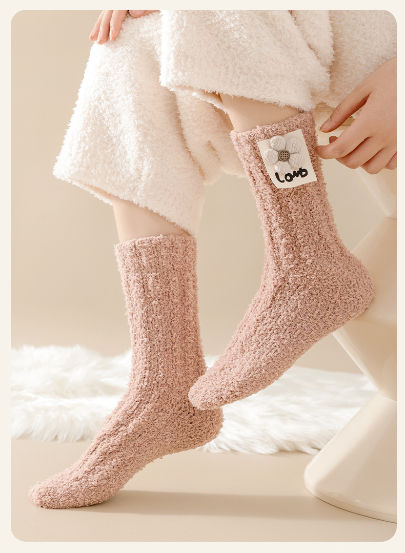 Heattech Coral Fleece Socks Women's Autumn and Winter Fleece-lined Thick Mid-Calf Length Socks Winter Floor Sleep Stuffed Maternity Socks