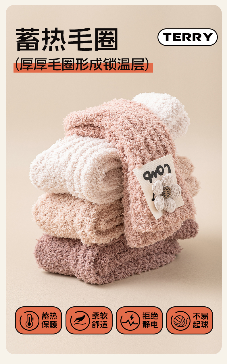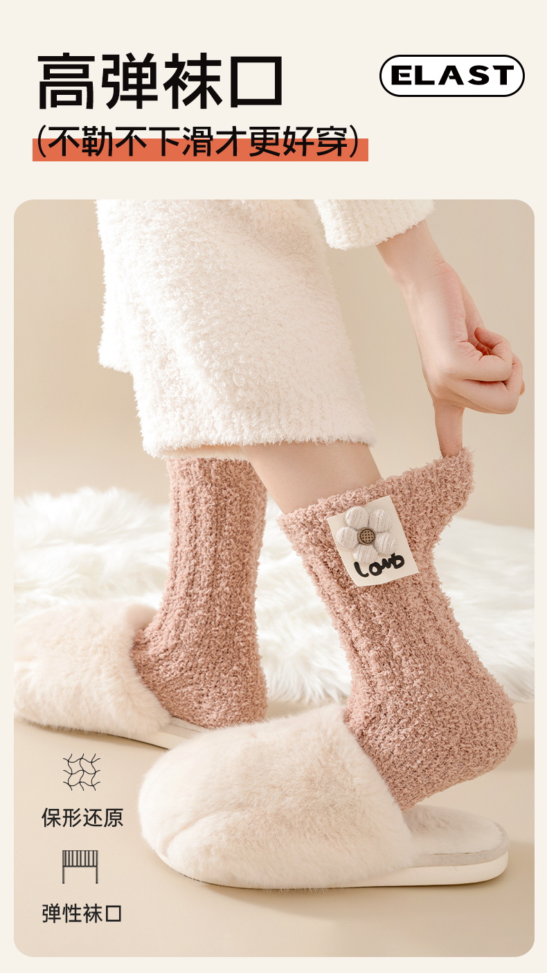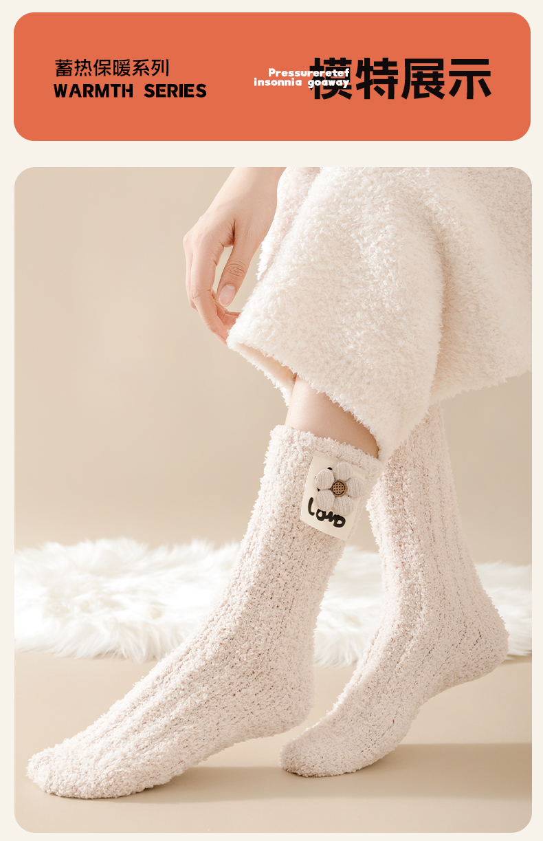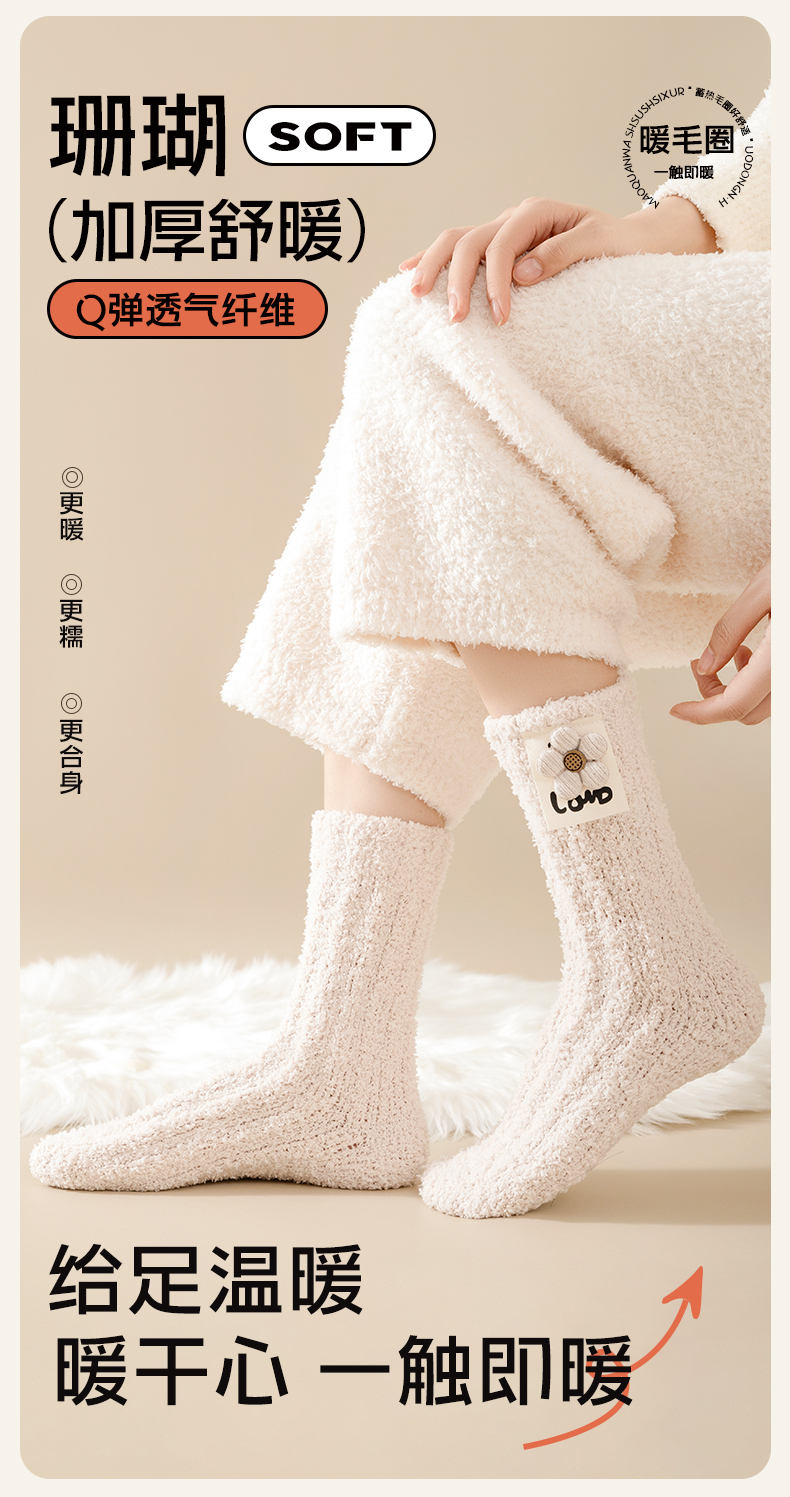 Heattech Coral Fleece Socks Women's Autumn and Winter Fleece-lined Thick Mid-Calf Length Socks Winter Floor Sleep Stuffed Maternity Socks
