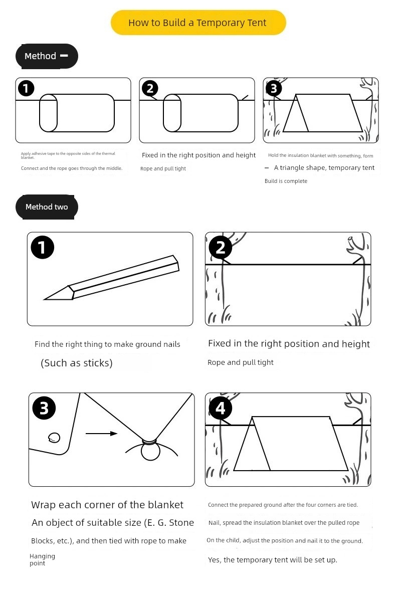 Stay warm and dry on your outdoor adventures with the HeatTech Survival Tent, designed specifically for unpredictable weather conditions. Why you'll love it: - Advanced HeatTech technology provides superior insulation. - Waterproof exterior keeps you dry during unexpected rains. - Durable construction with reinforced seams for longevity. - Compact, easy setup fits seamlessly into your gear. - Cozy interior offers a perfect escape from harsh elements. The HeatTech Survival Tent is crafted with thickened materials, ensuring maximum warmth retention even in freezing temperatures. This tent is your reliable shield against the elements, making it essential for camping, hiking, or emergency situations. Experience the great outdoors with confidence and security. To use, simply unpack, lay down the tent, and follow the straightforward setup instructions. In just minutes, you'll have your very own getaway, protecting you from nature's extremes. Gear up for your next adventure and embrace the wilderness with the HeatTech Survival Tent!