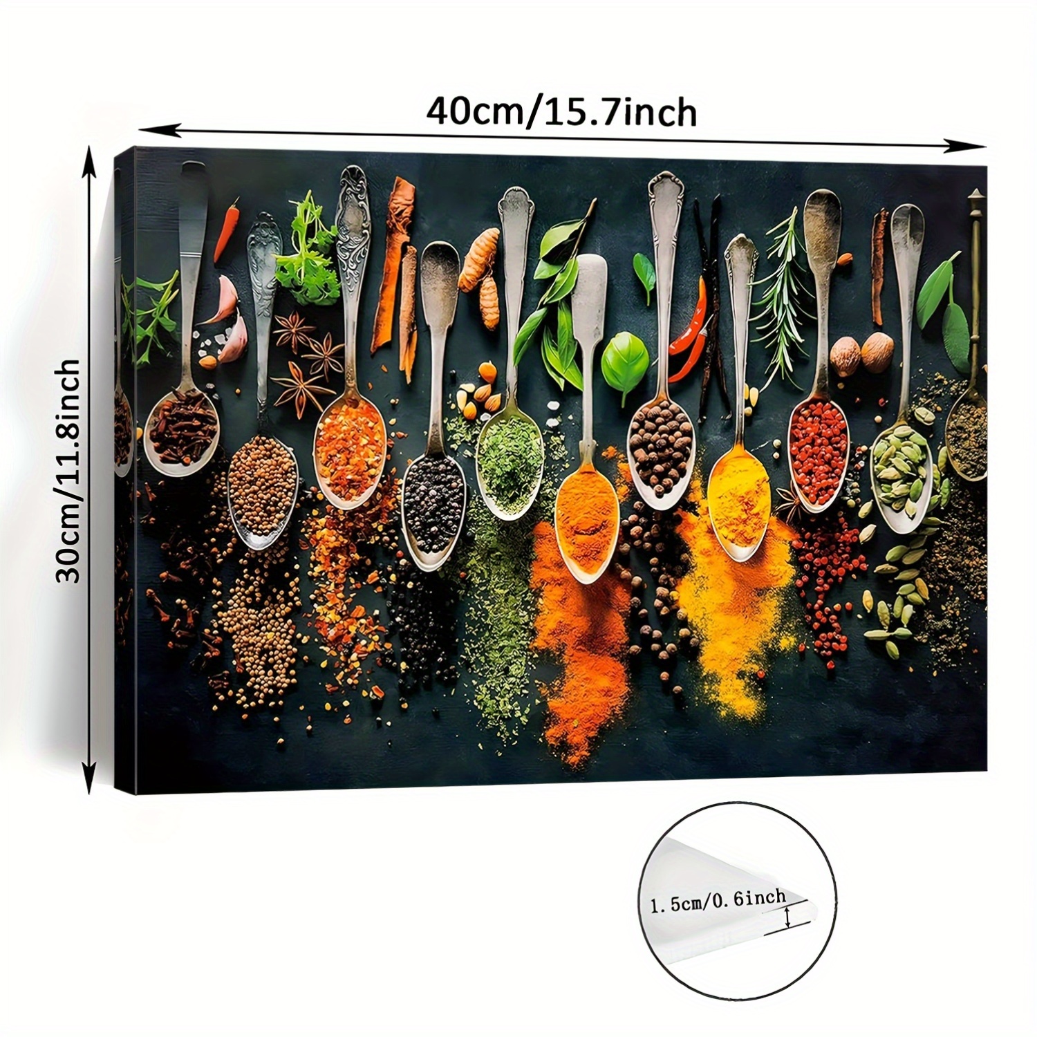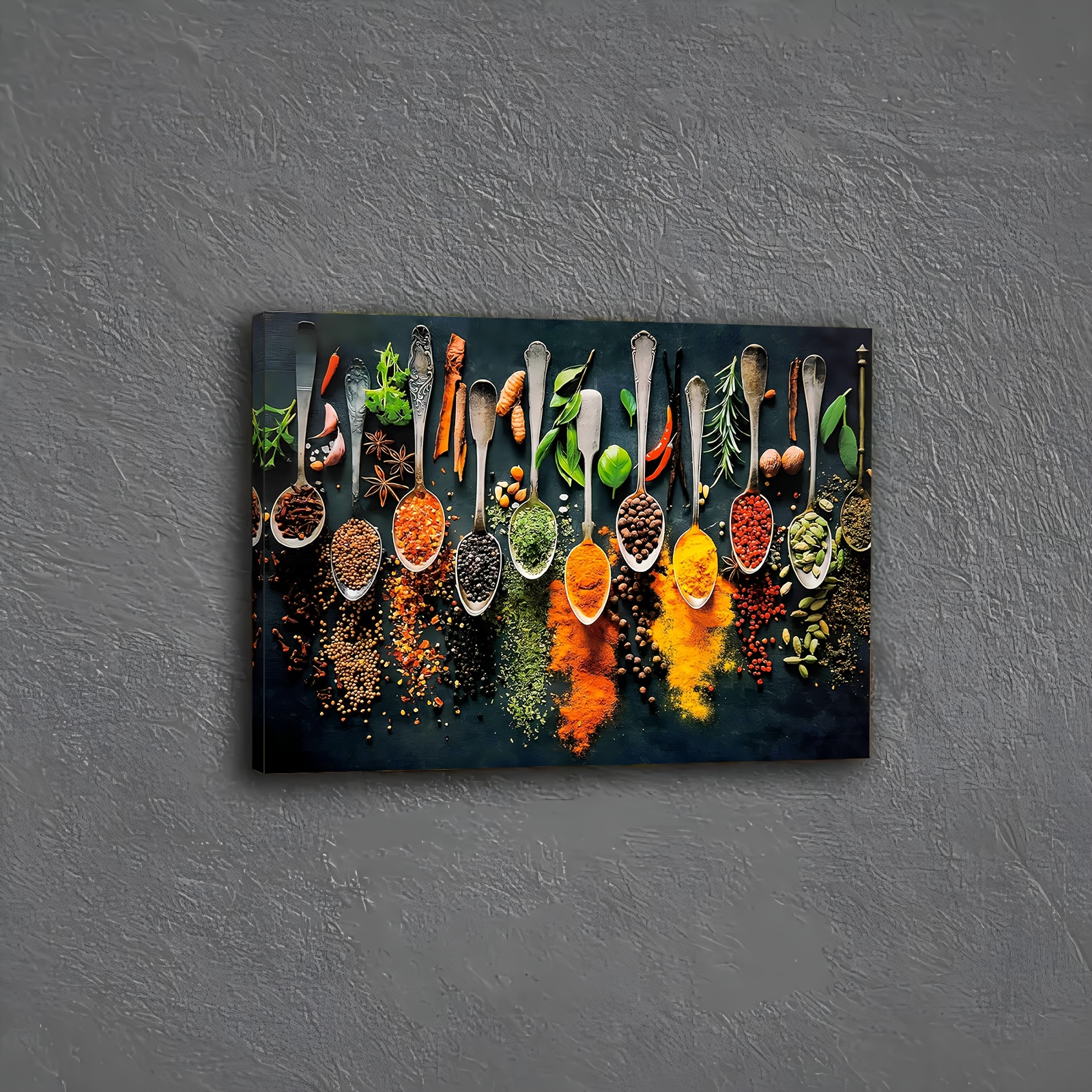 Elevate your decor with our stunning Herbs & Spices Framed Canvas Wall Art, perfect for any space!     Why you'll love it:        - Vibrant and unique herbs and spices design.        - Sturdy wooden frame for an elegant finish.        - Ideal for your living room, kitchen, or office decor.        - Perfect for gifting during the holiday season.        - Easy to hang and reposition as needed.    Crafted with premium quality canvas and a durable wooden frame, this artwork adds a touch of nature's beauty to your home. Its enticing design invites warmth and personality into any room.    Simply hang it on your wall as a centerpiece above a couch, dining area, or desk to transform your space instantly. Perfect fit for both casual and formal environments—enhance your home with this exclusive piece today!